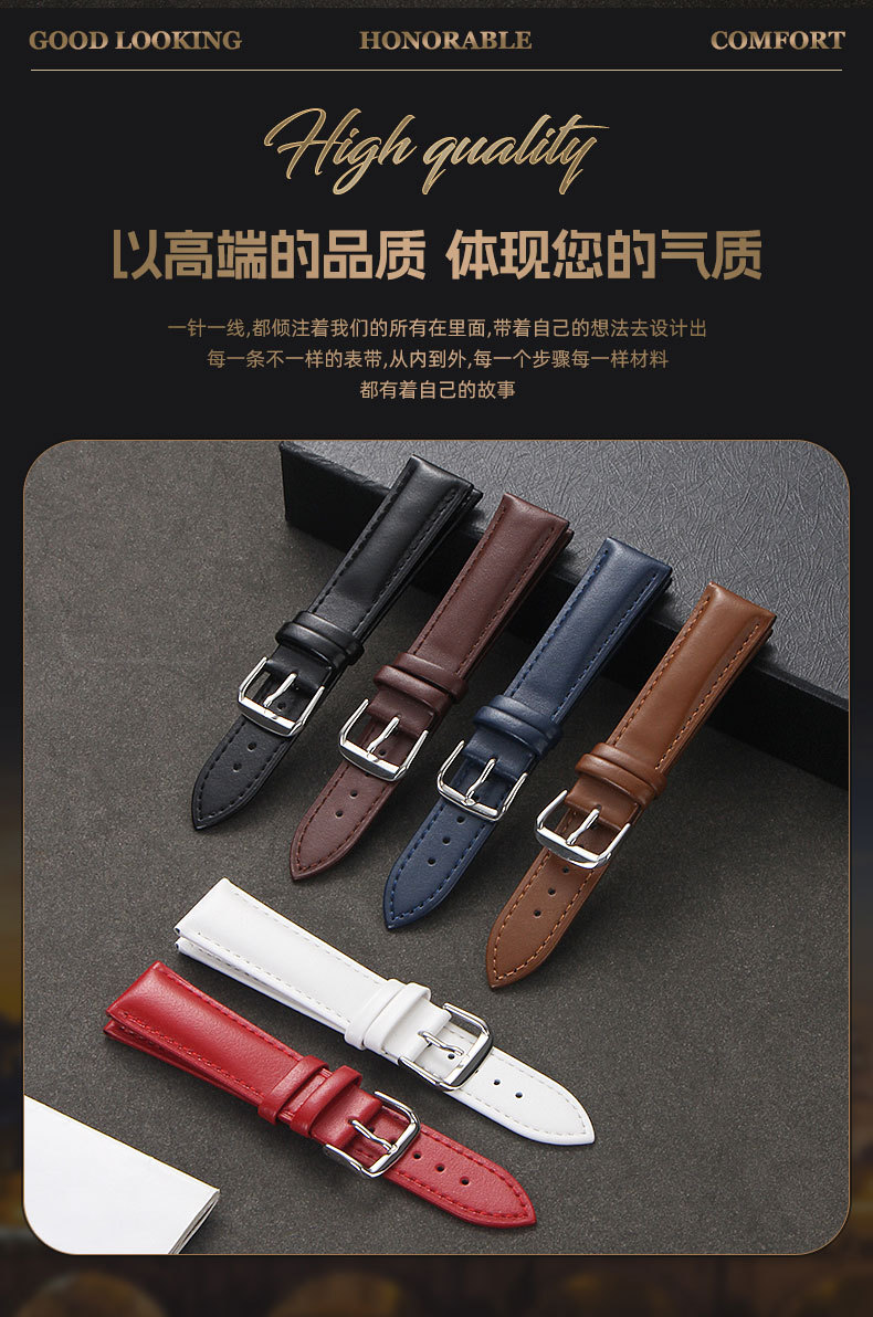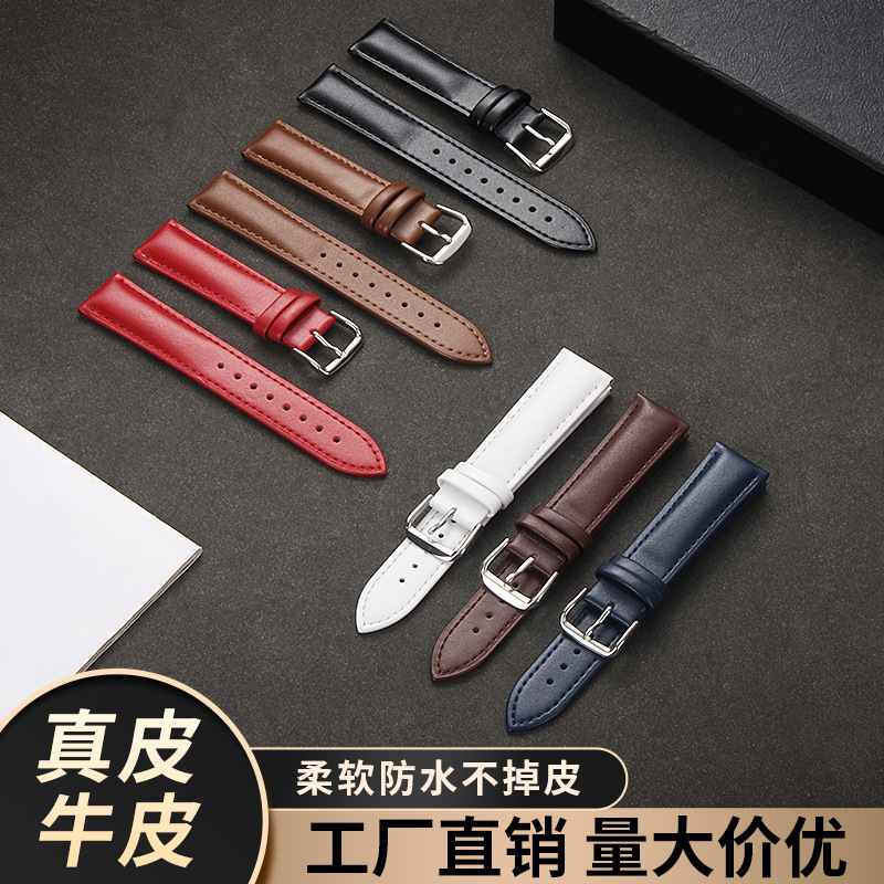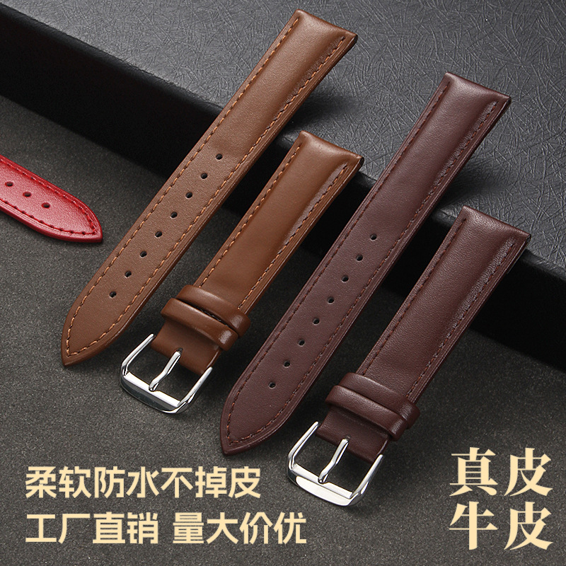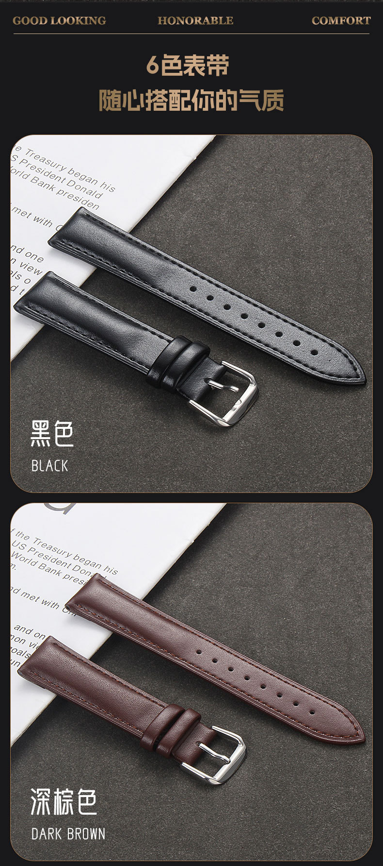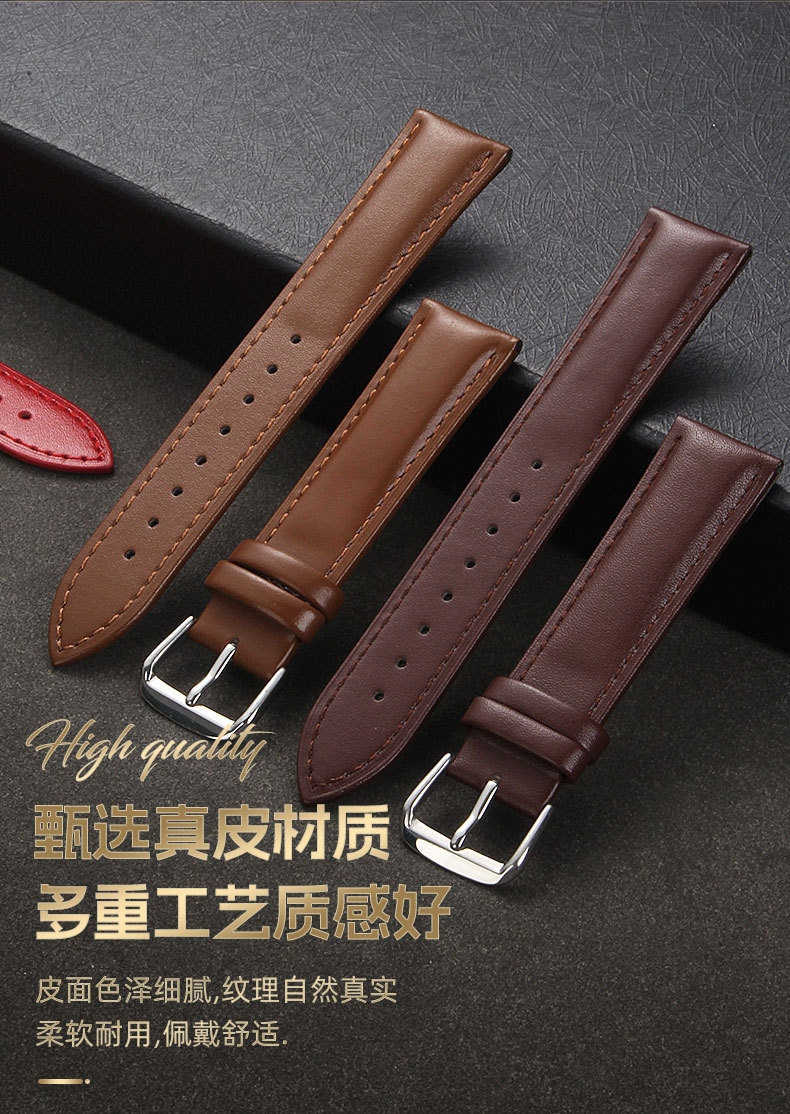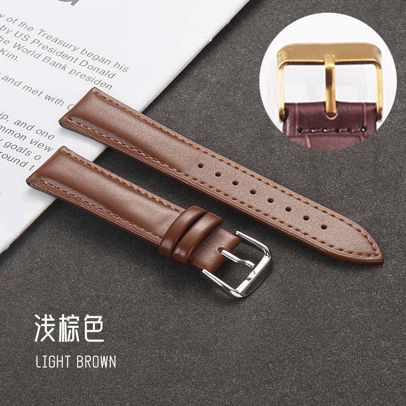 金色针扣手表带真皮牛皮表带平纹针纹男女通用型表带适用苹果表带