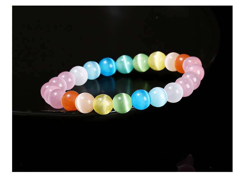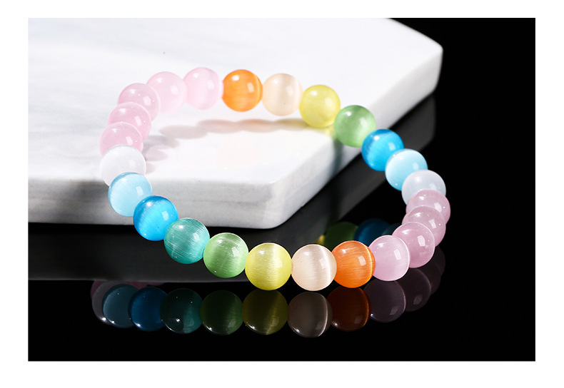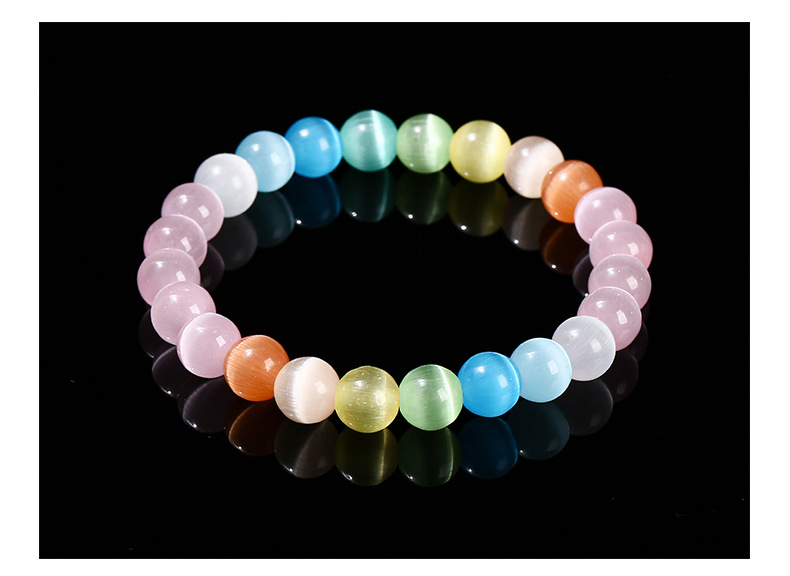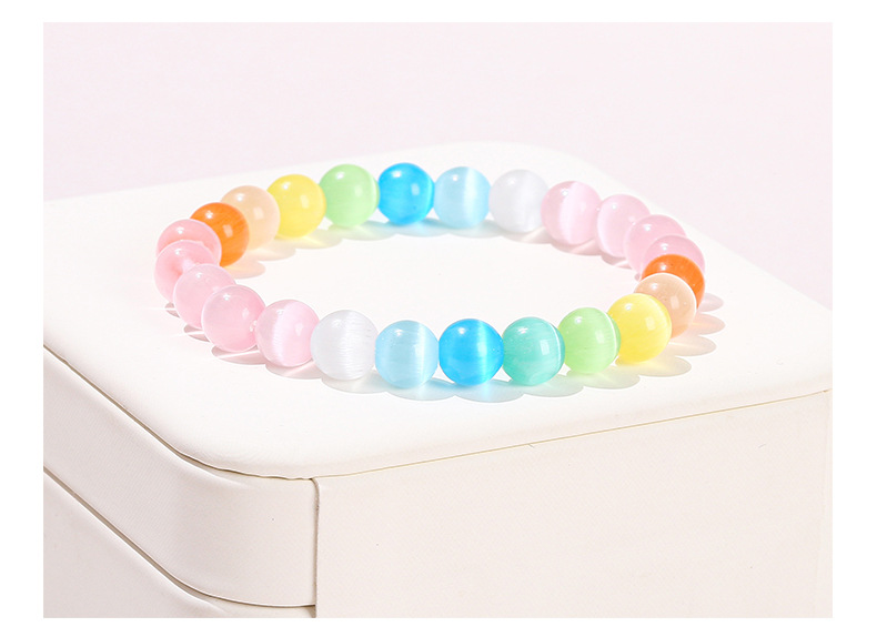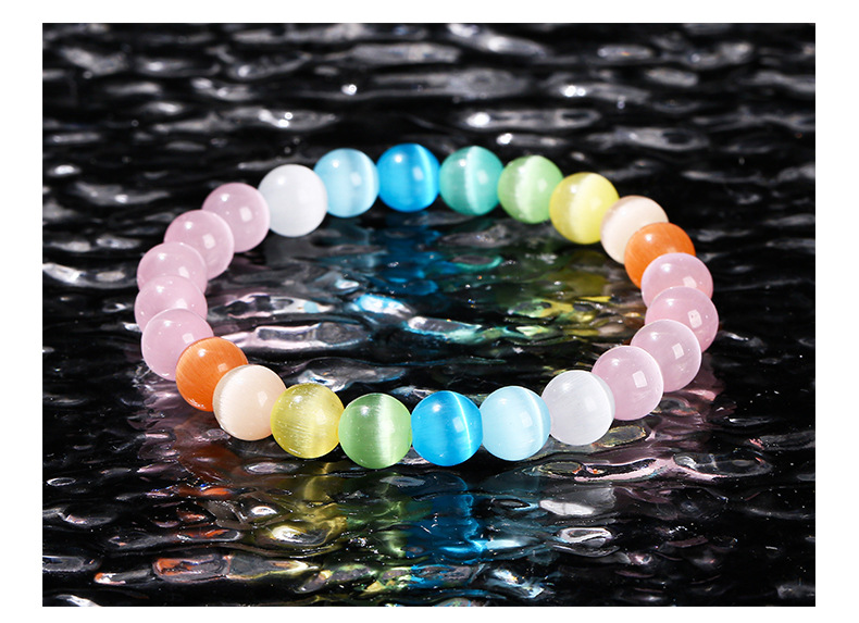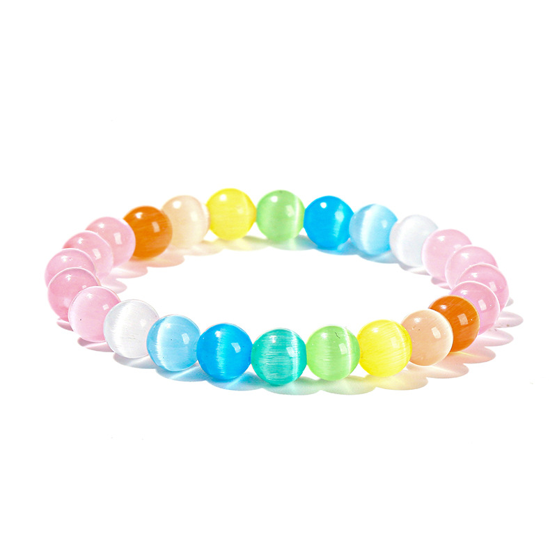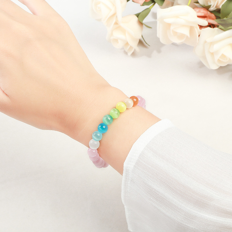 晶州珠宝七彩猫眼石手链马卡龙彩虹色时尚小清新圆珠礼物手串批发