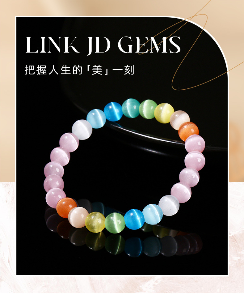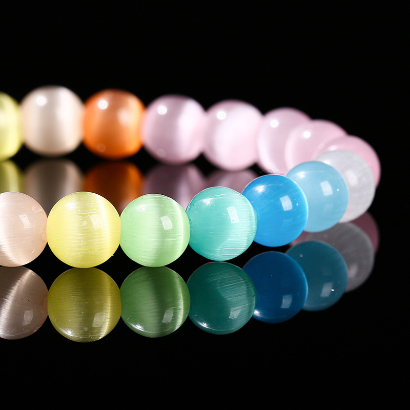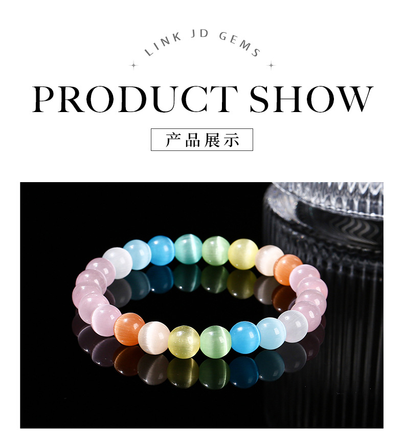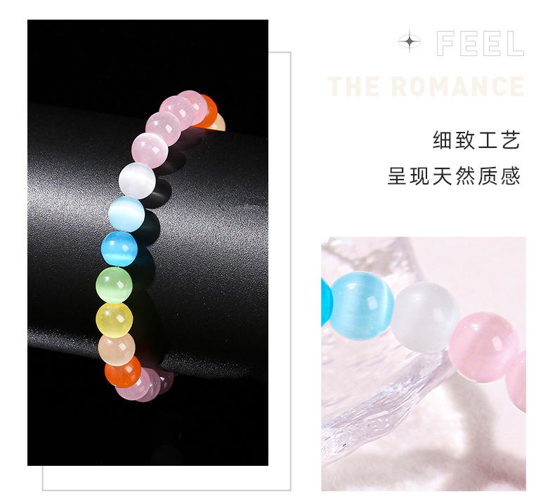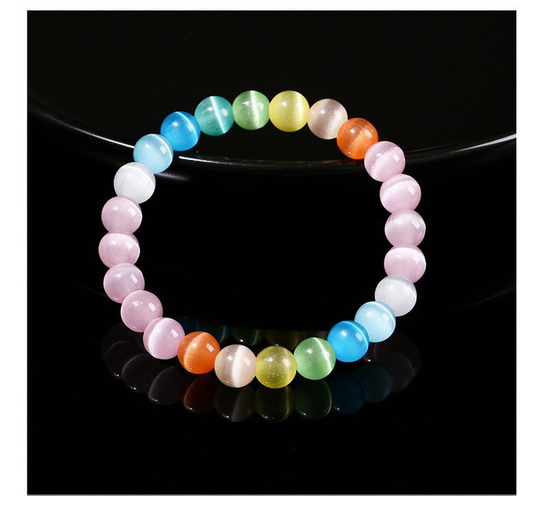 晶州珠宝七彩猫眼石手链马卡龙彩虹色时尚小清新圆珠礼物手串批发