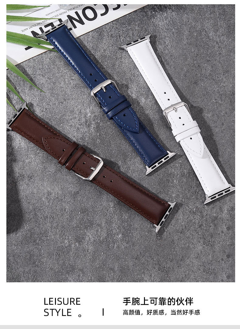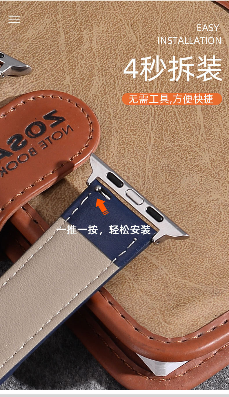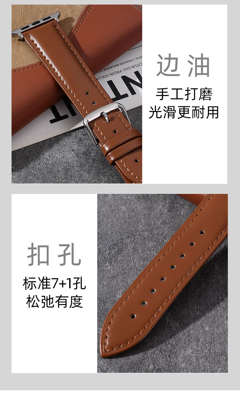 真皮牛皮手表带开关生耳表带适用苹果iWatch SE apple watch S8