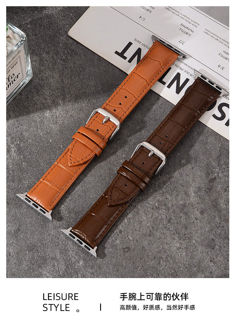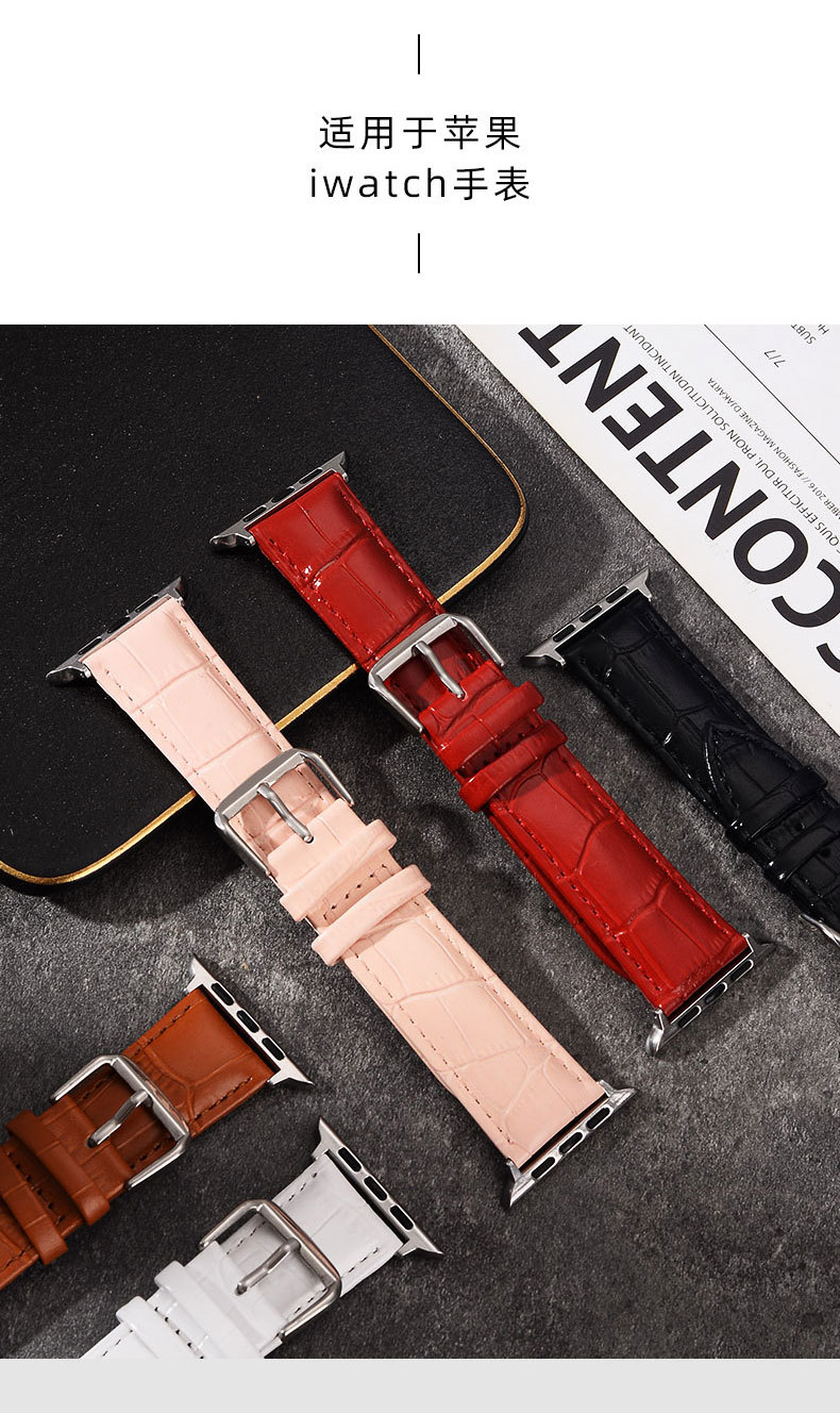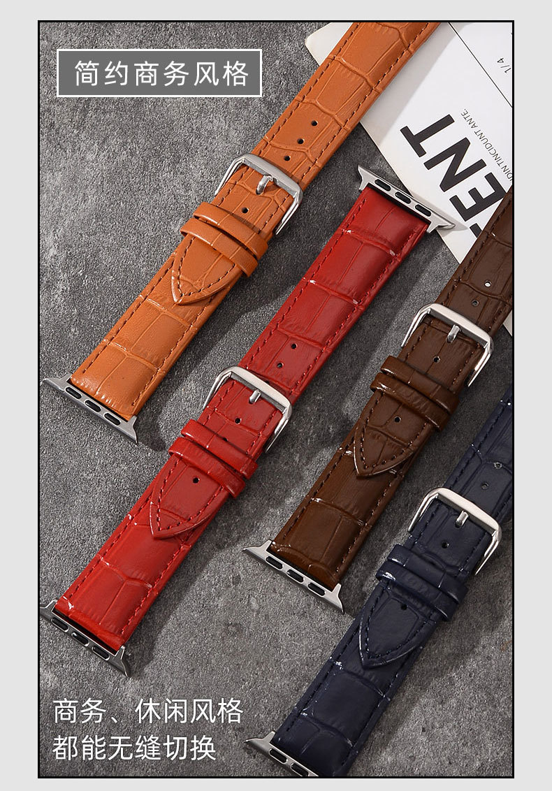 适用苹果手表表带iwatch234567SE真皮表带开关快拆生耳牛皮表带