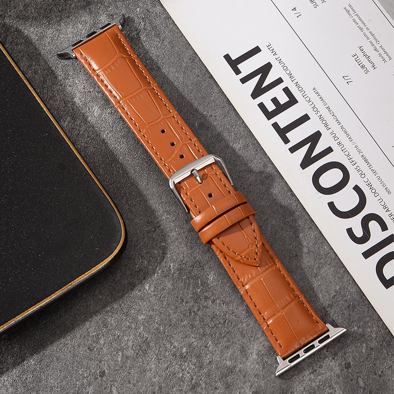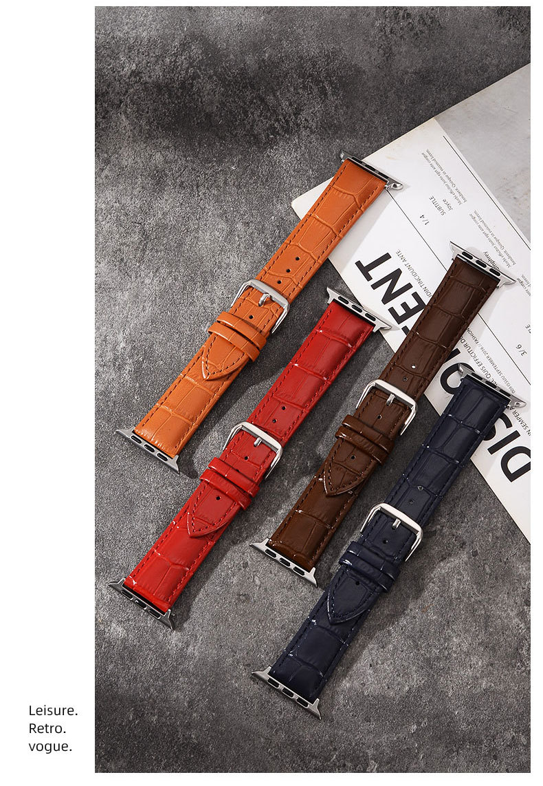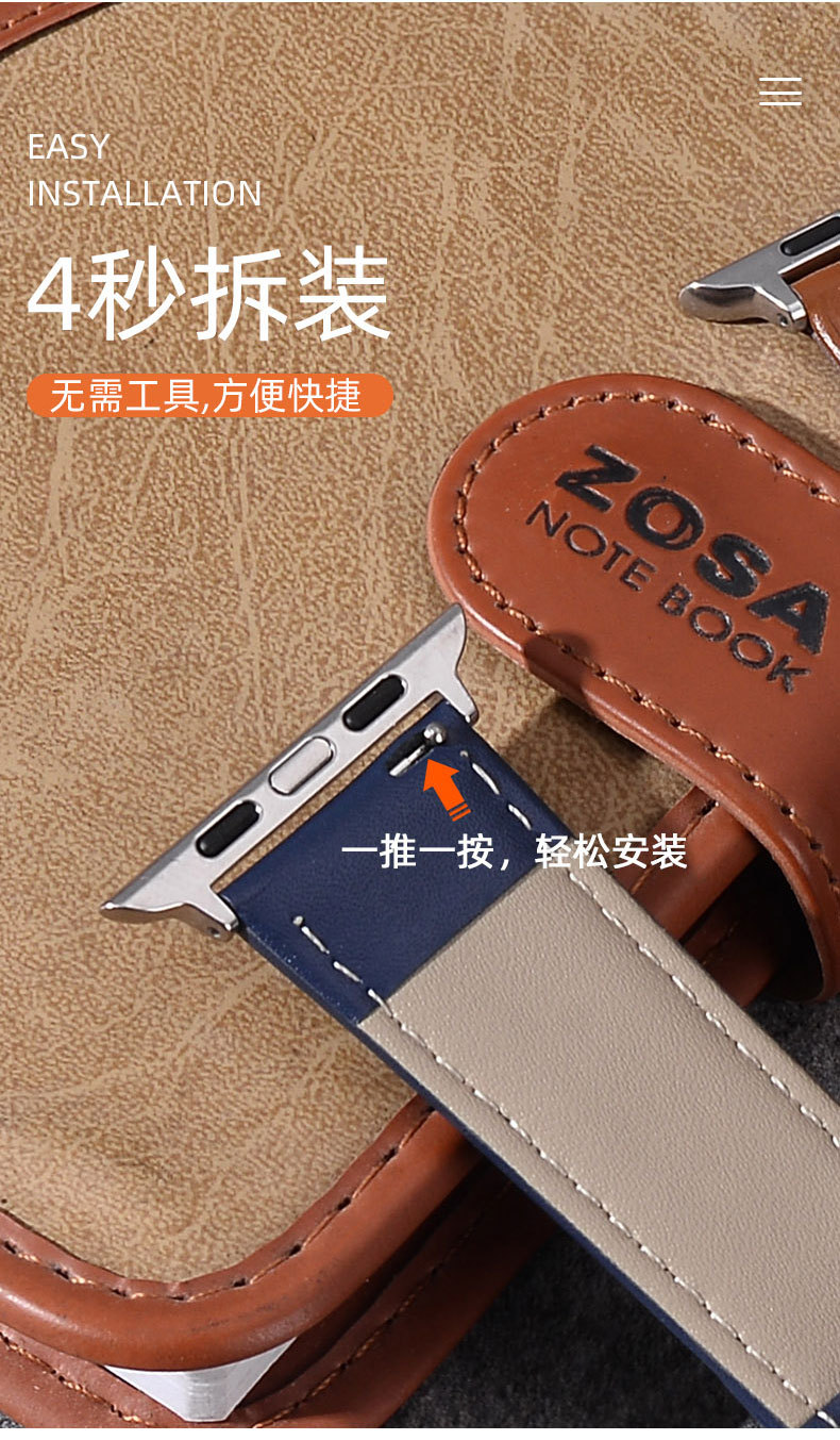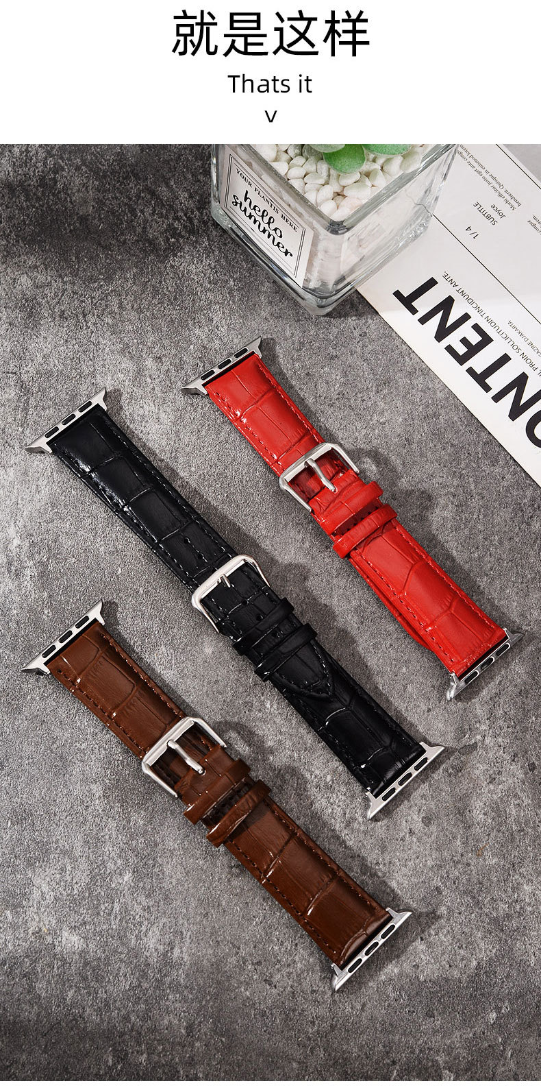 适用苹果手表表带iwatch234567SE真皮表带开关快拆生耳牛皮表带
