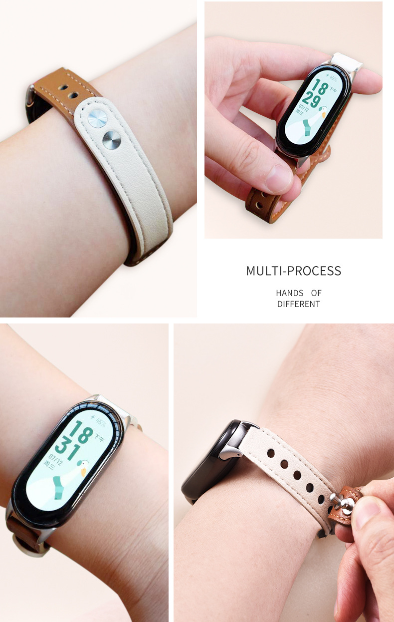 适用小米手环8表带小米手环8腕带小米表带女真皮小牛皮智能手表带
