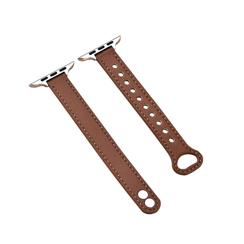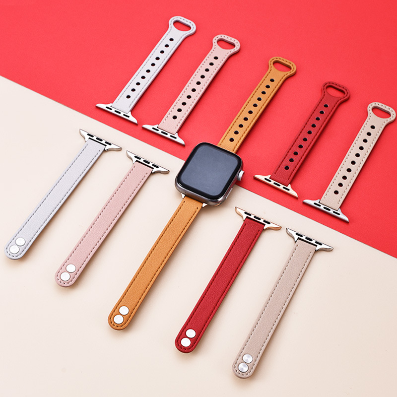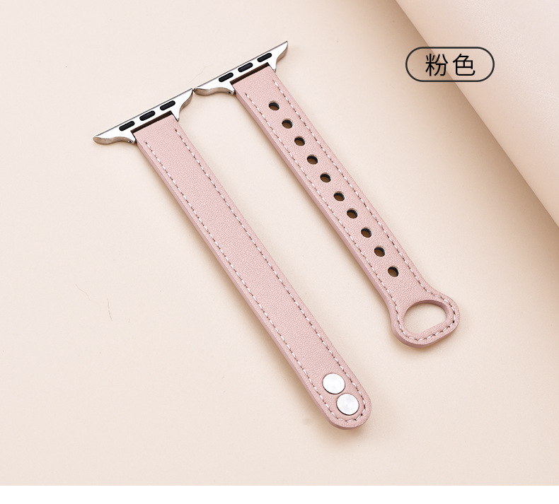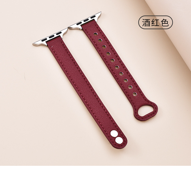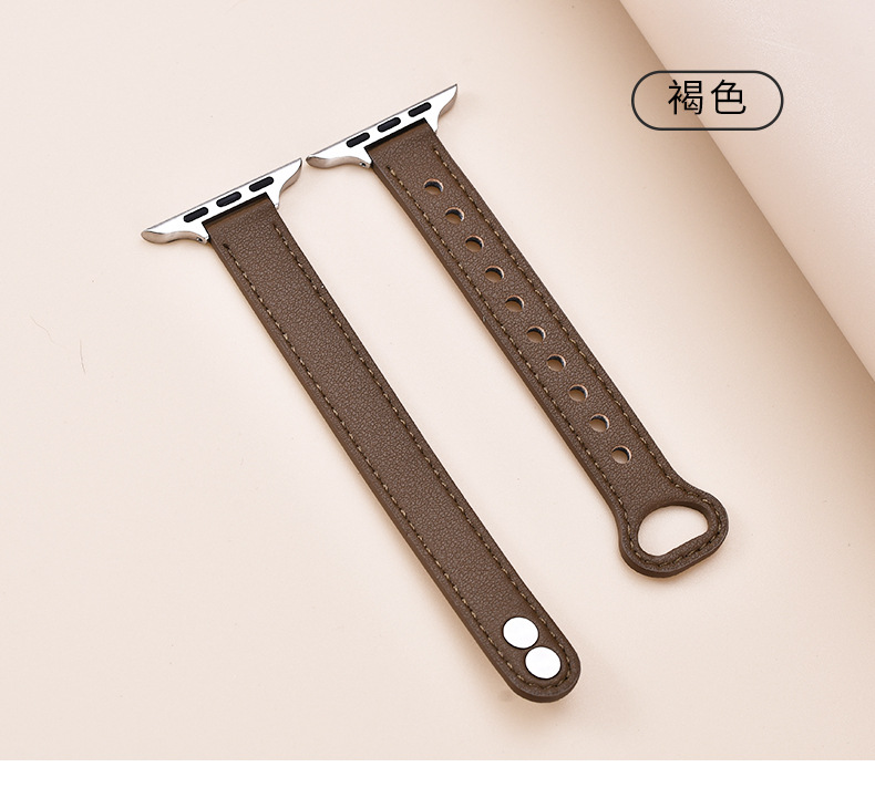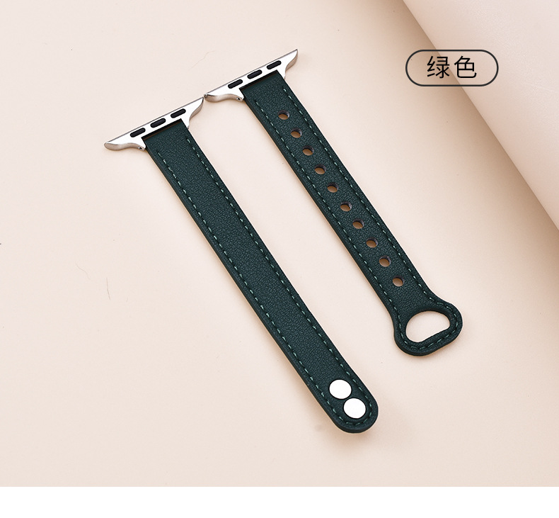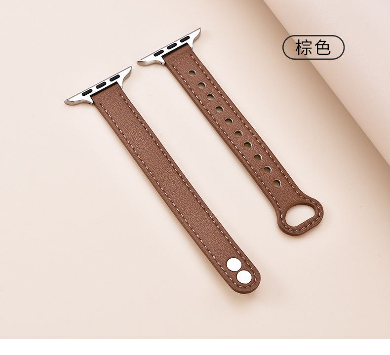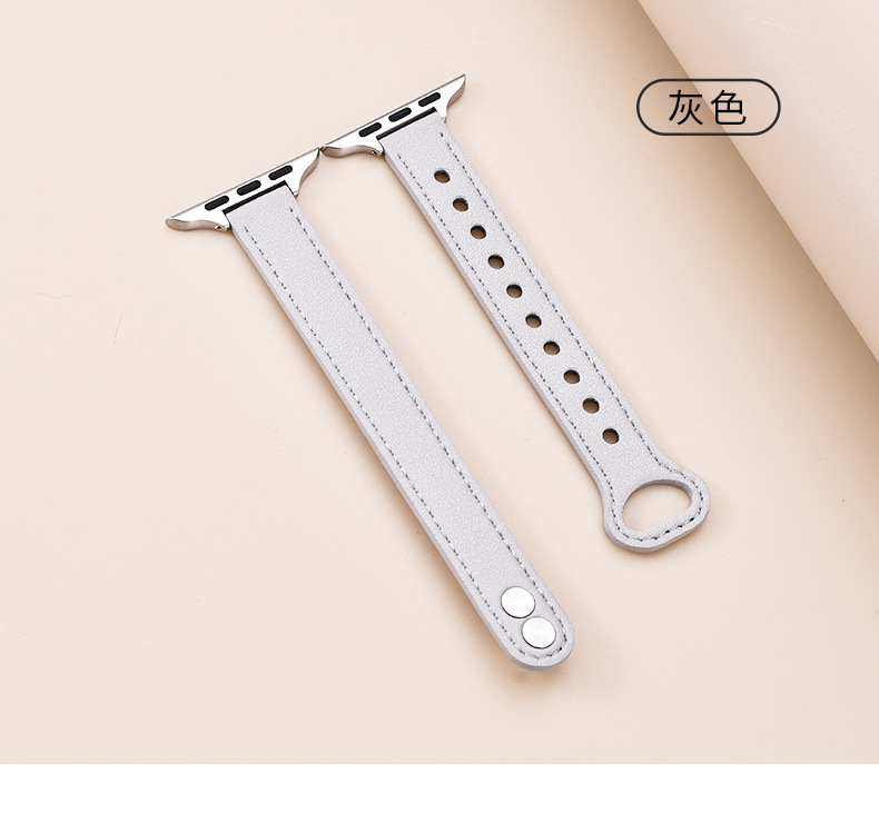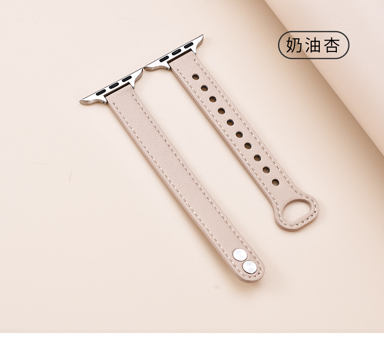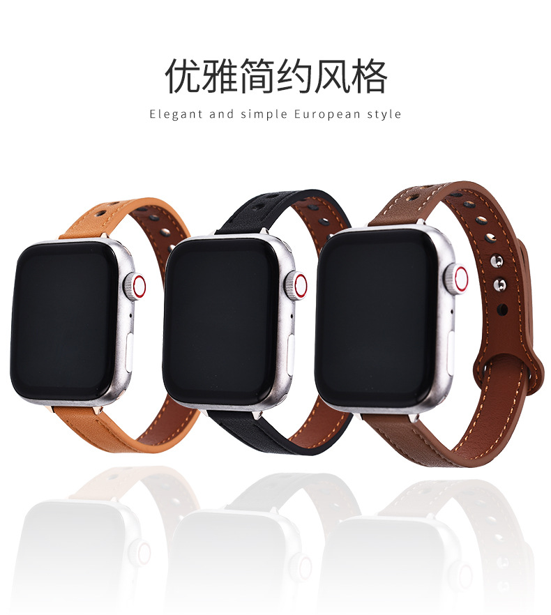 适用苹果手表 纤细耐用柔软牛皮真皮表带applewatch8iwatchSE通用