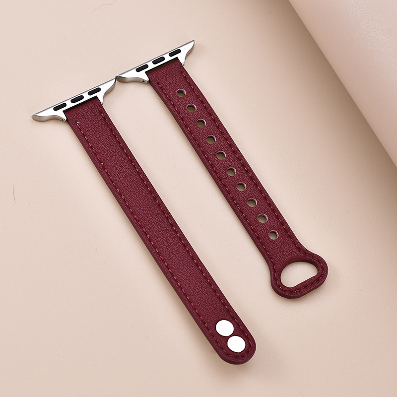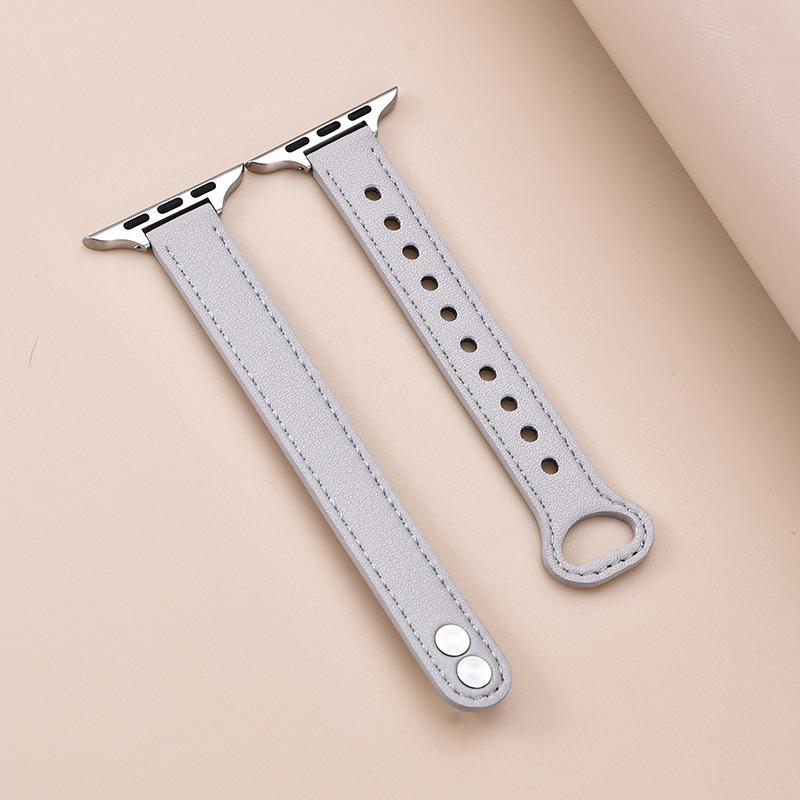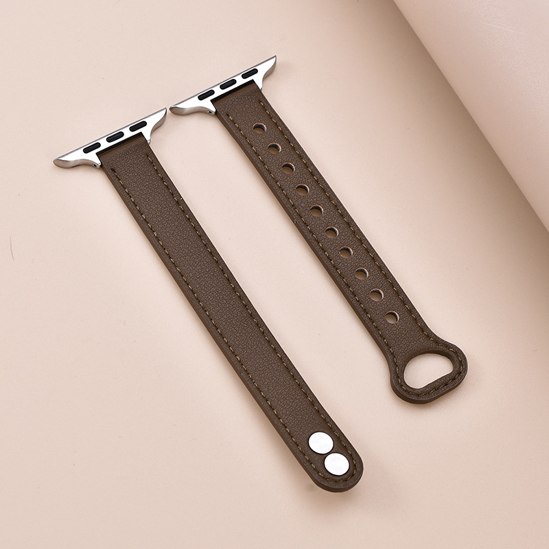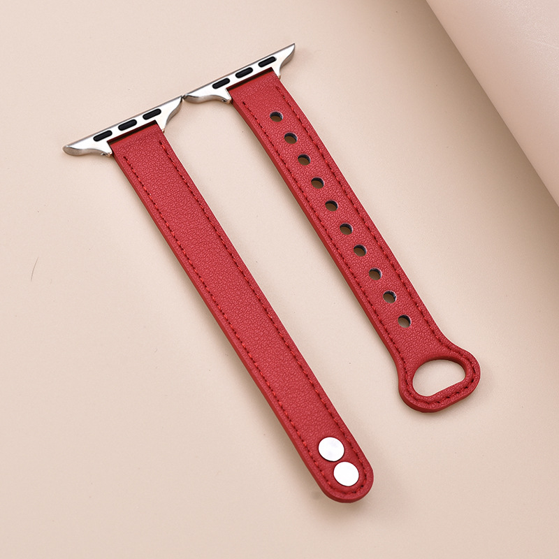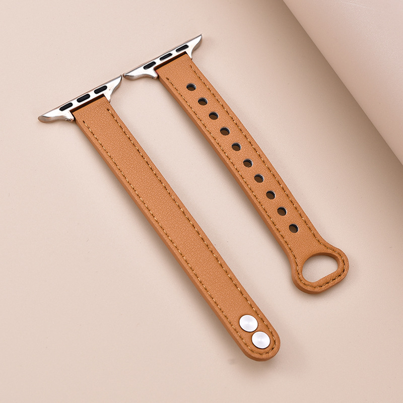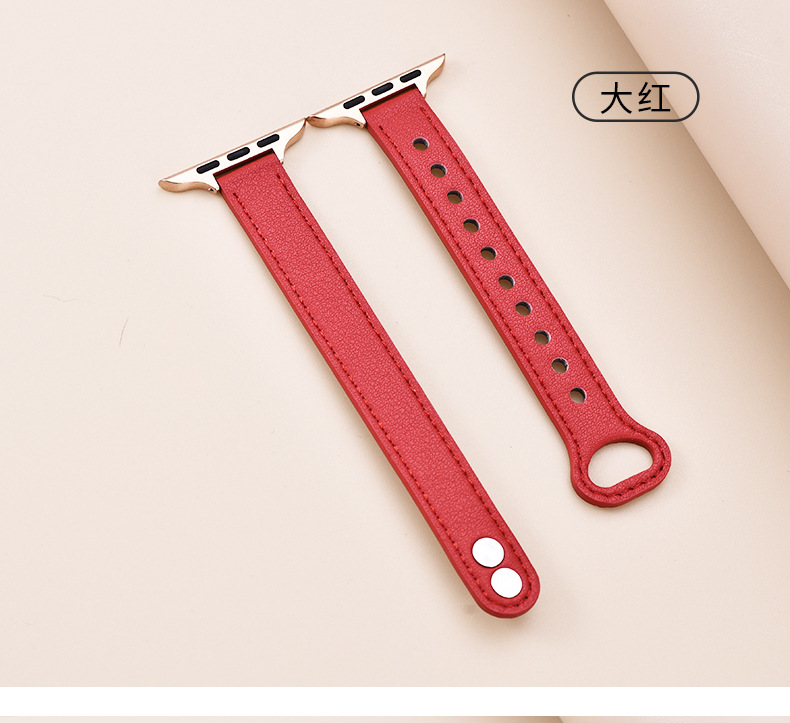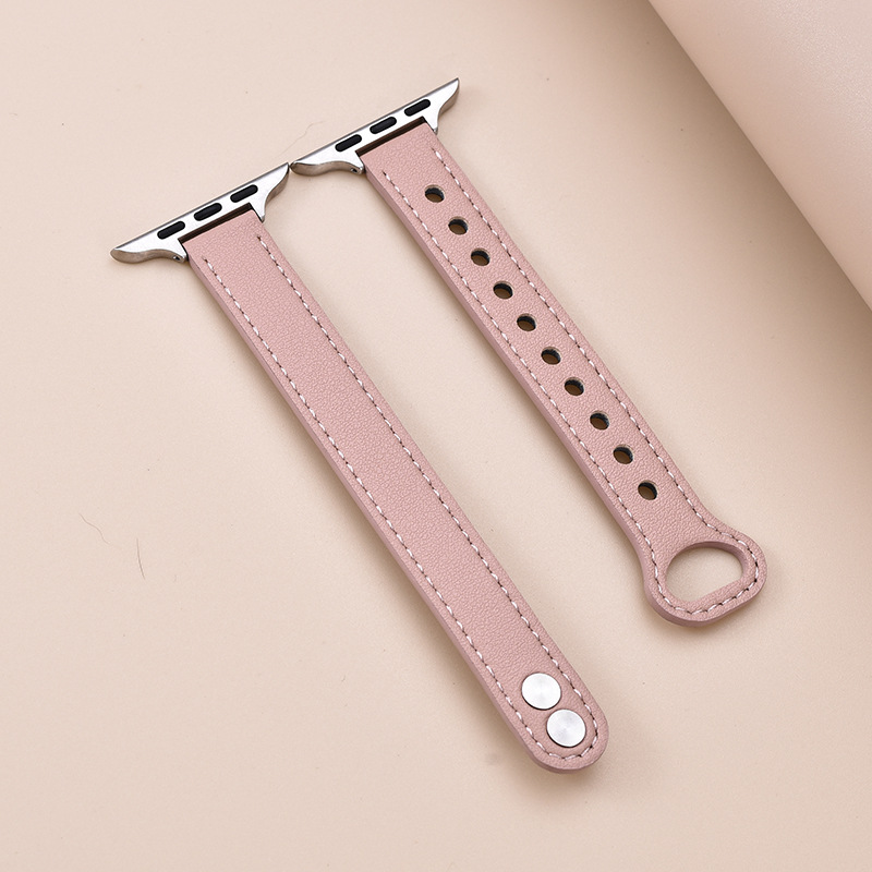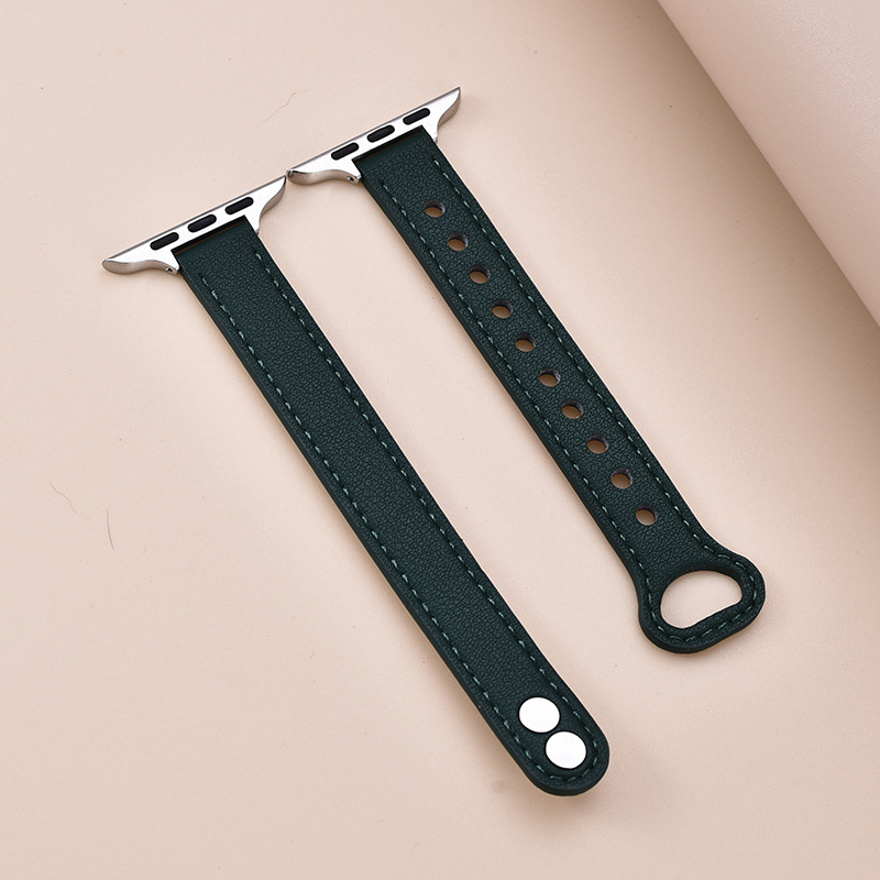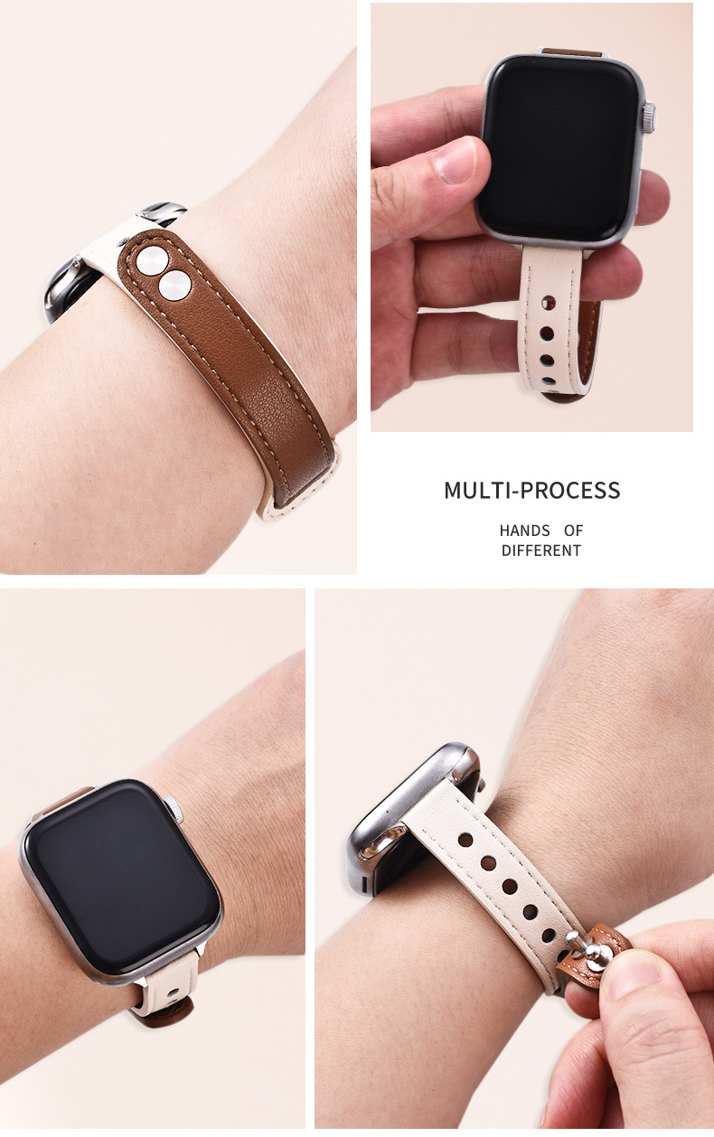 适用苹果手表 纤细耐用柔软牛皮真皮表带applewatch8iwatchSE通用