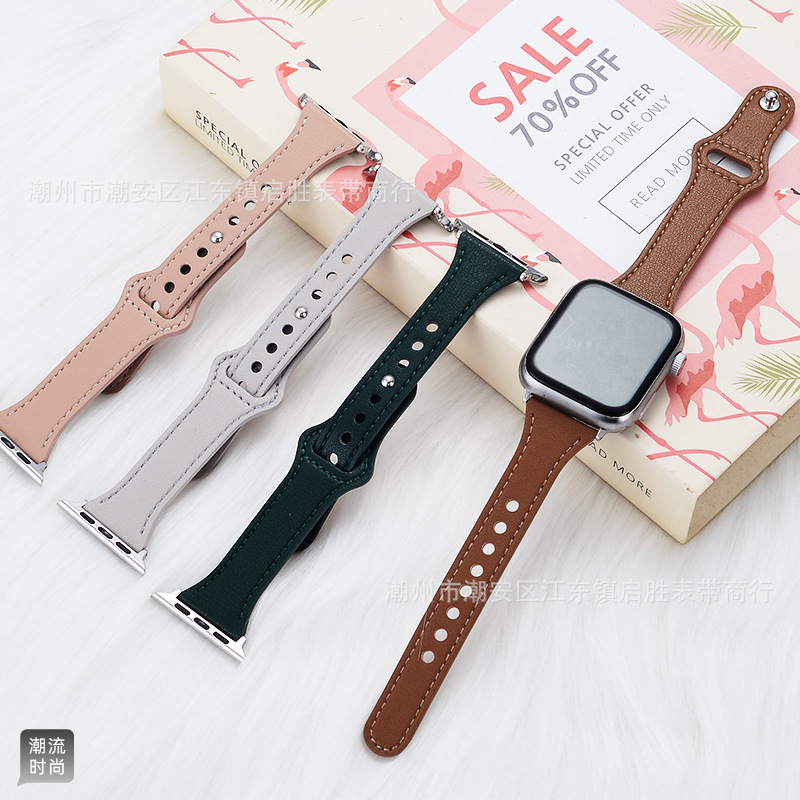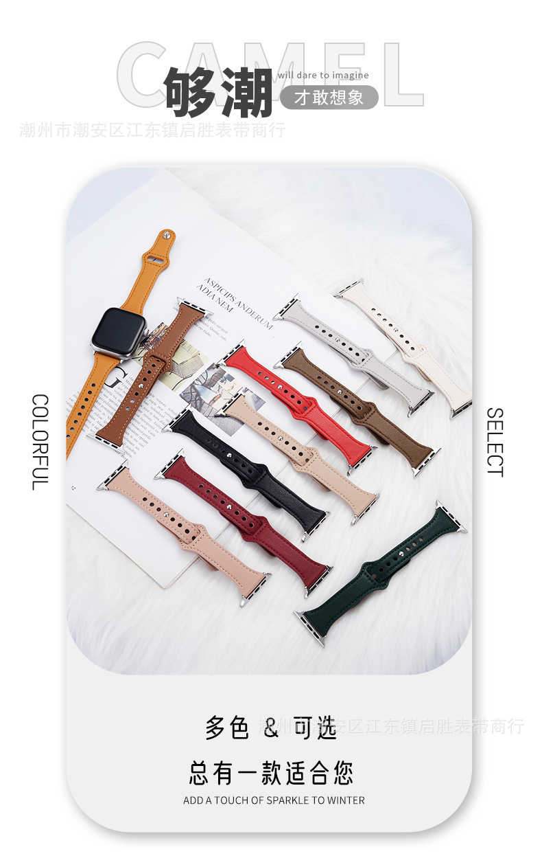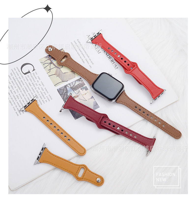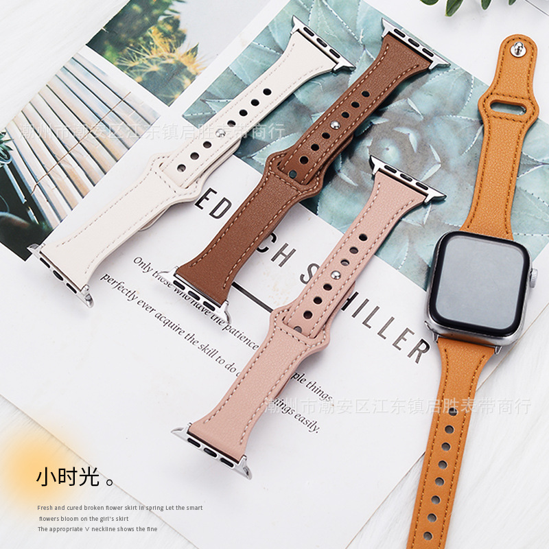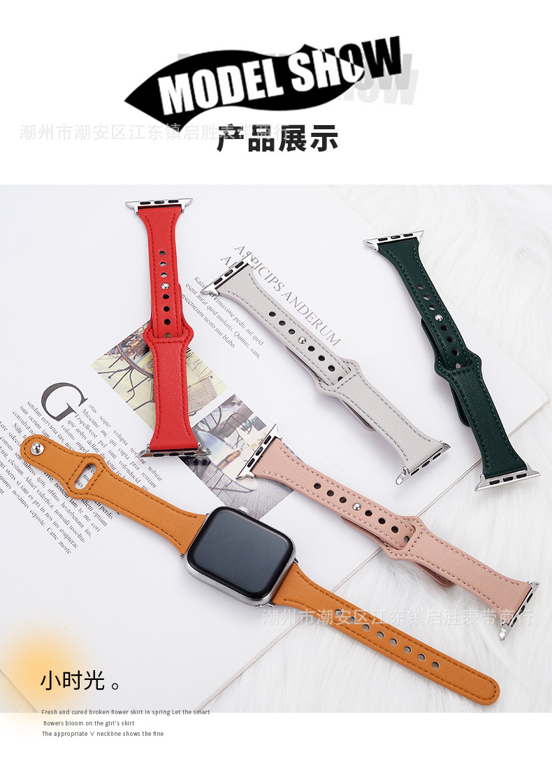 适用applewatch苹果手表小蛮腰皮质表带iwatch SE 8/7/6/5代智能