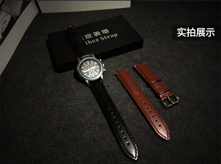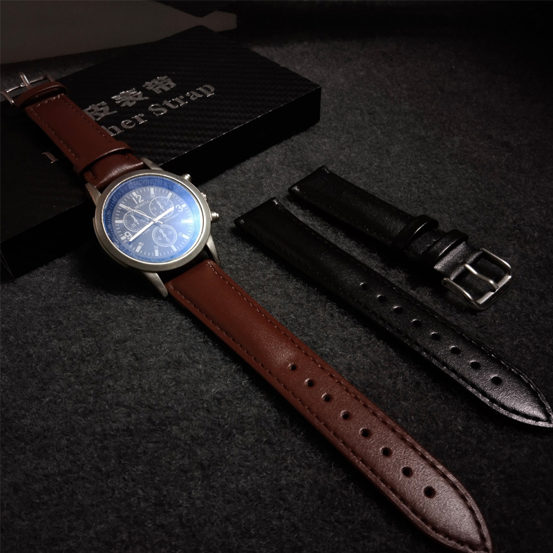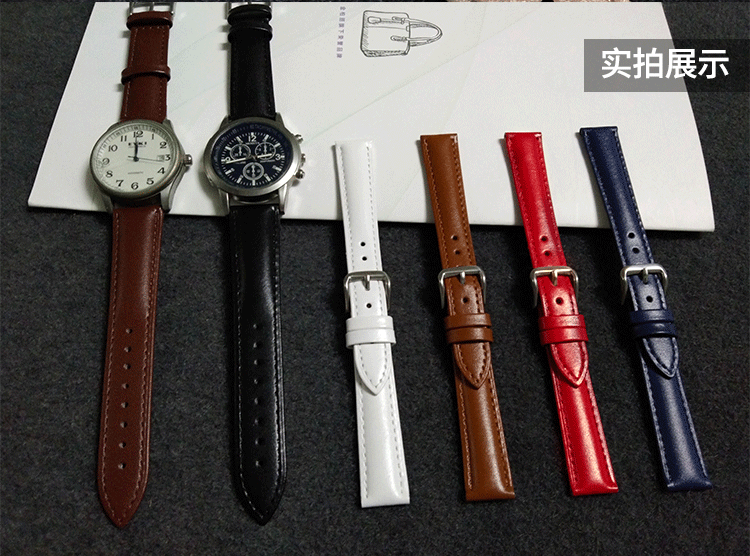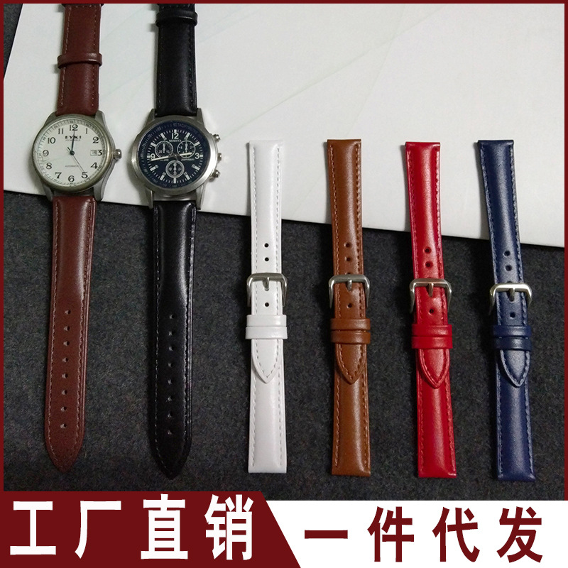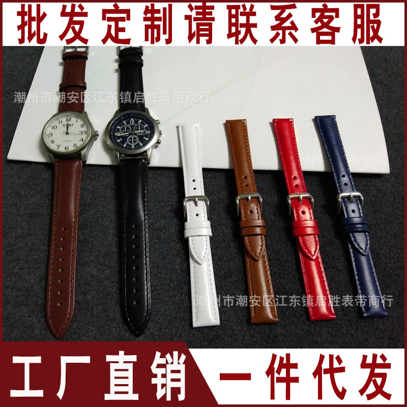 厂家直销现货真皮牛皮表带通用针扣平纹表带手表配件针纹一件代发