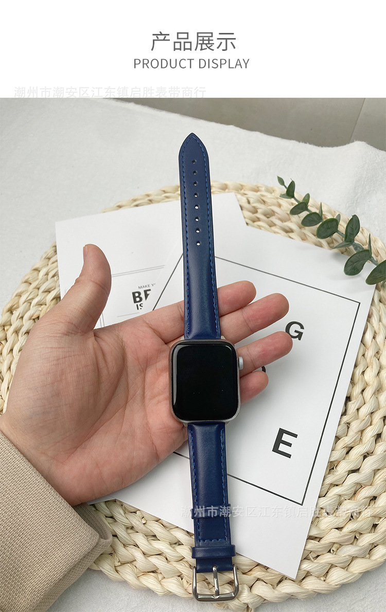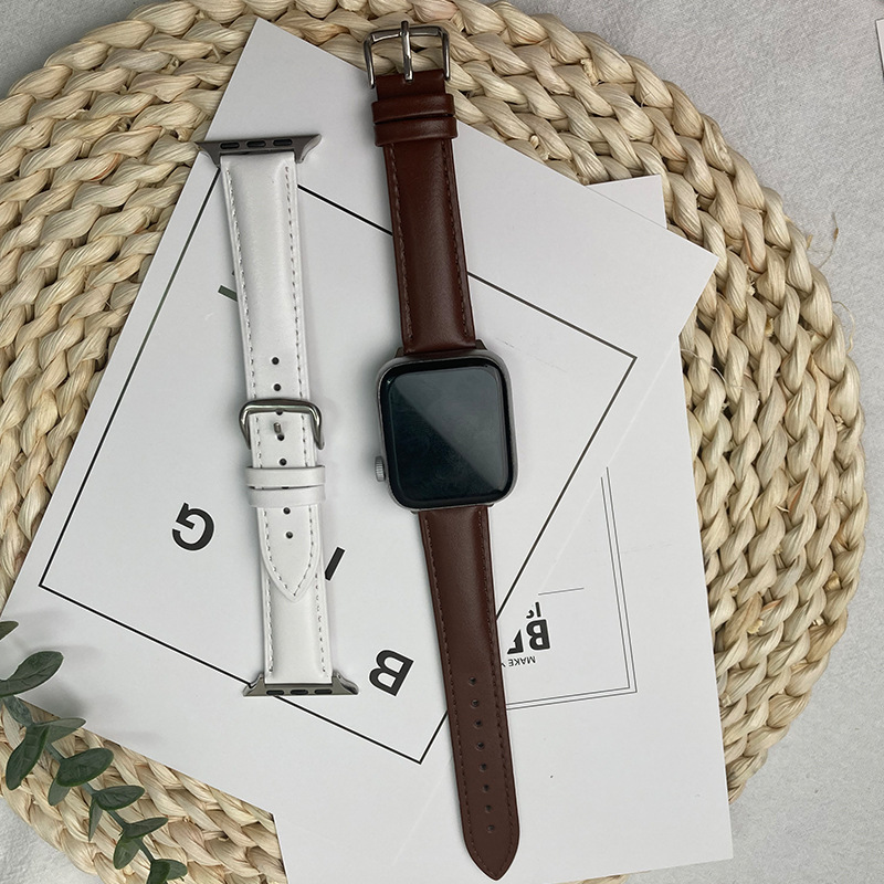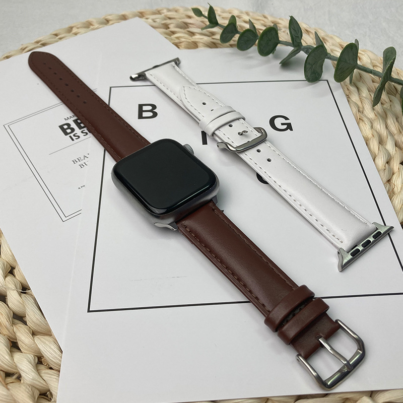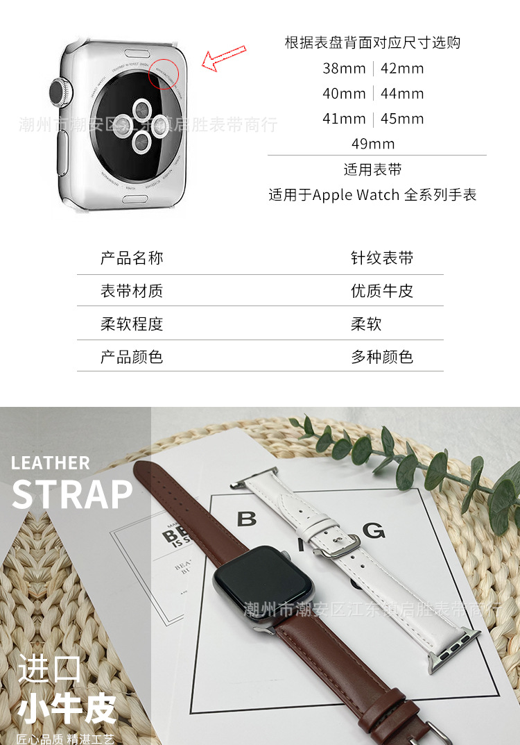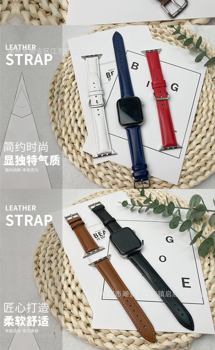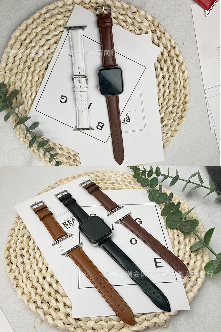 适用苹果手表iwatch123456se皮表带华为真皮手表带针扣批发代发