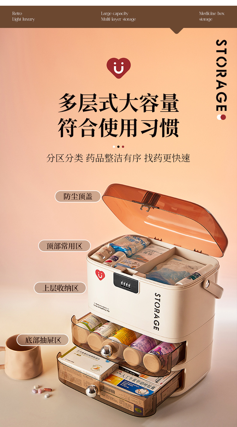 带密码锁家庭医药箱大容量防儿童误食药品药物收纳箱药盒