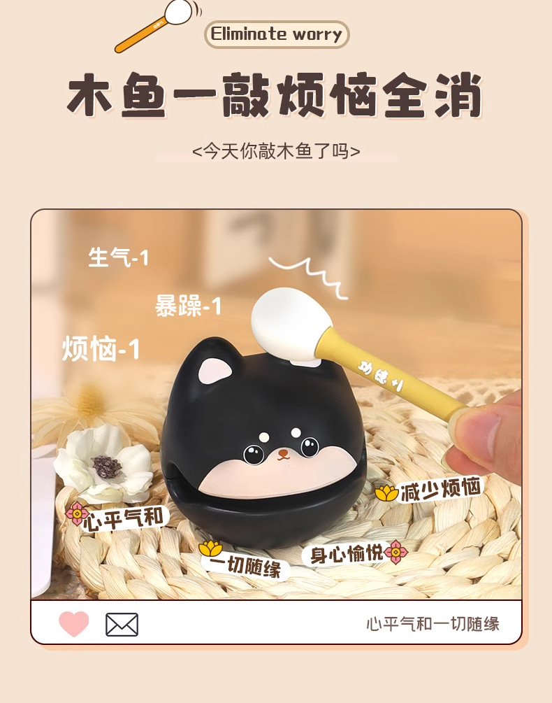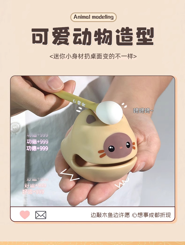 解压木鱼敲打静心摆件办公工位情绪稳定玩具可爱愈佛系生日礼物
