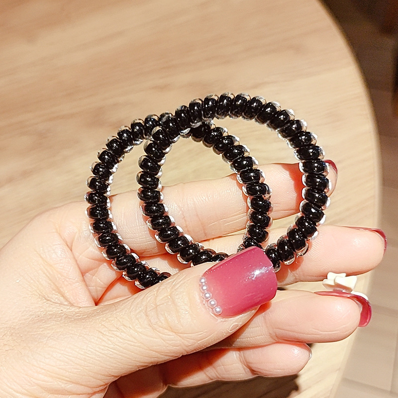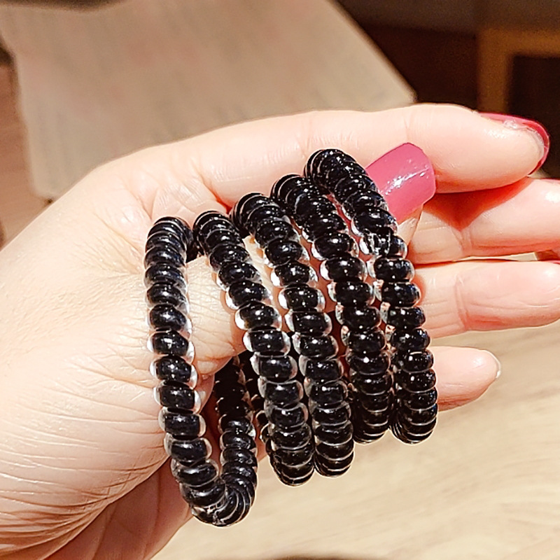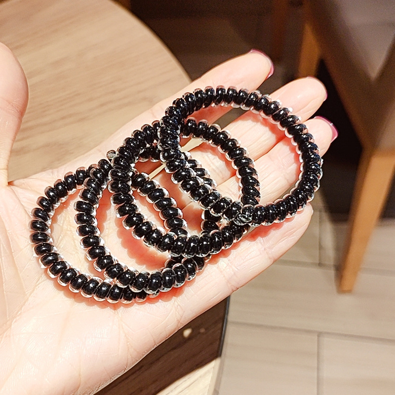 韩国电话线 黑色半透明果冻电话线发圈发饰扎发绳橡皮筋女头饰