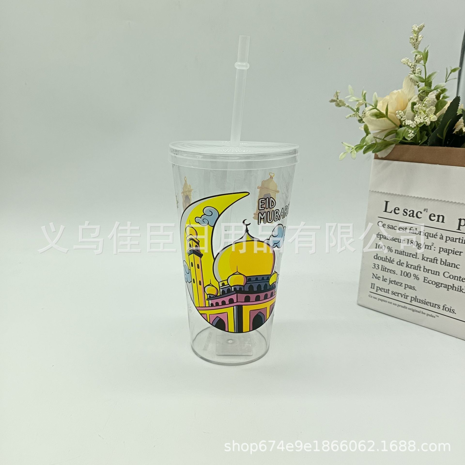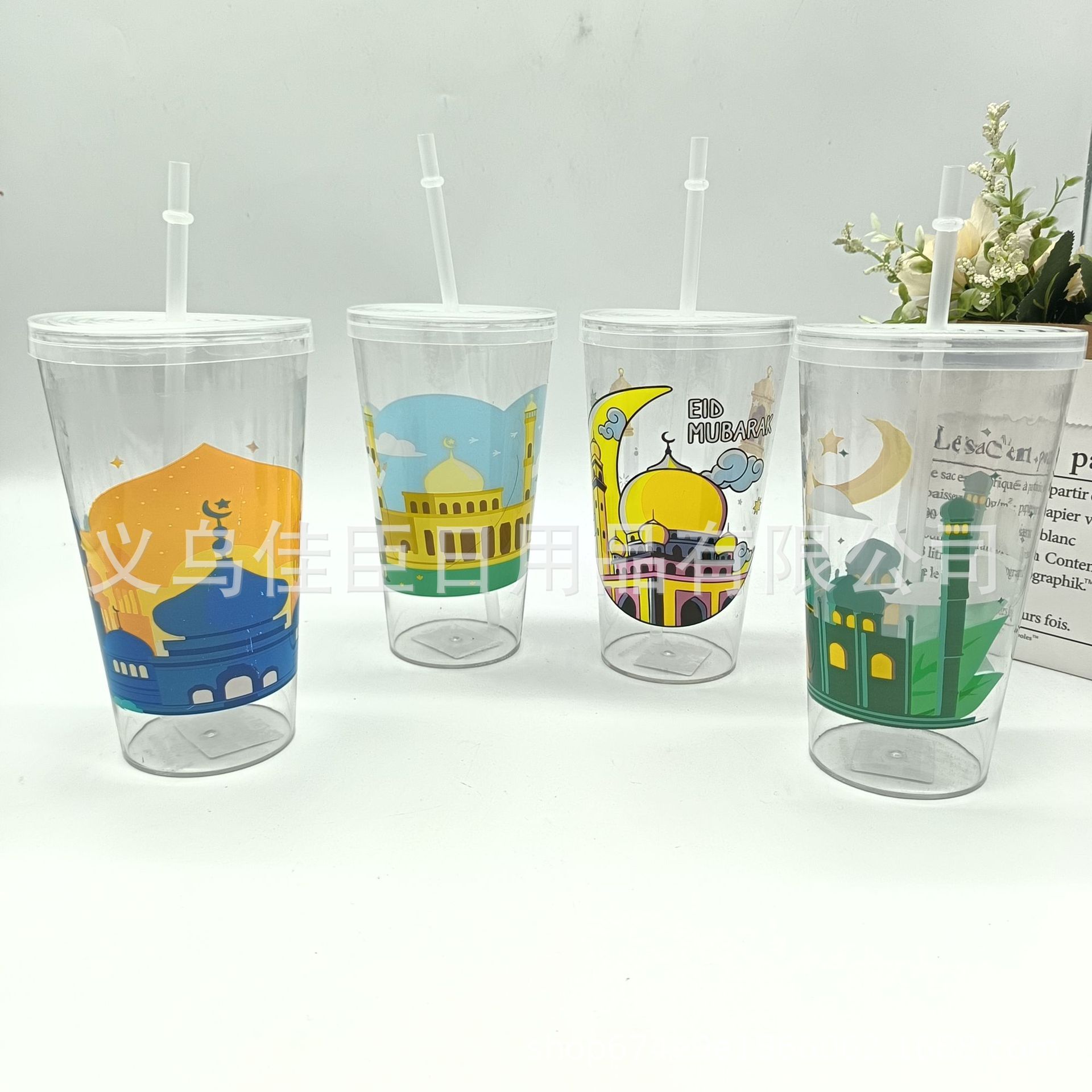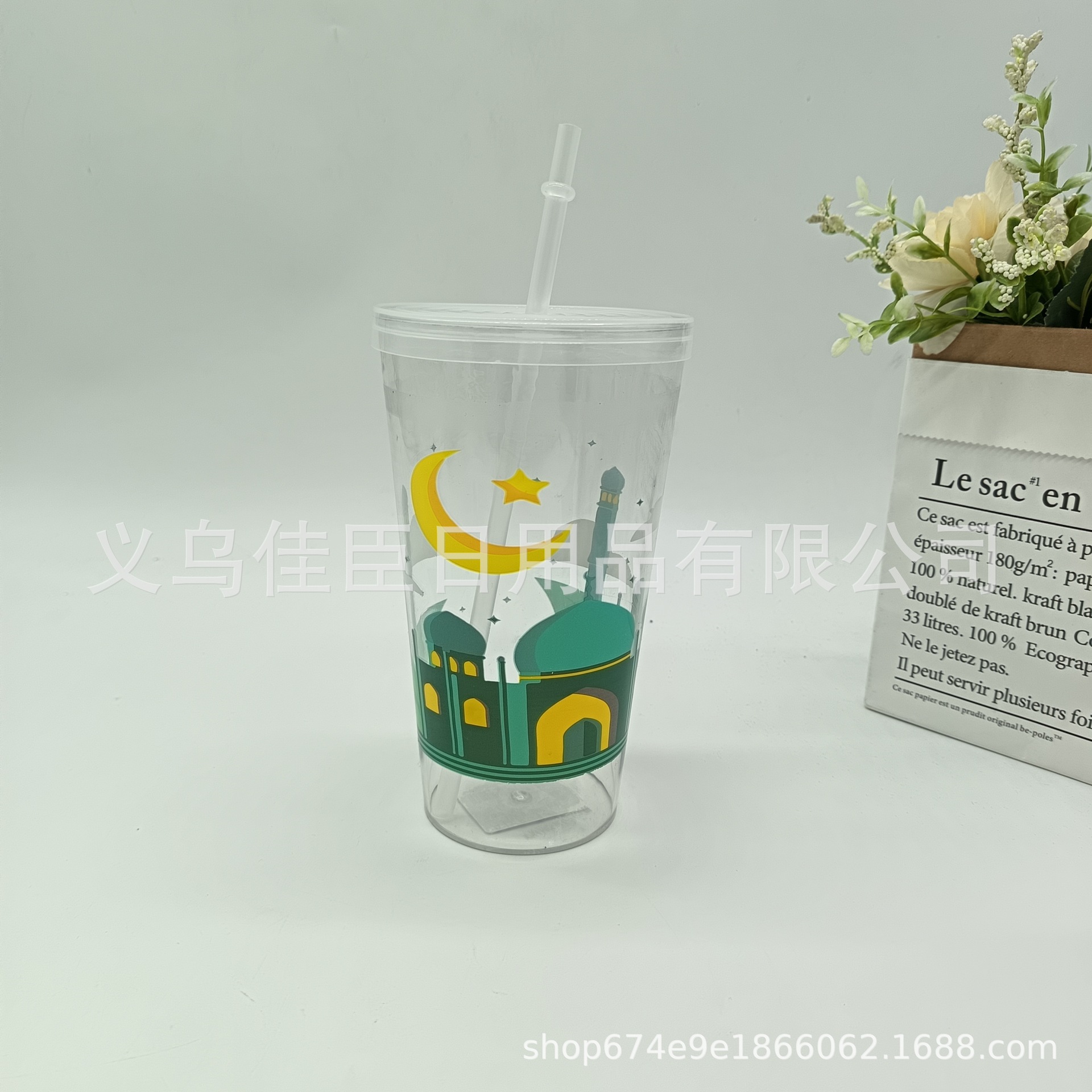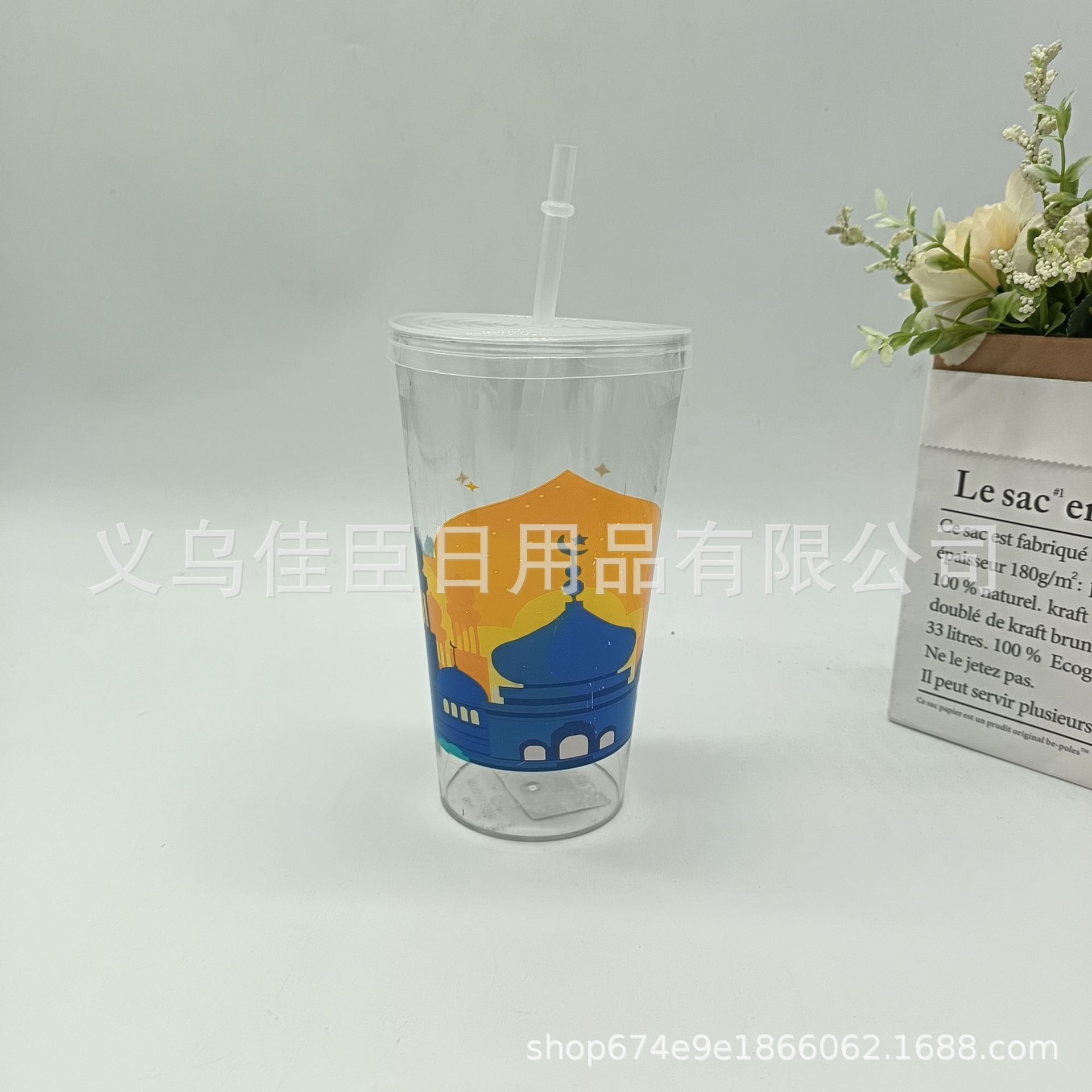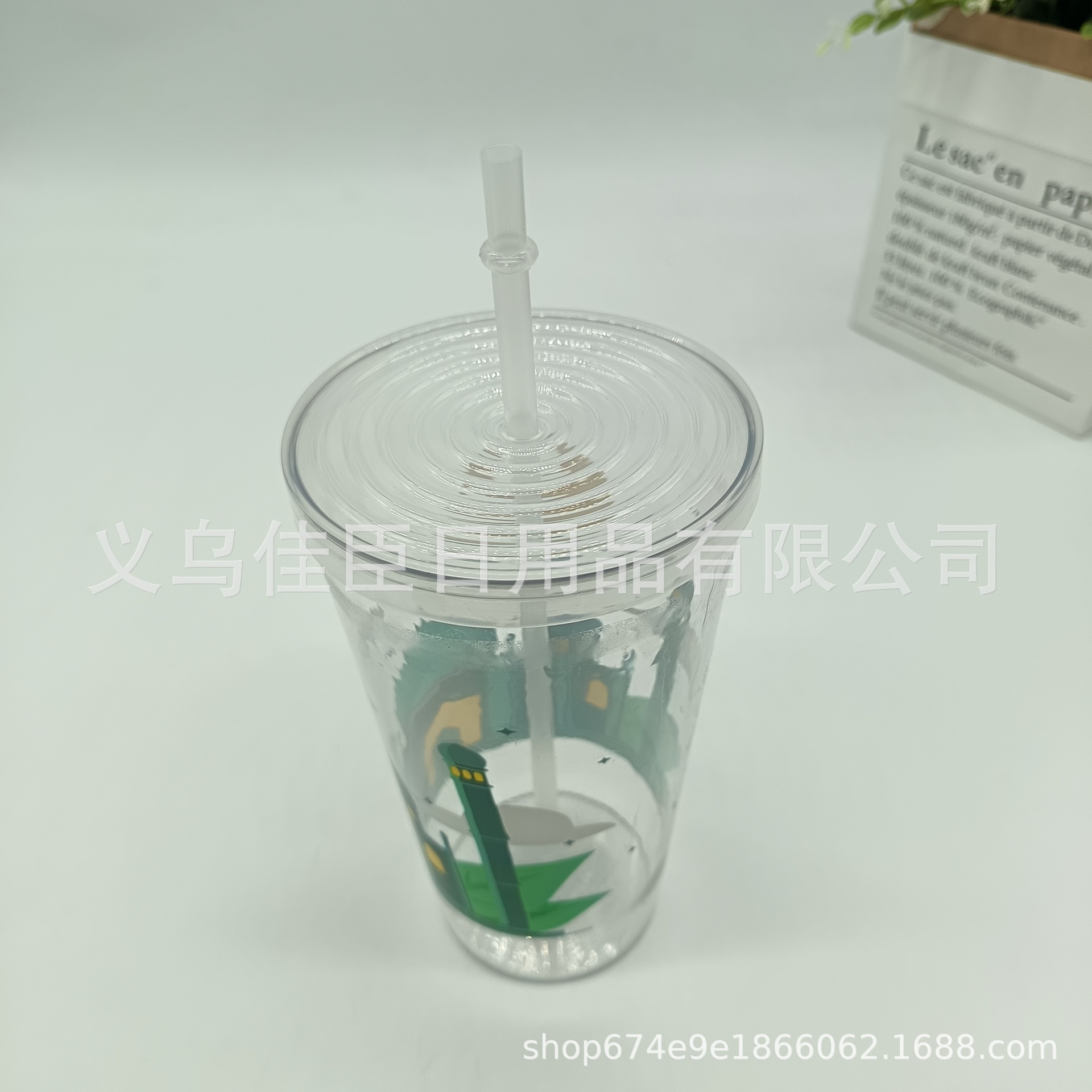 跨境热销吸管杯透明pet材质轻奢高级果汁杯水杯饮料杯品批发拿货