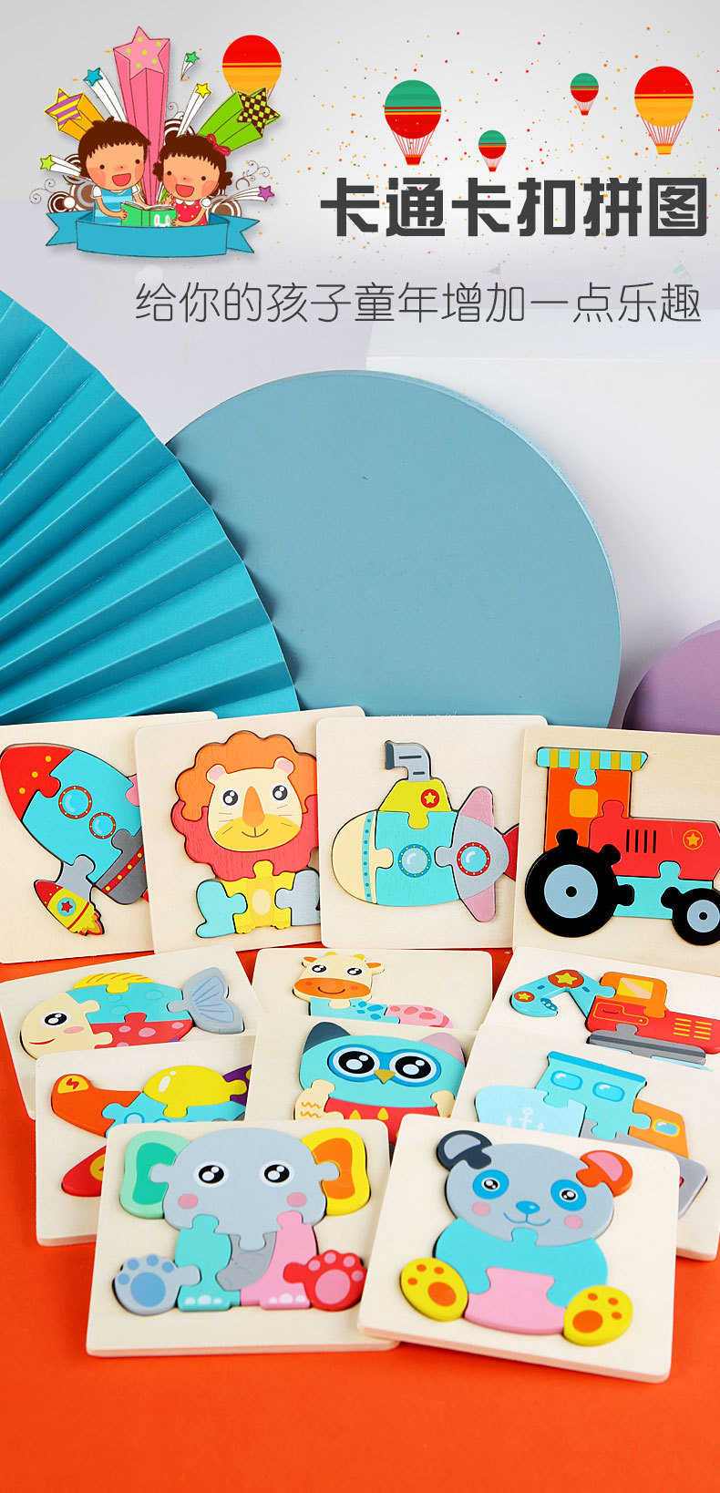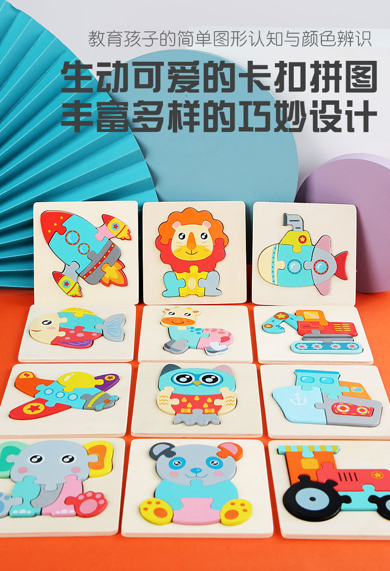 木制几何立体卡扣1-3岁儿童拼图宝宝早教木质拼板积木益智玩具