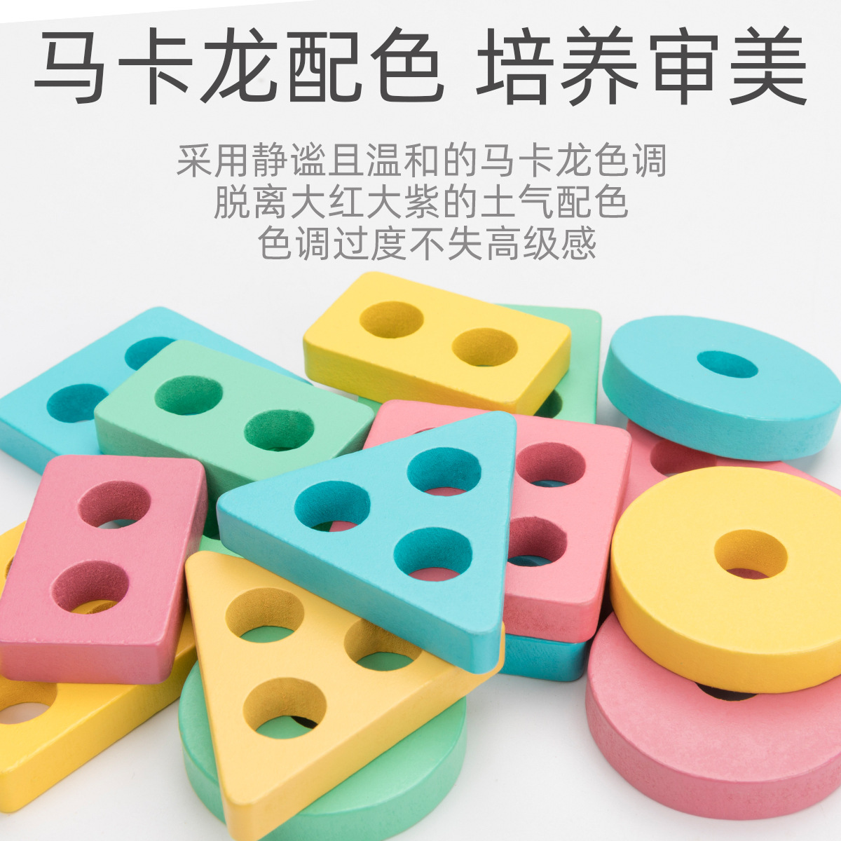 木制儿童马卡龙色几何图形配对颜色形状认知积木拼板早教益智玩具