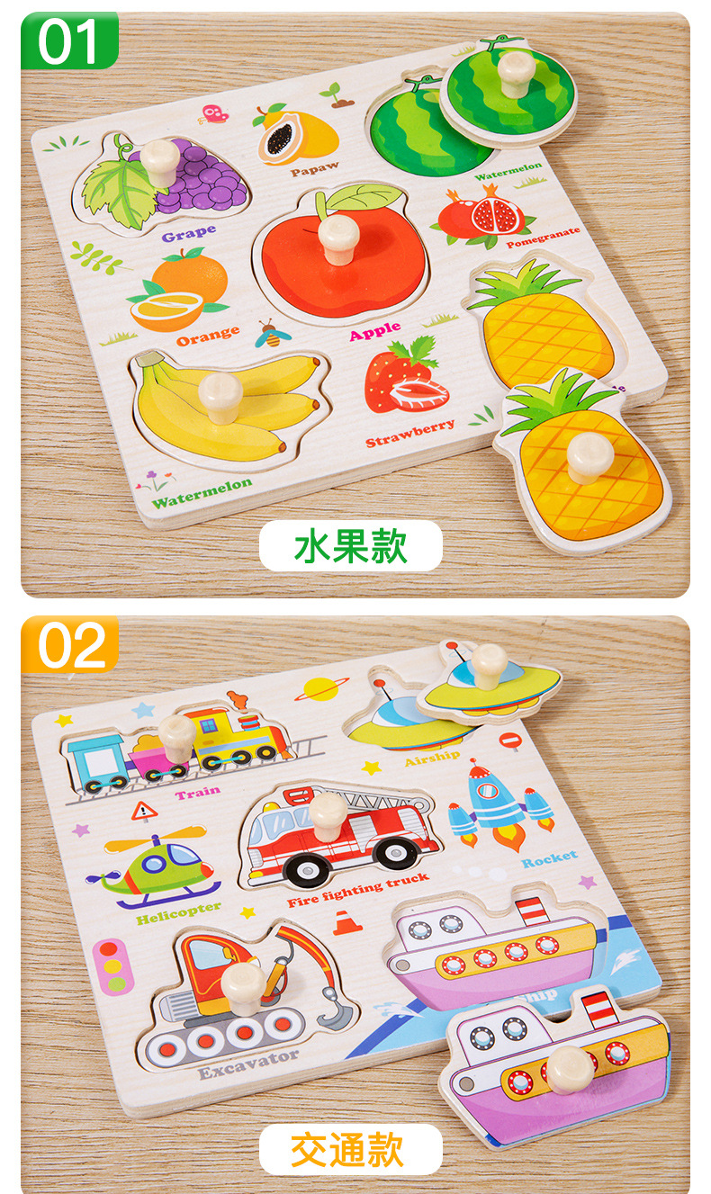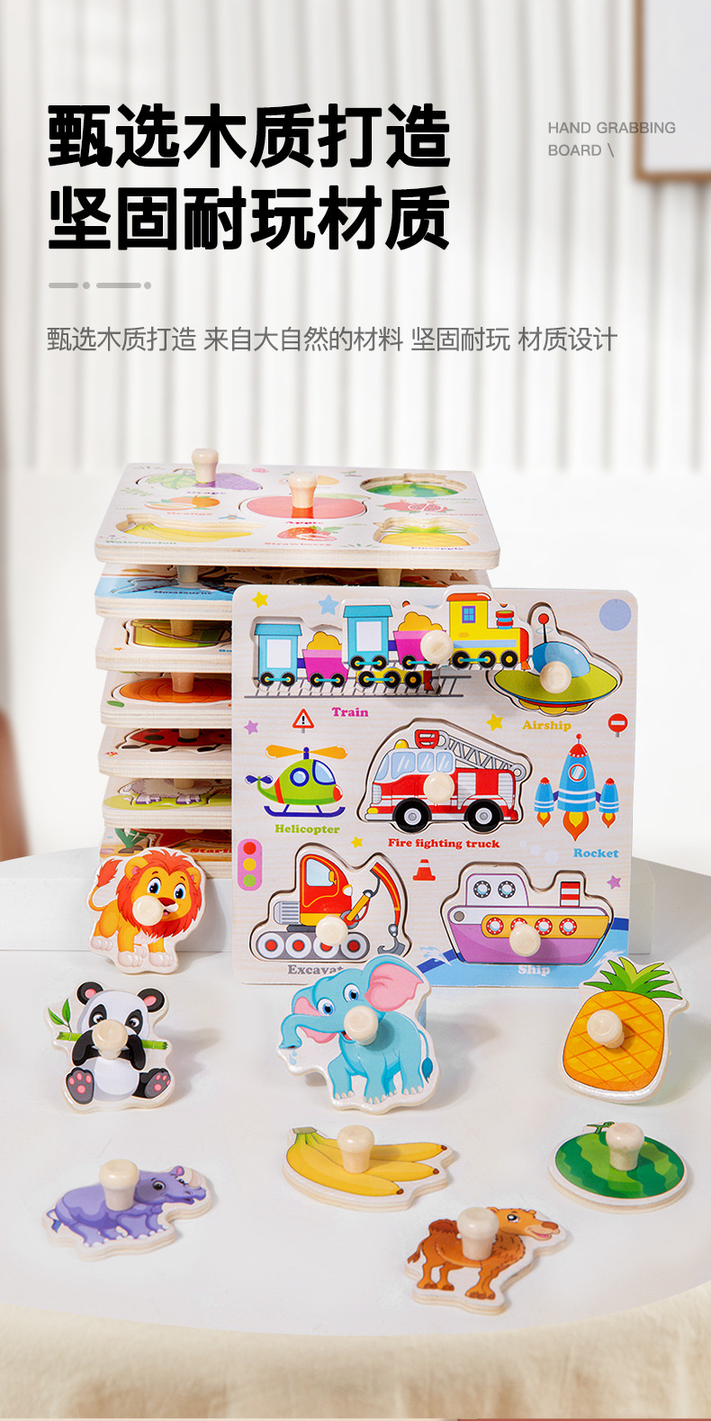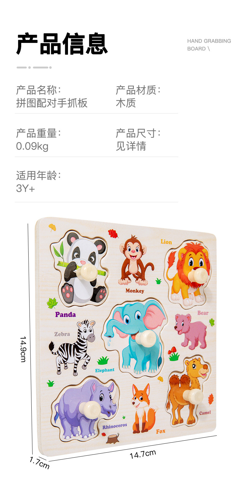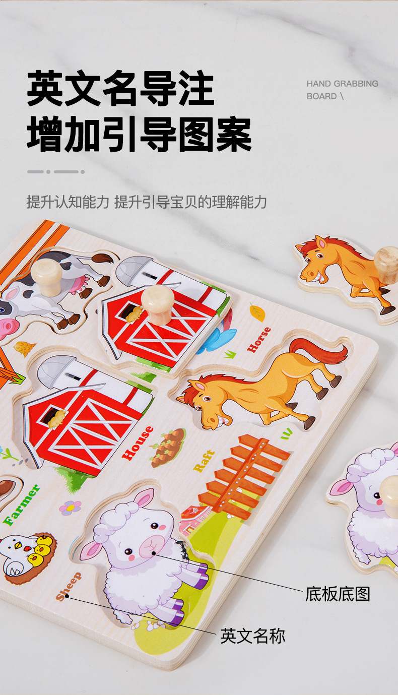 木钉宝宝牧场动物手抓板拼图 早教儿童益智木制立体拼图拼板玩具
