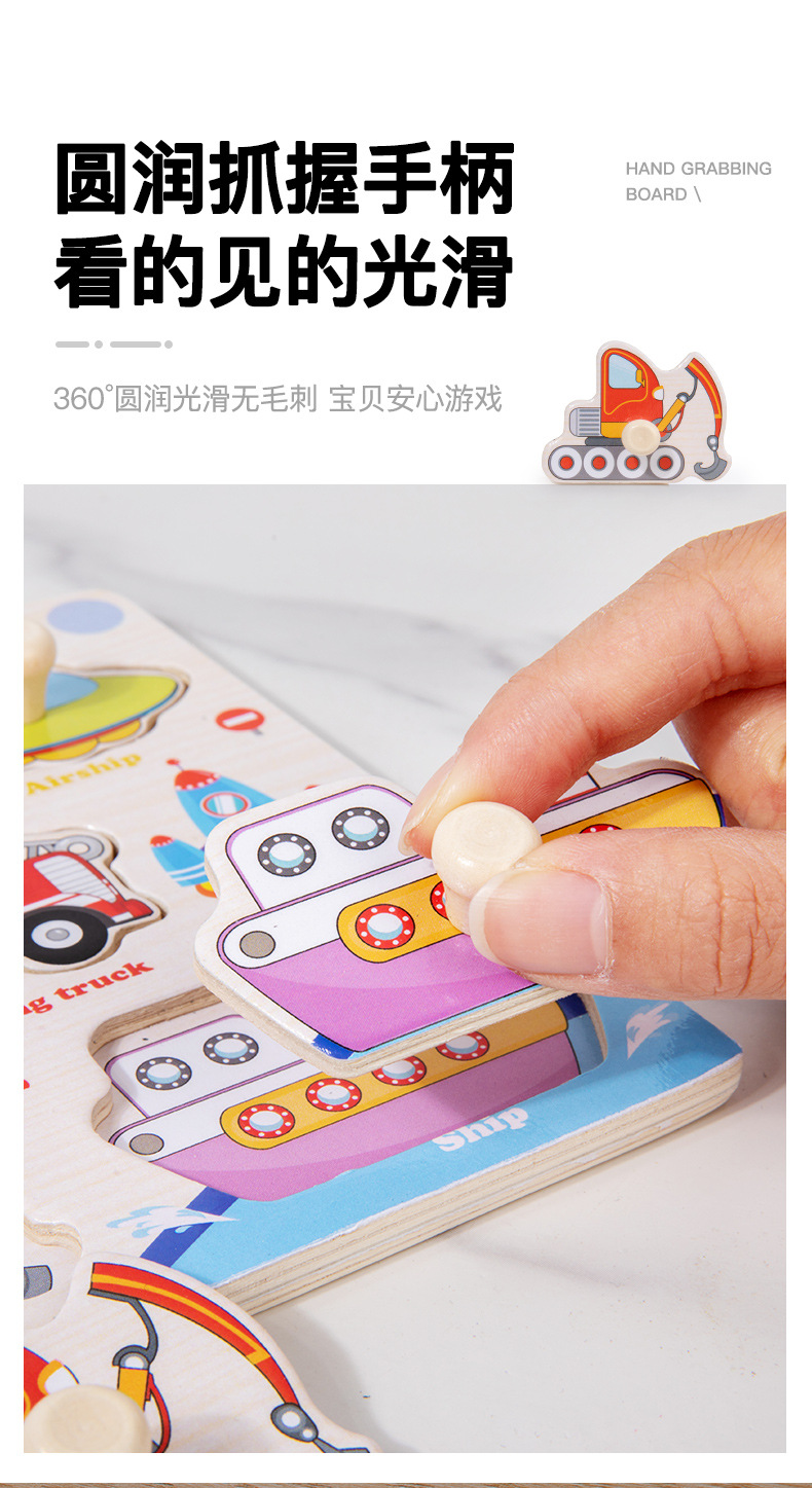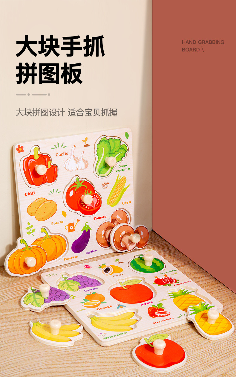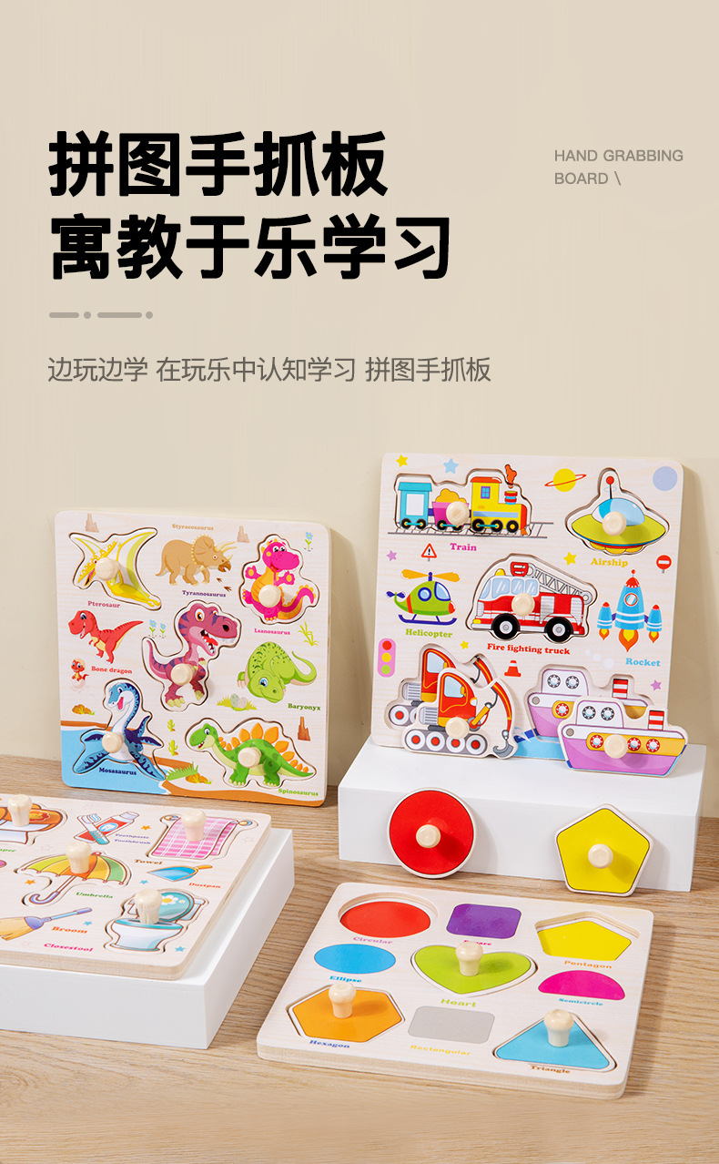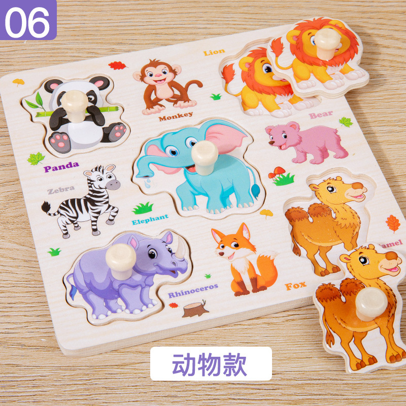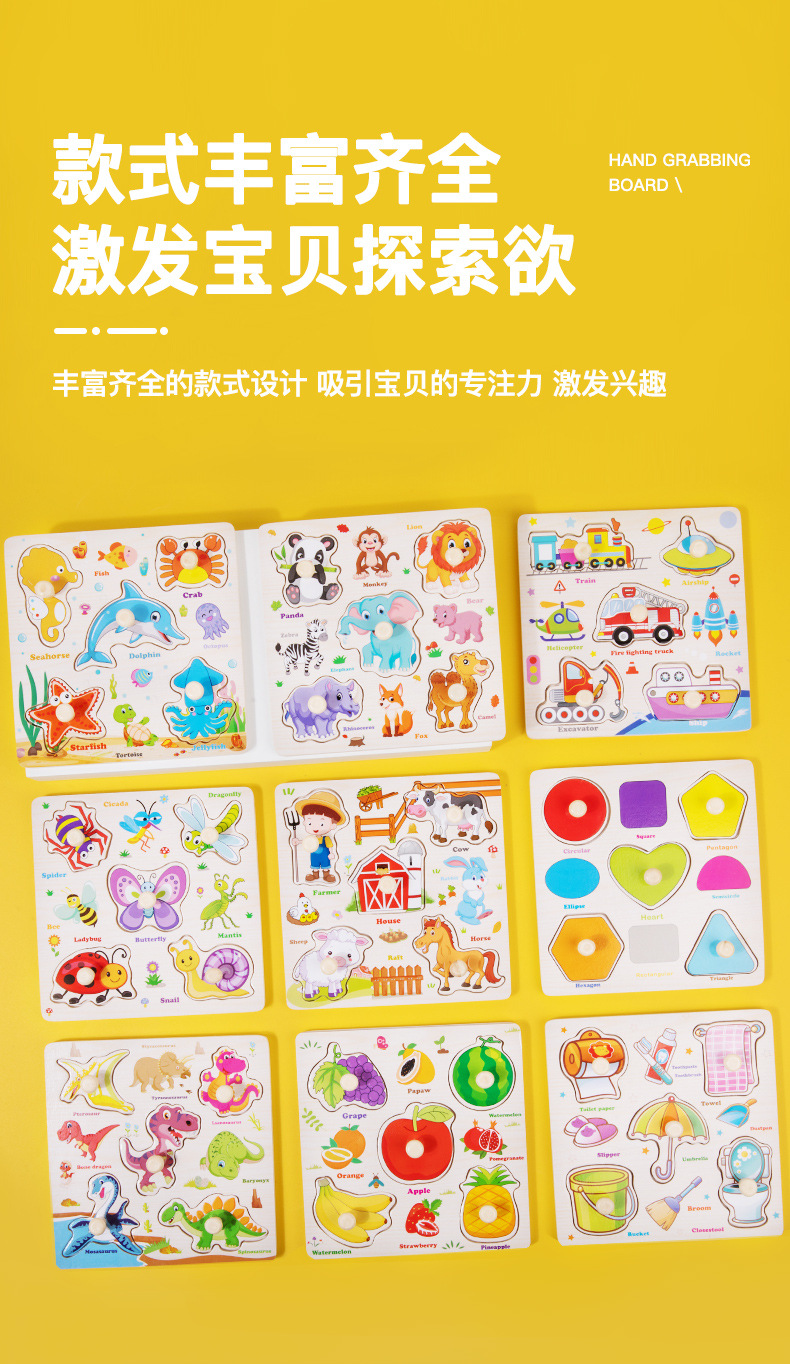 木钉宝宝牧场动物手抓板拼图 早教儿童益智木制立体拼图拼板玩具