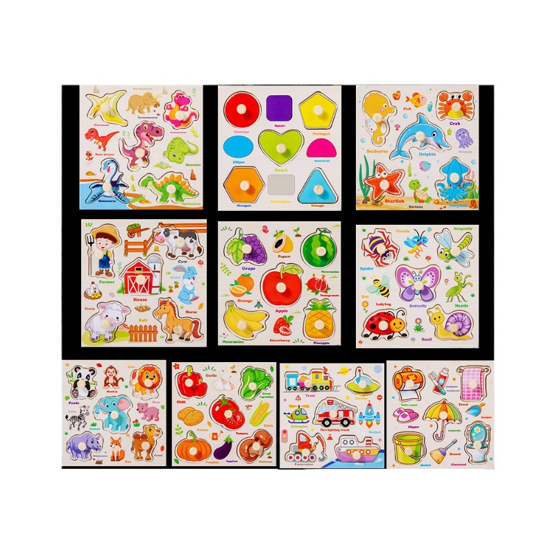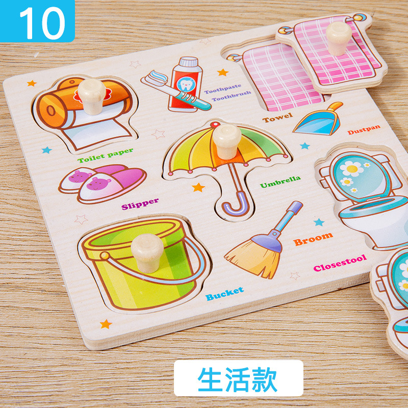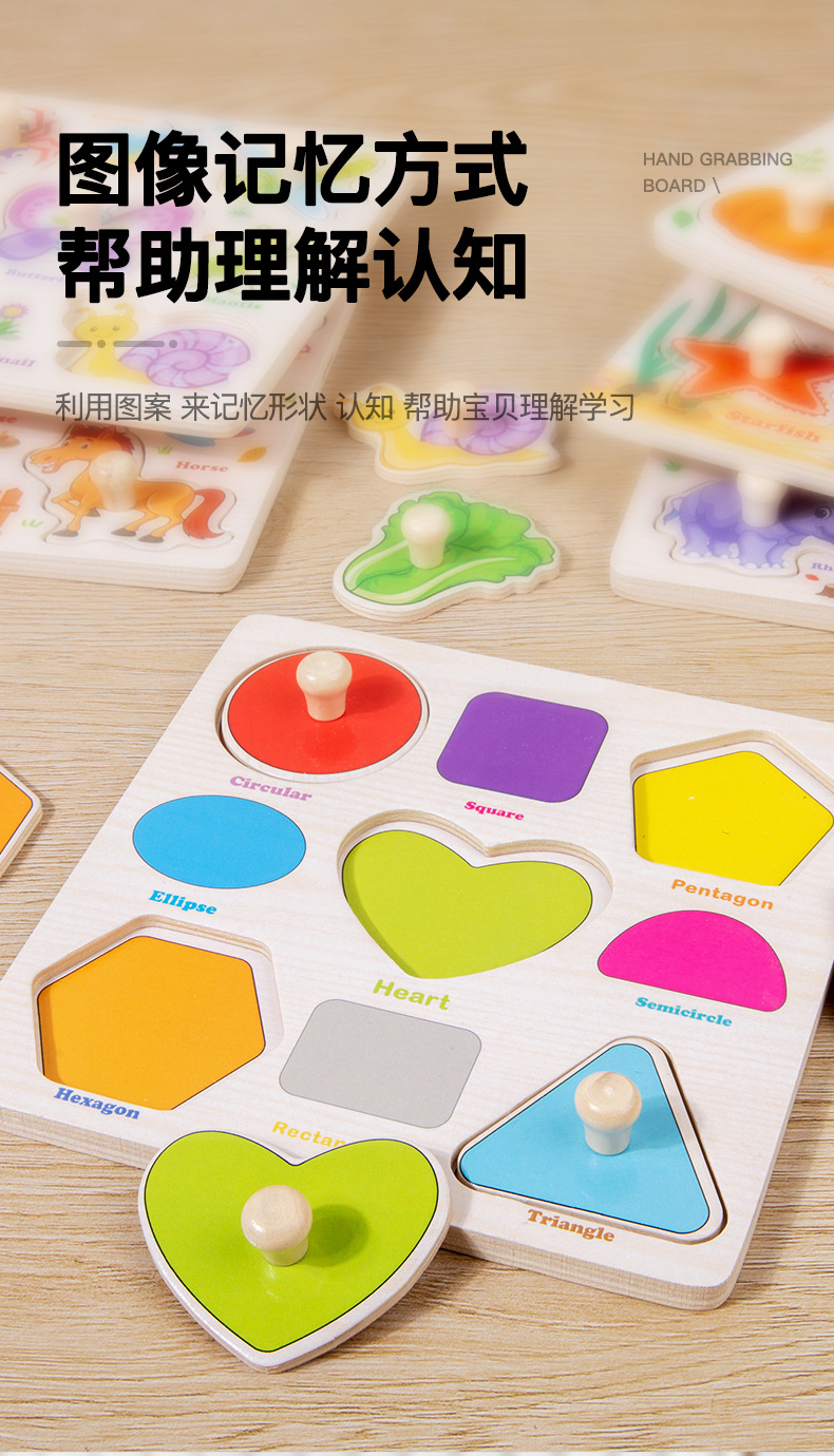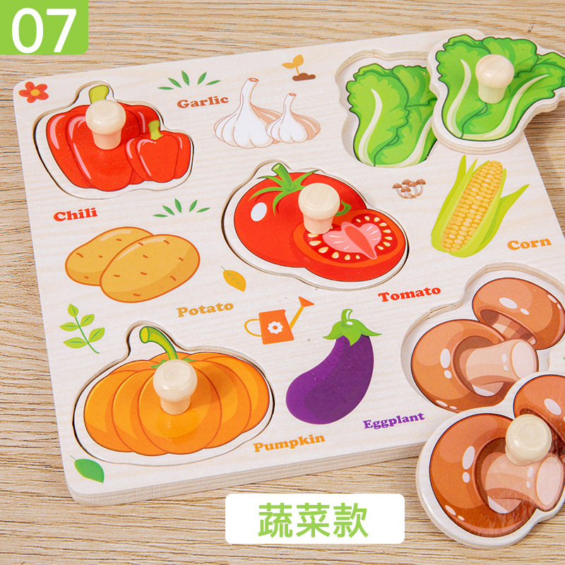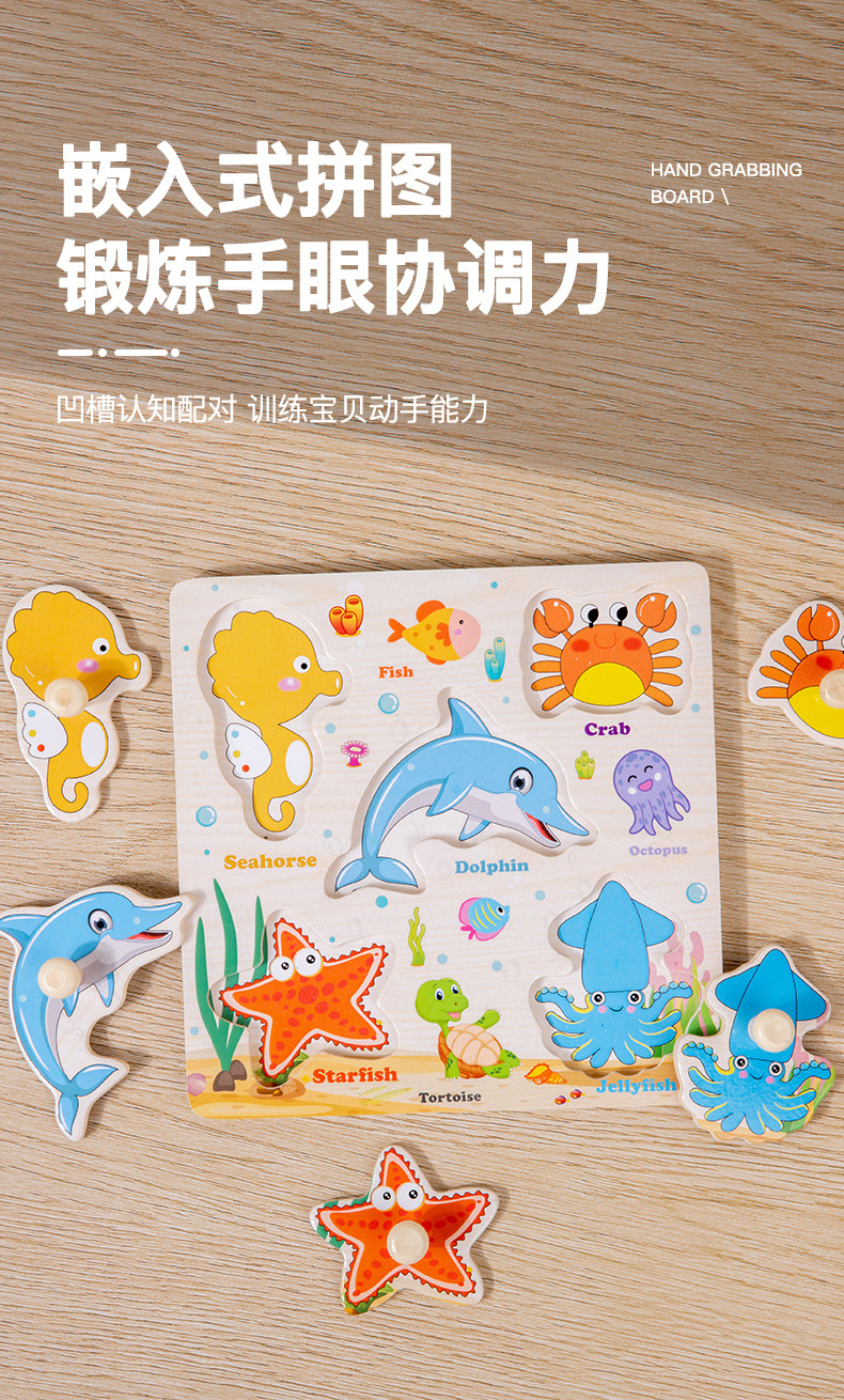木钉宝宝牧场动物手抓板拼图 早教儿童益智木制立体拼图拼板玩具