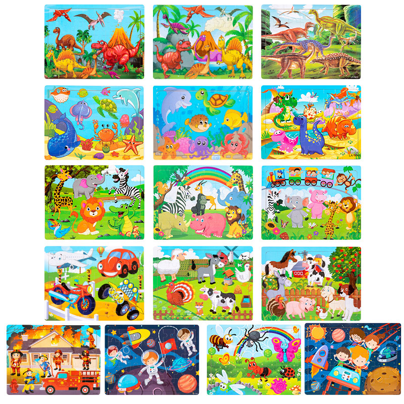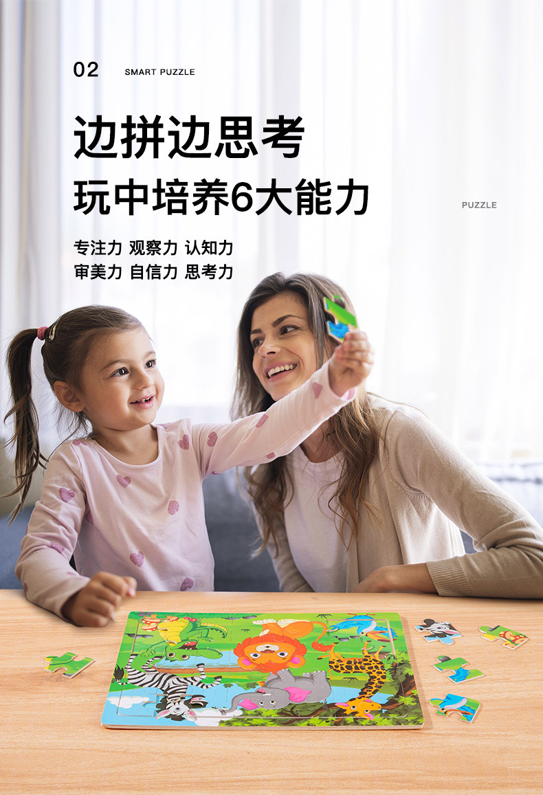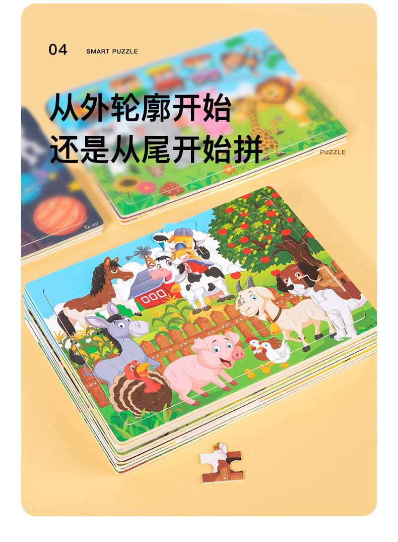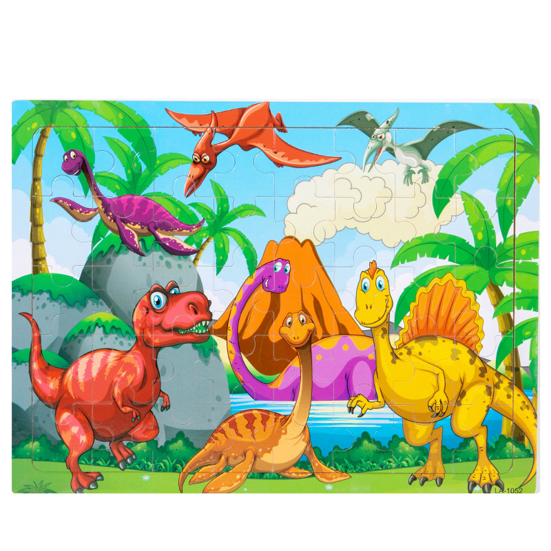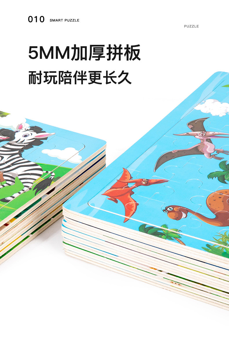 木制40片拼图 儿童动物恐龙卡通木质平面拼图 宝宝早教益智力玩具