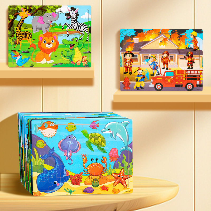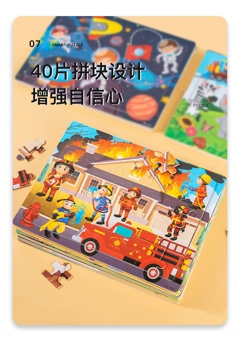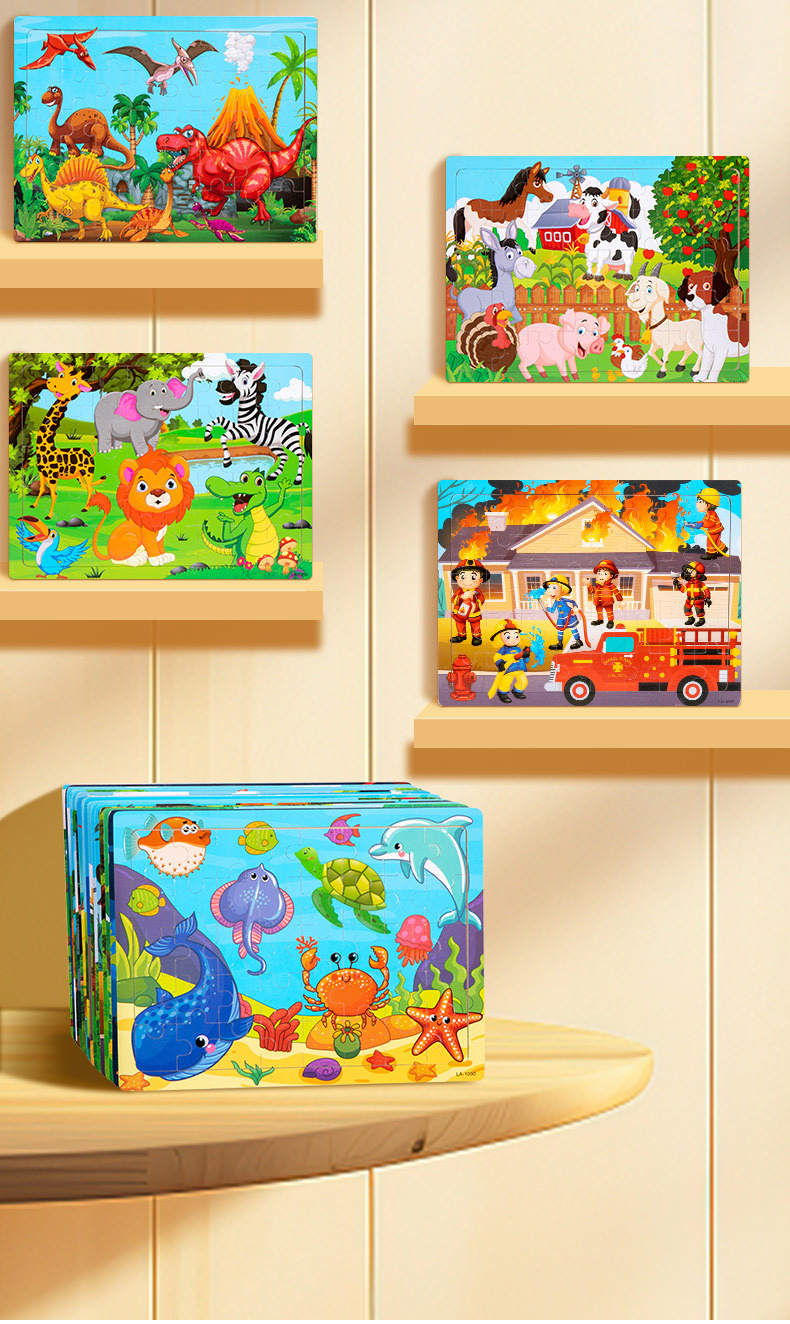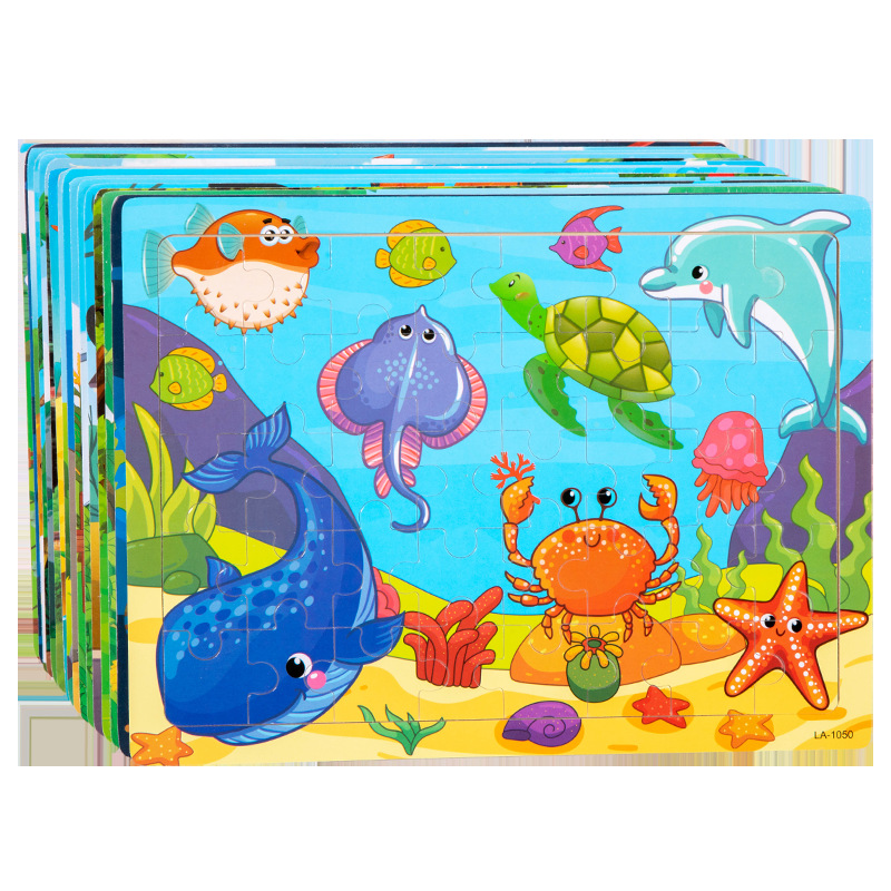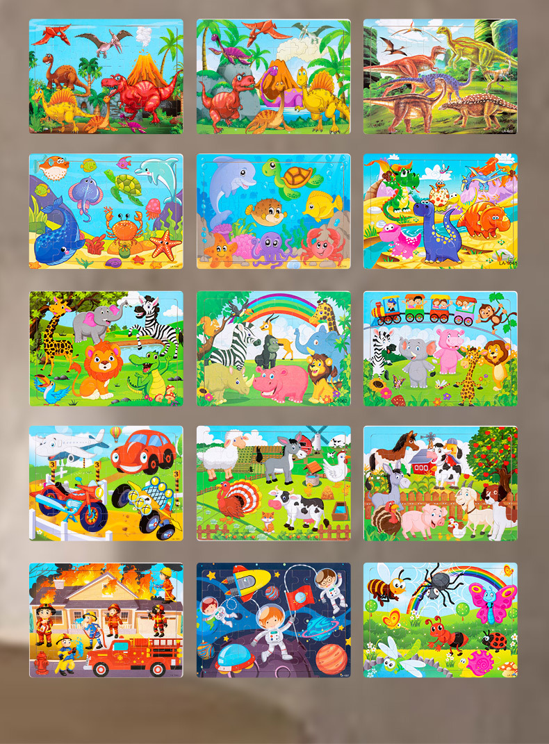 木制40片拼图 儿童动物恐龙卡通木质平面拼图 宝宝早教益智力玩具