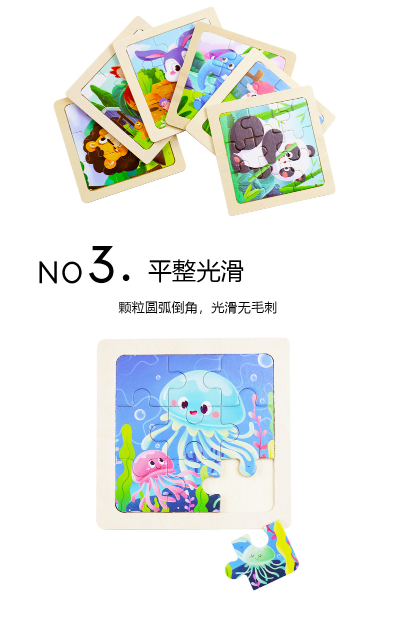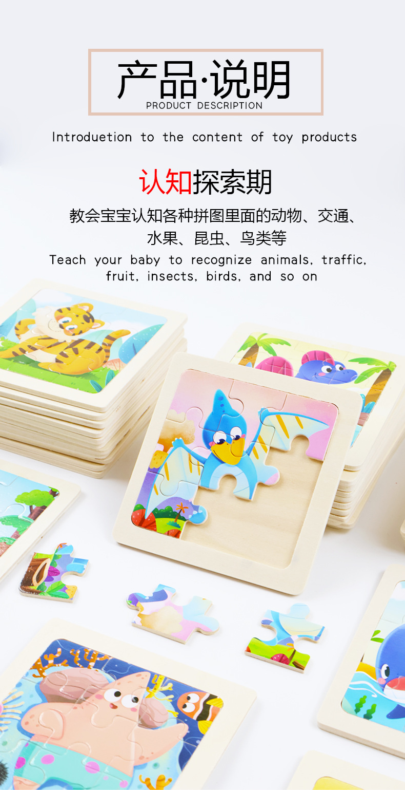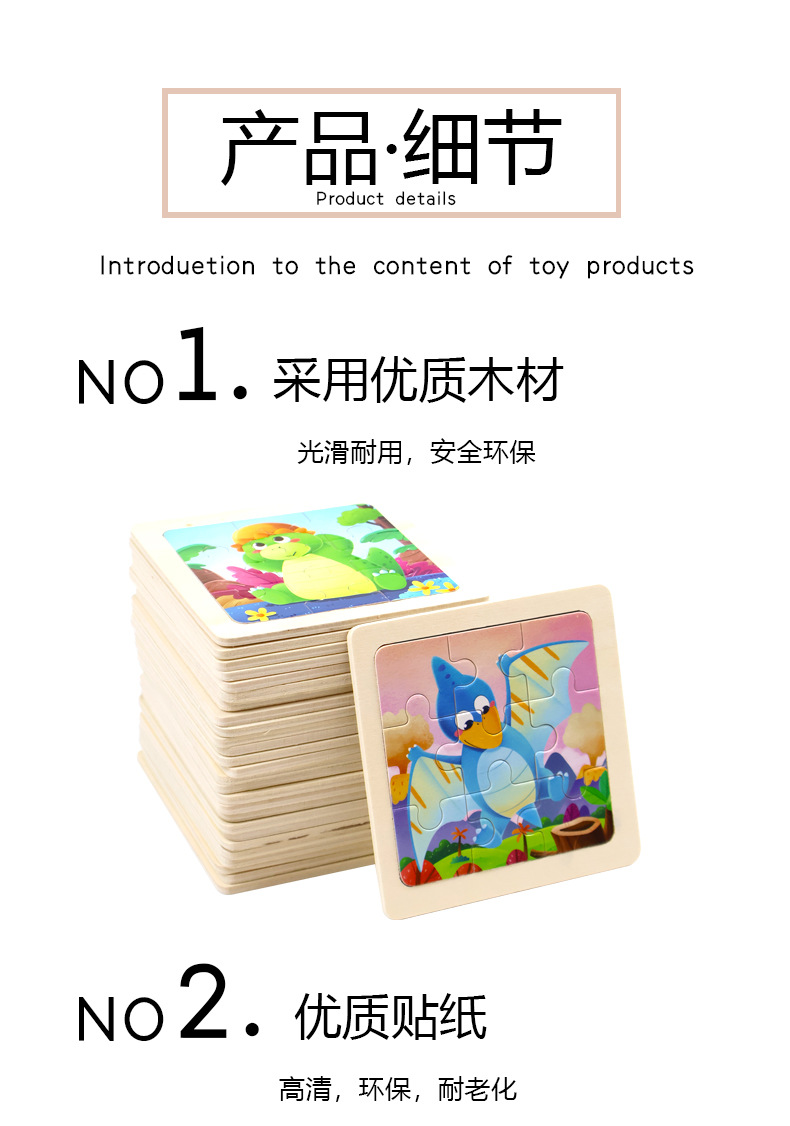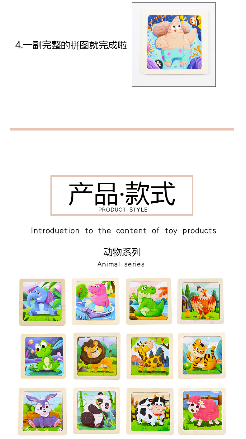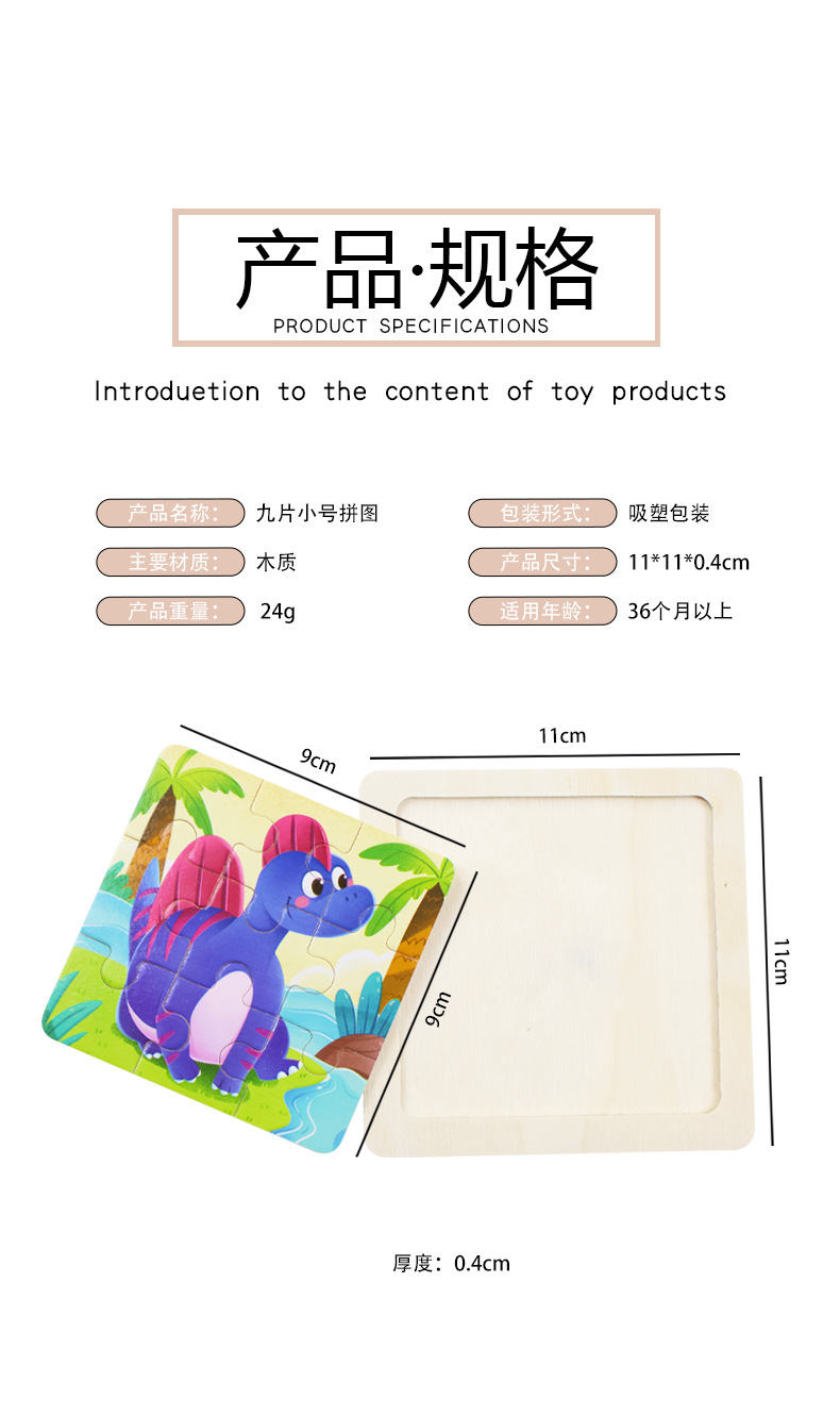 木制3-7岁 9片木制拼图 儿童动物拼图 益智早教卡通平面拼图玩具