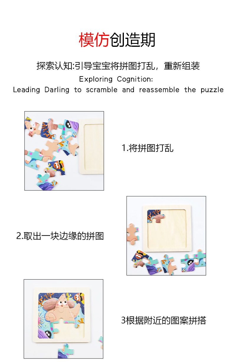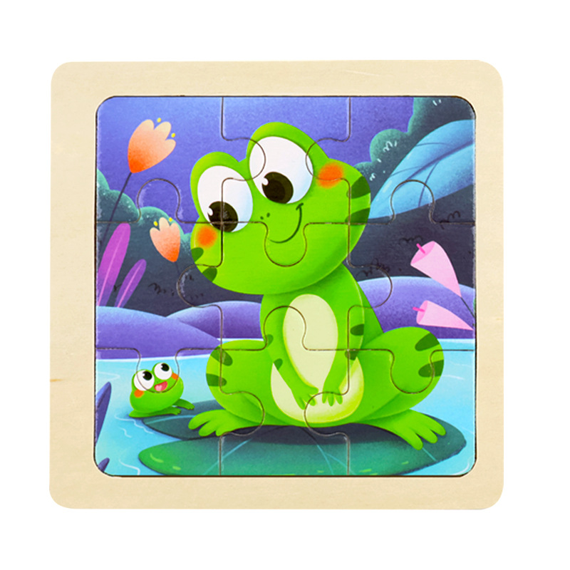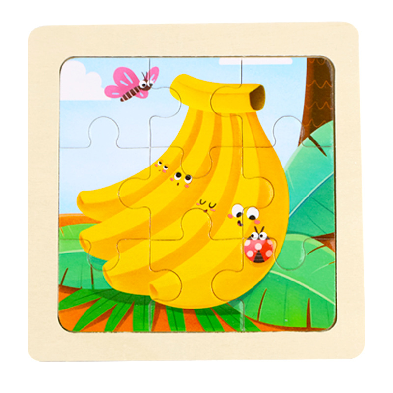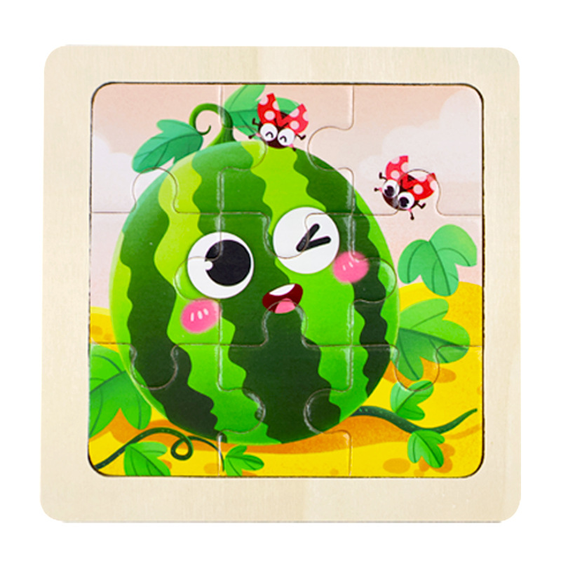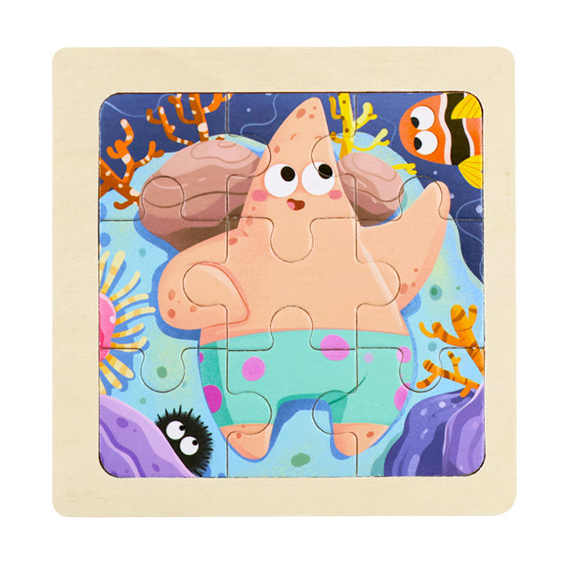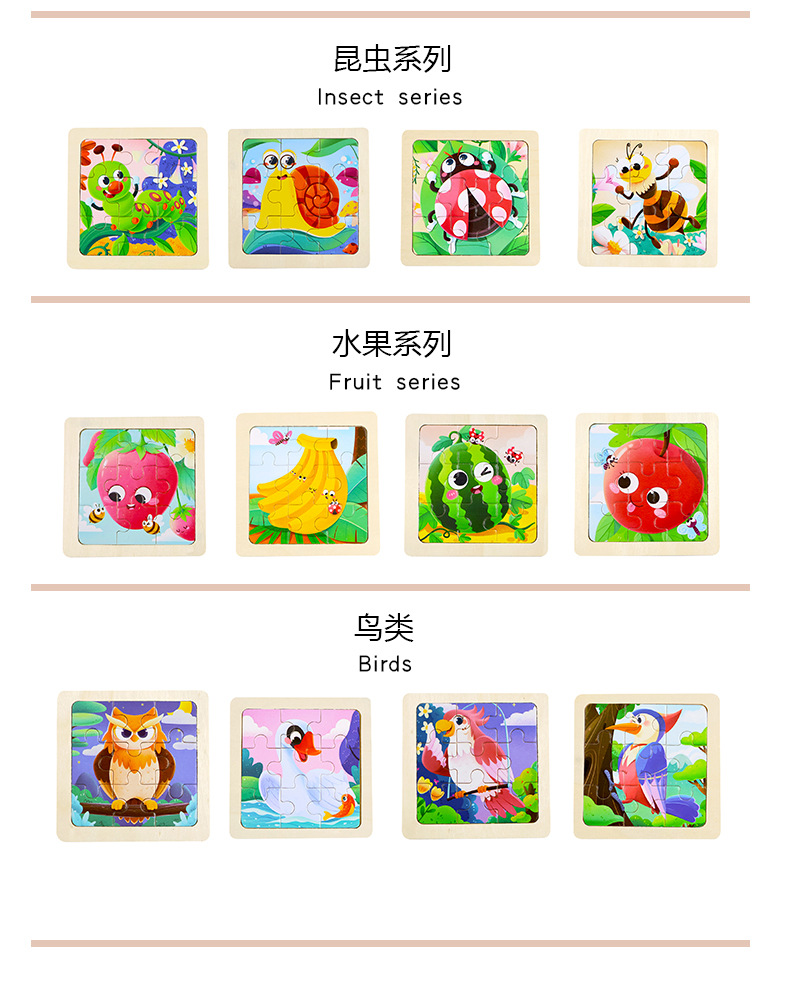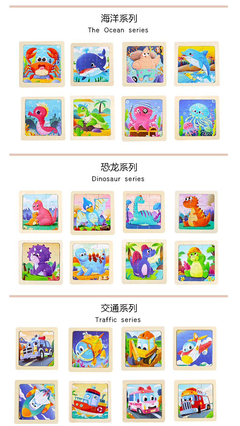 木制3-7岁 9片木制拼图 儿童动物拼图 益智早教卡通平面拼图玩具