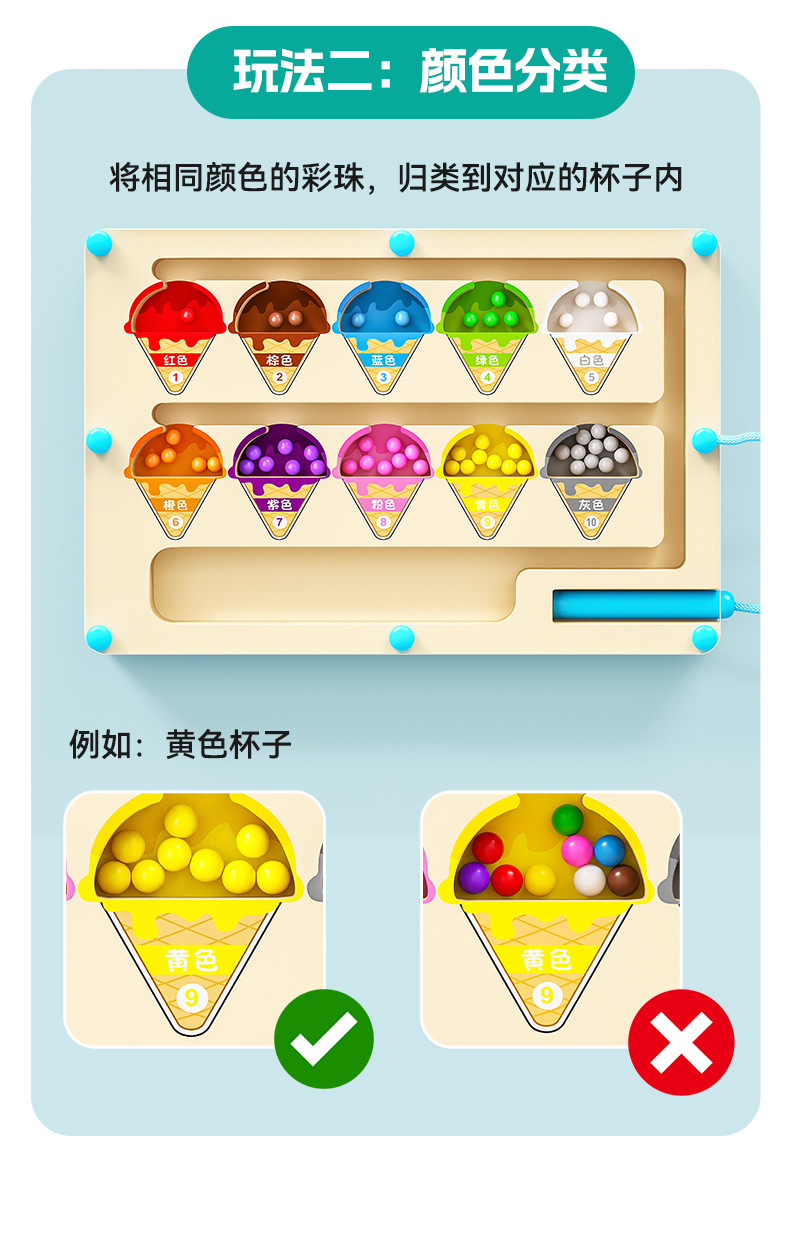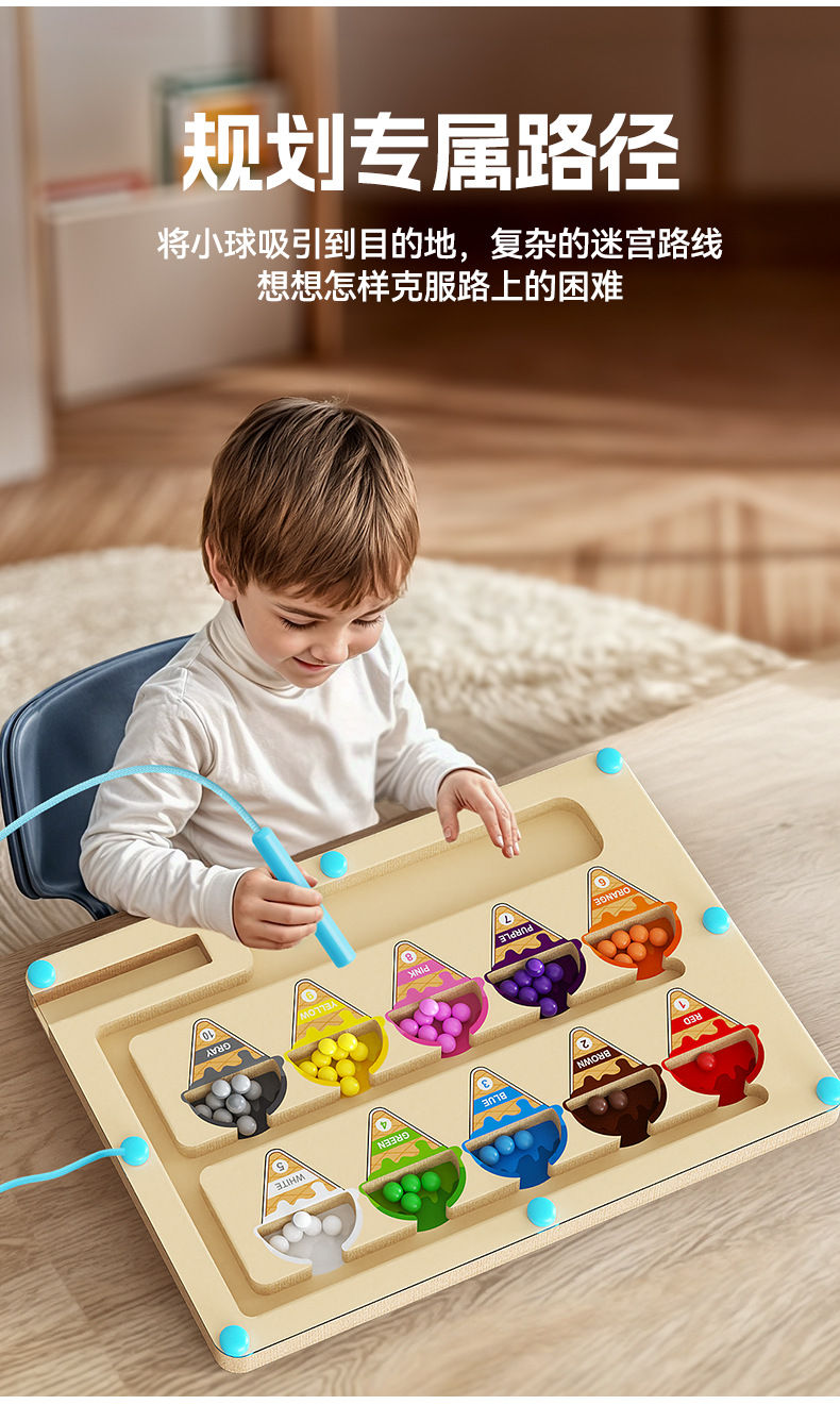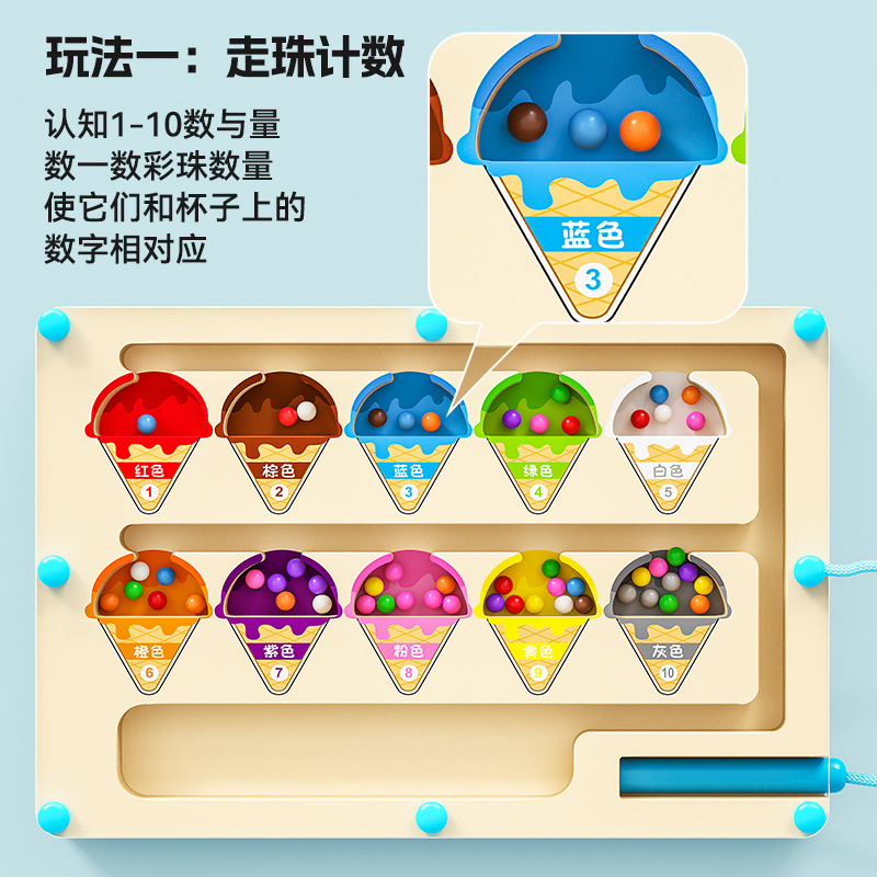 跨境儿童木质磁性计数运算颜色分类磁笔走珠移位游戏益智早教玩具