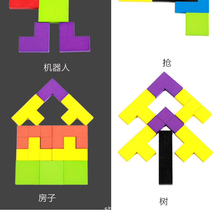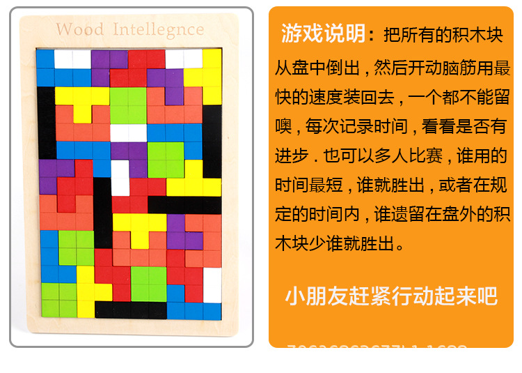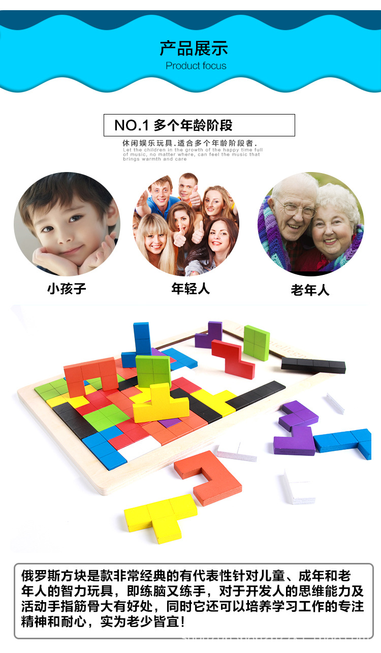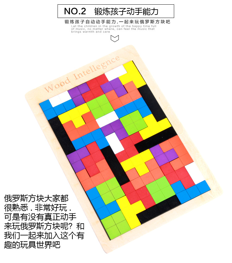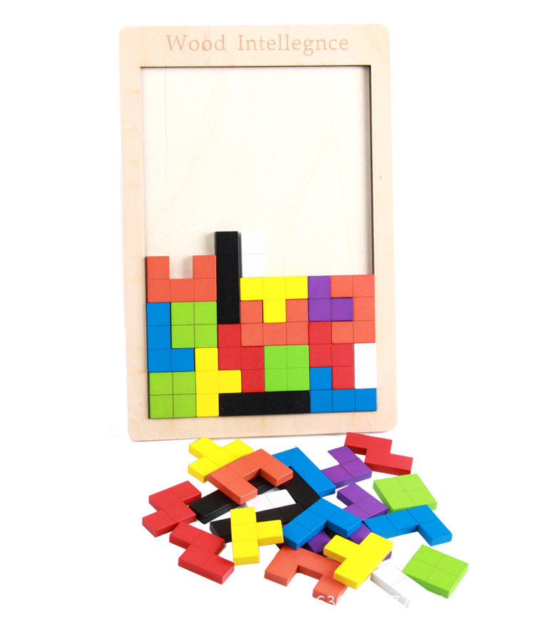 儿童益智俄罗斯方块 早教木制玩具 宝宝几何拼图拼板积木趣味玩具