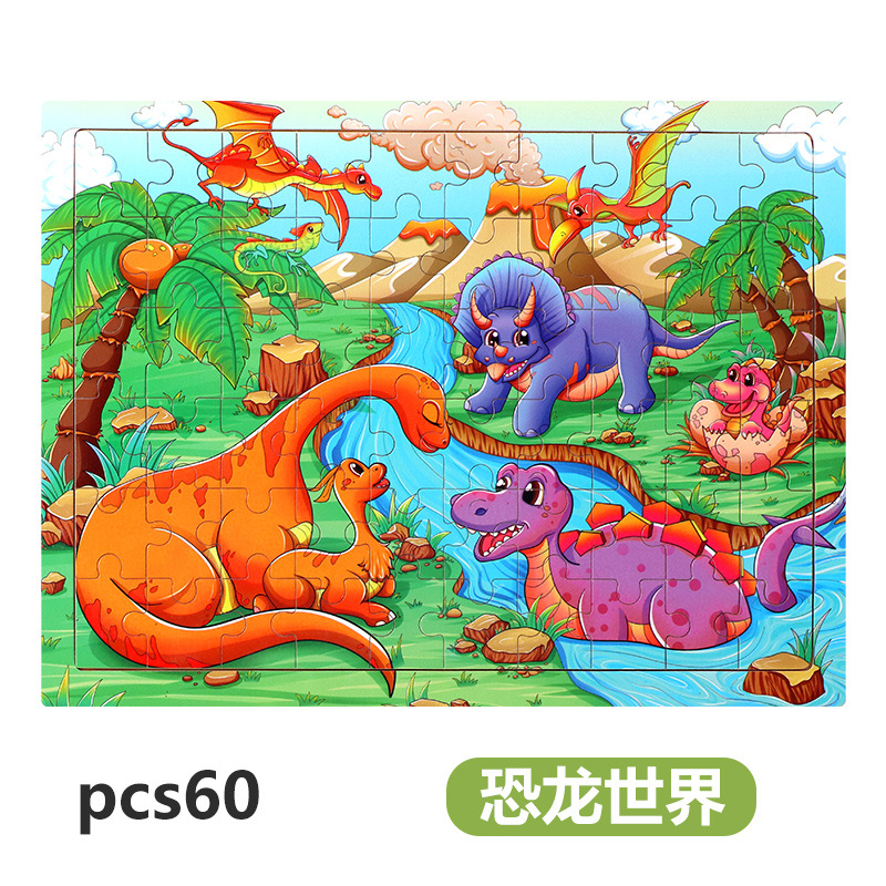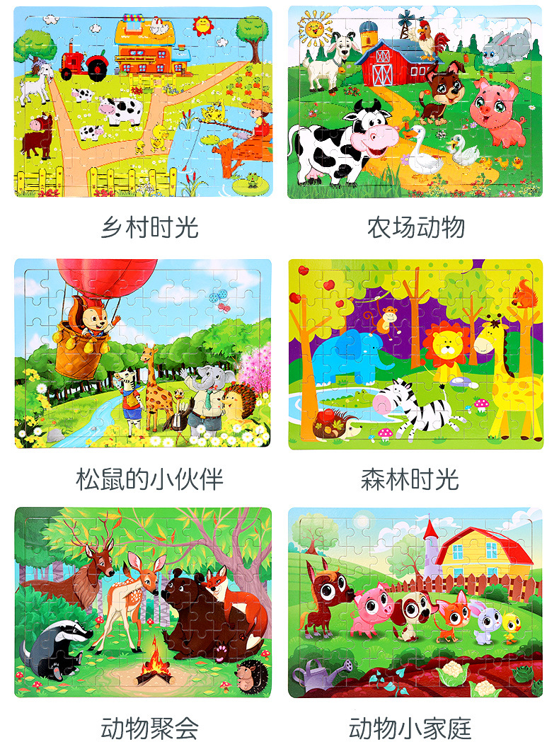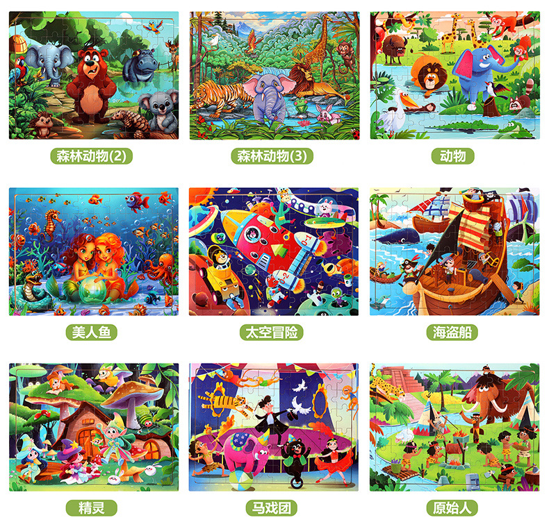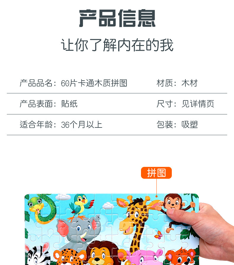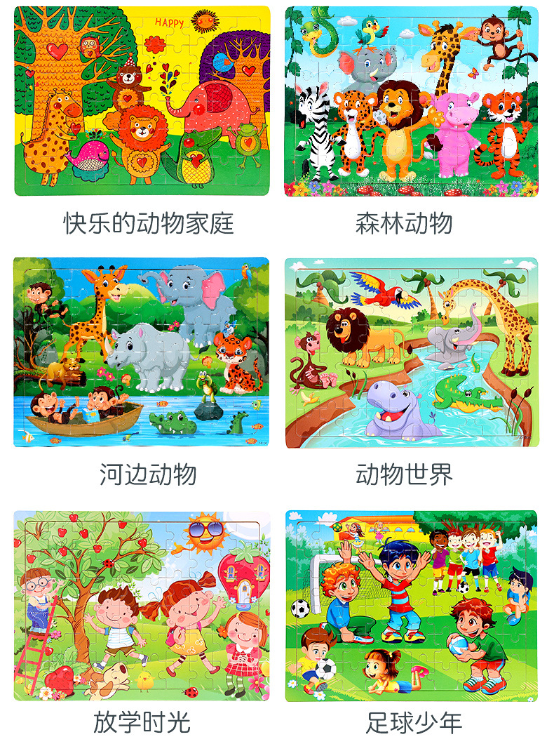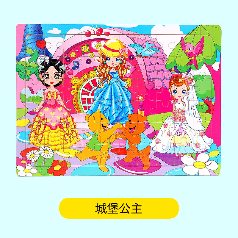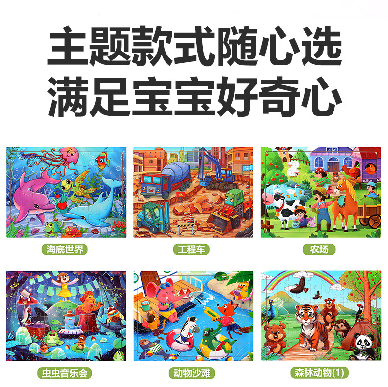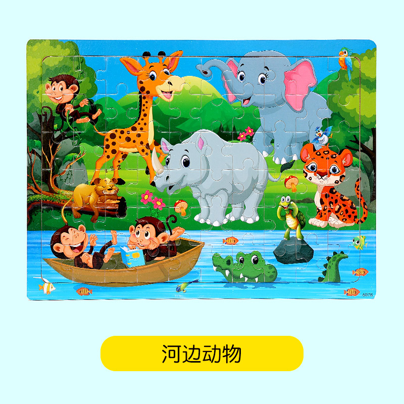 木制60片拼图儿童动物卡通童话故事平面拼图宝宝早教益智积木玩具