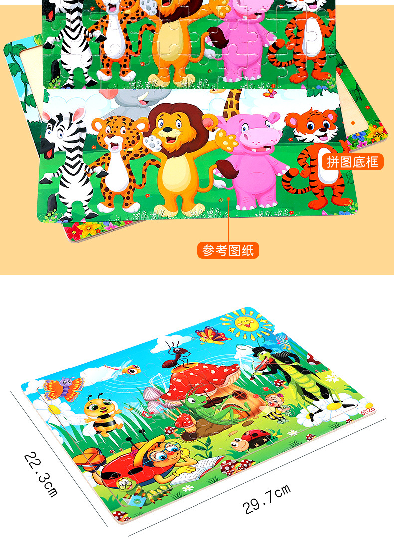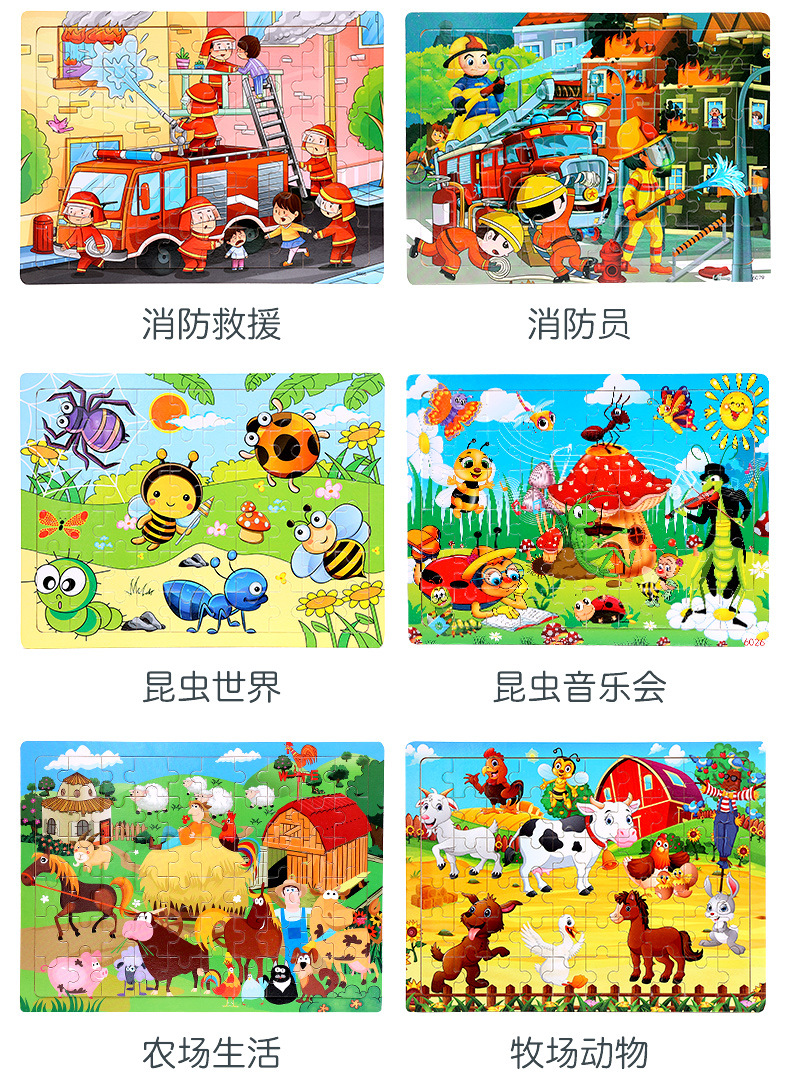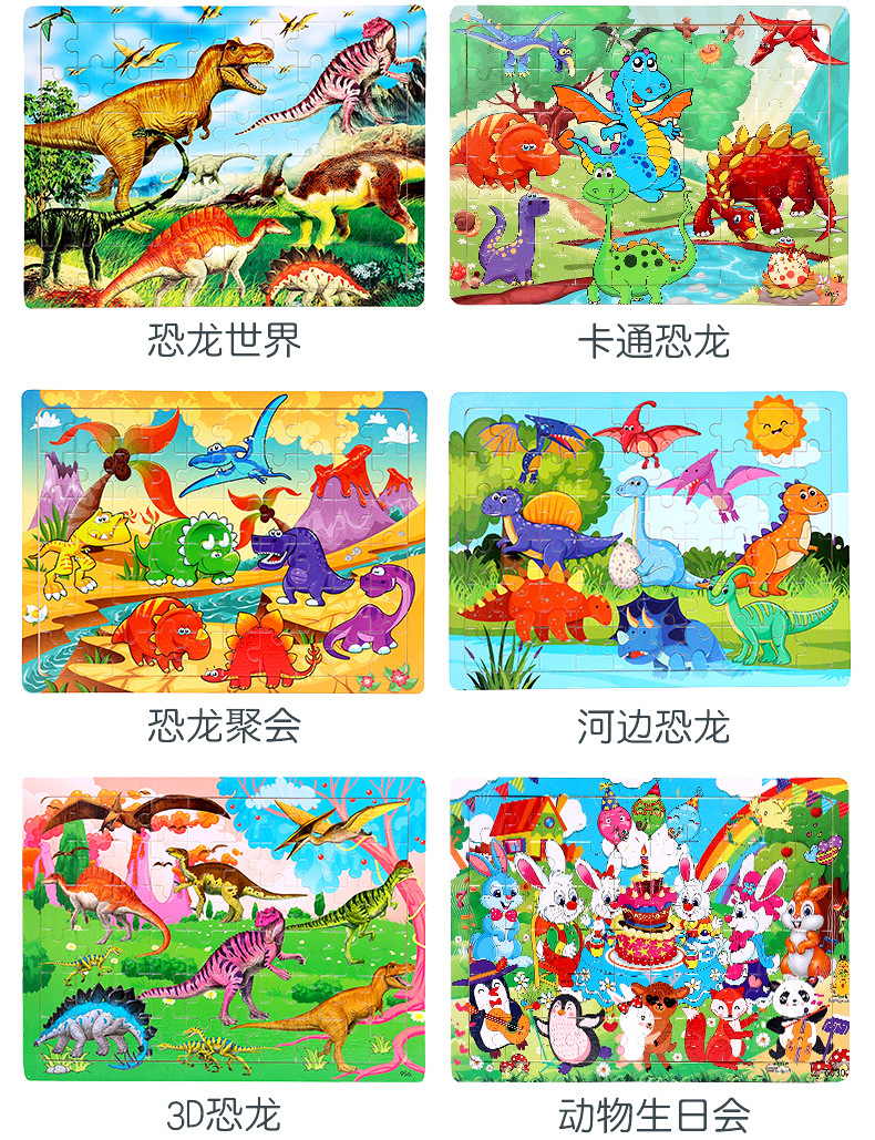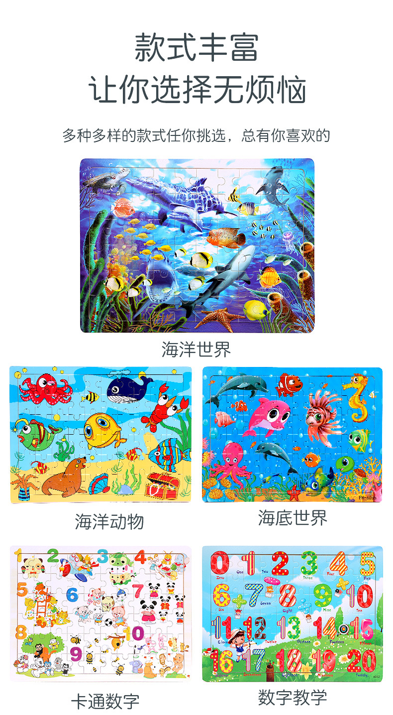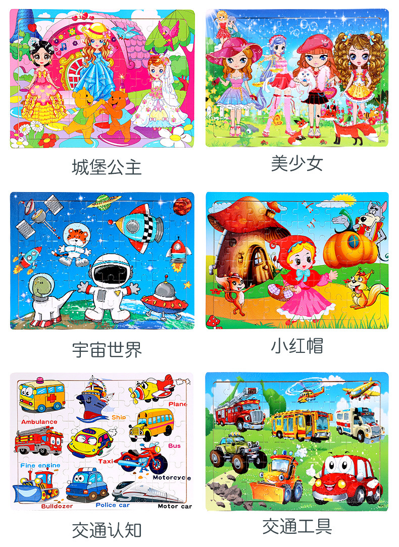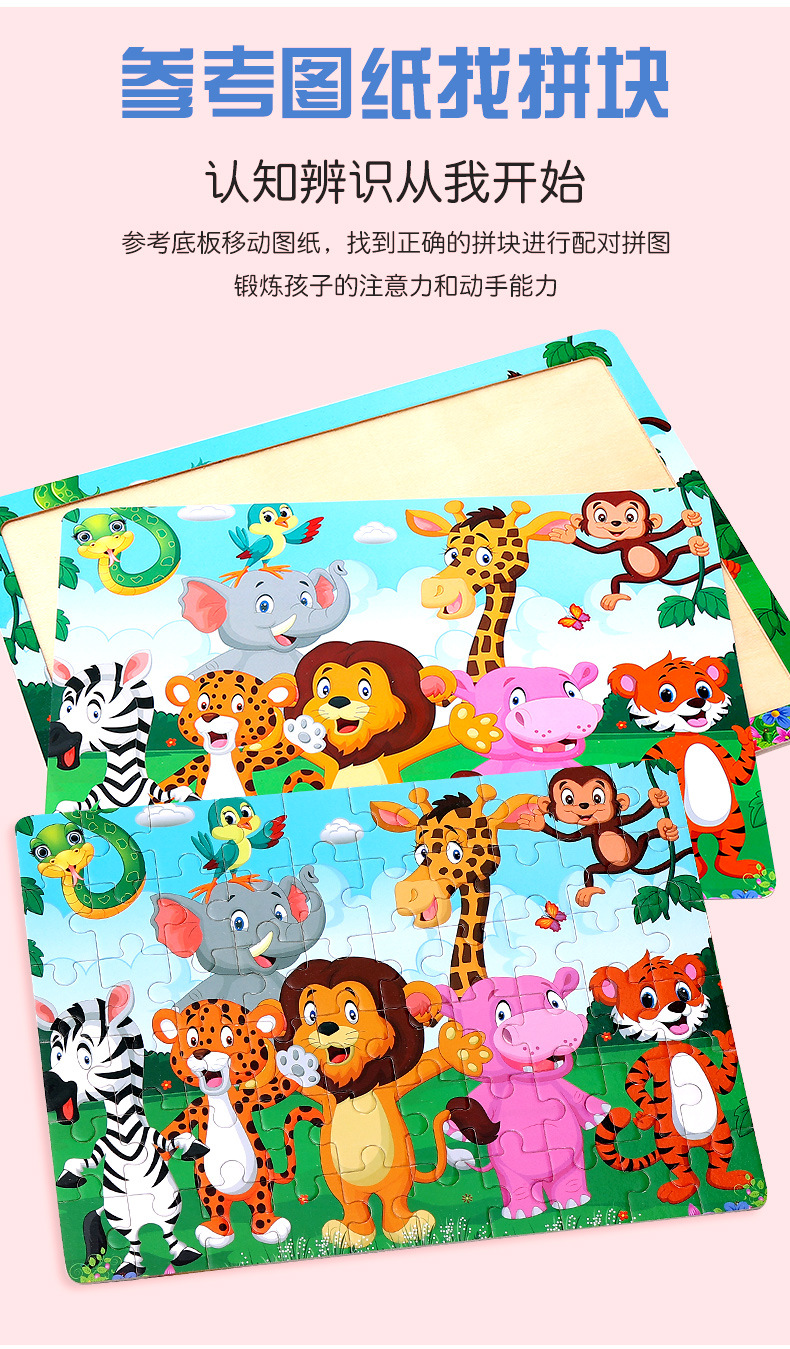 木制60片拼图儿童动物卡通童话故事平面拼图宝宝早教益智积木玩具