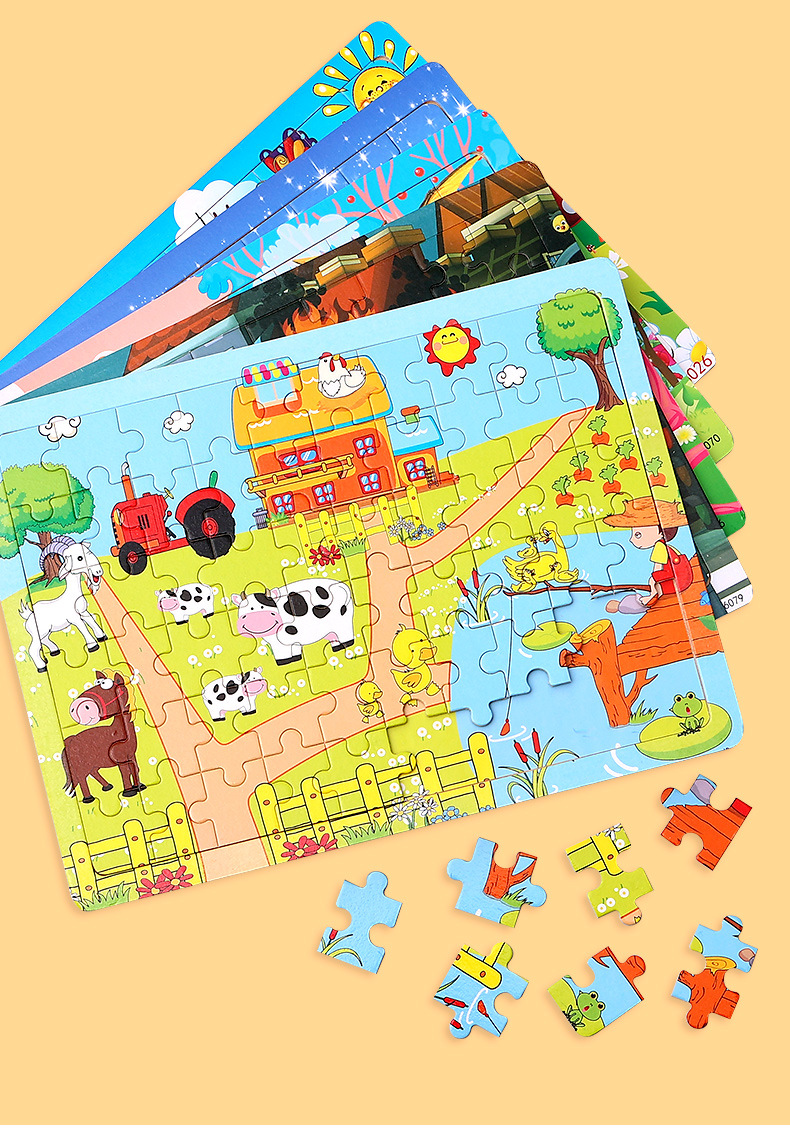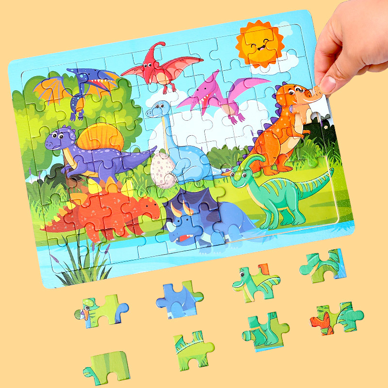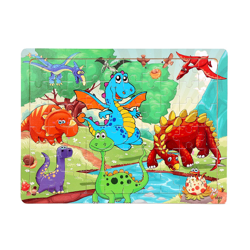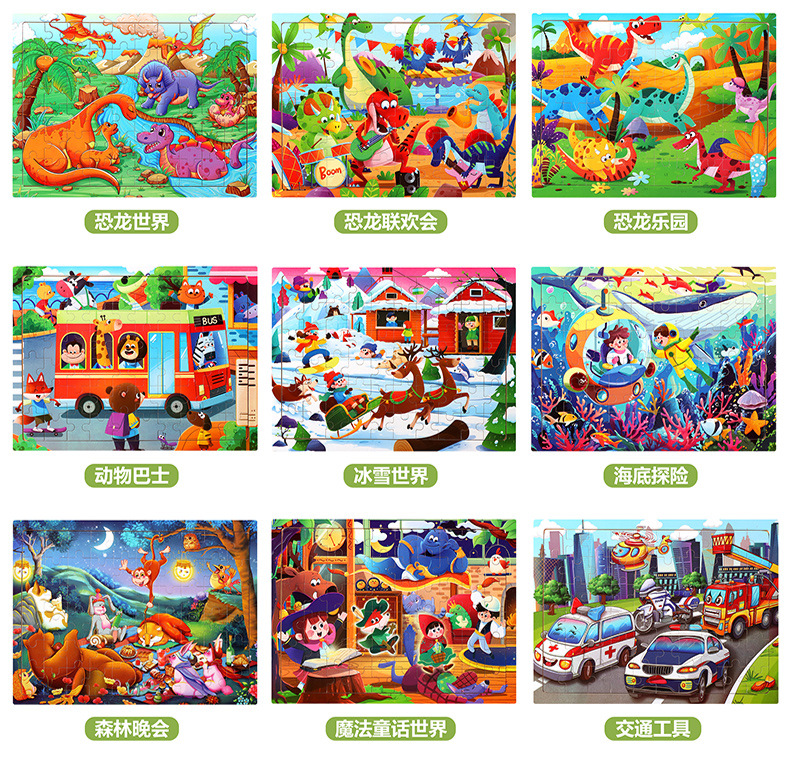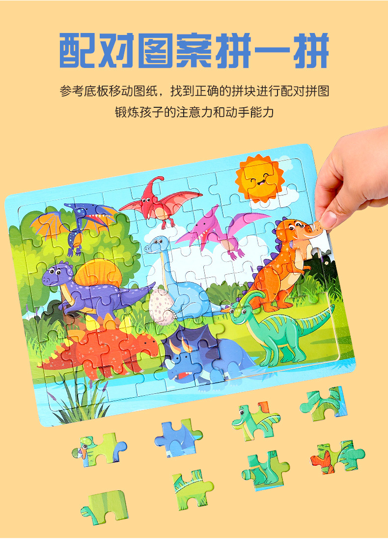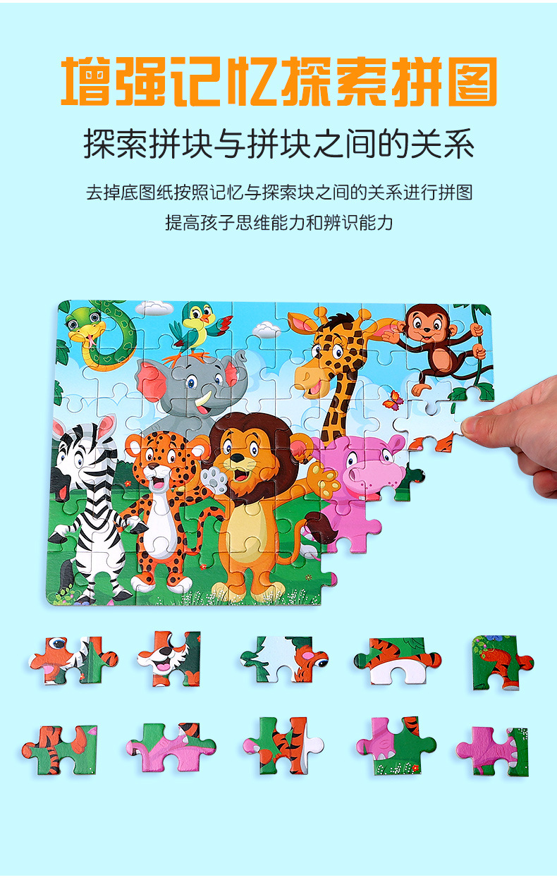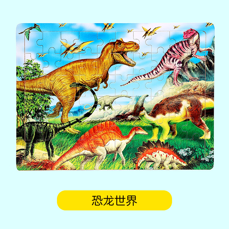 木制60片拼图儿童动物卡通童话故事平面拼图宝宝早教益智积木玩具