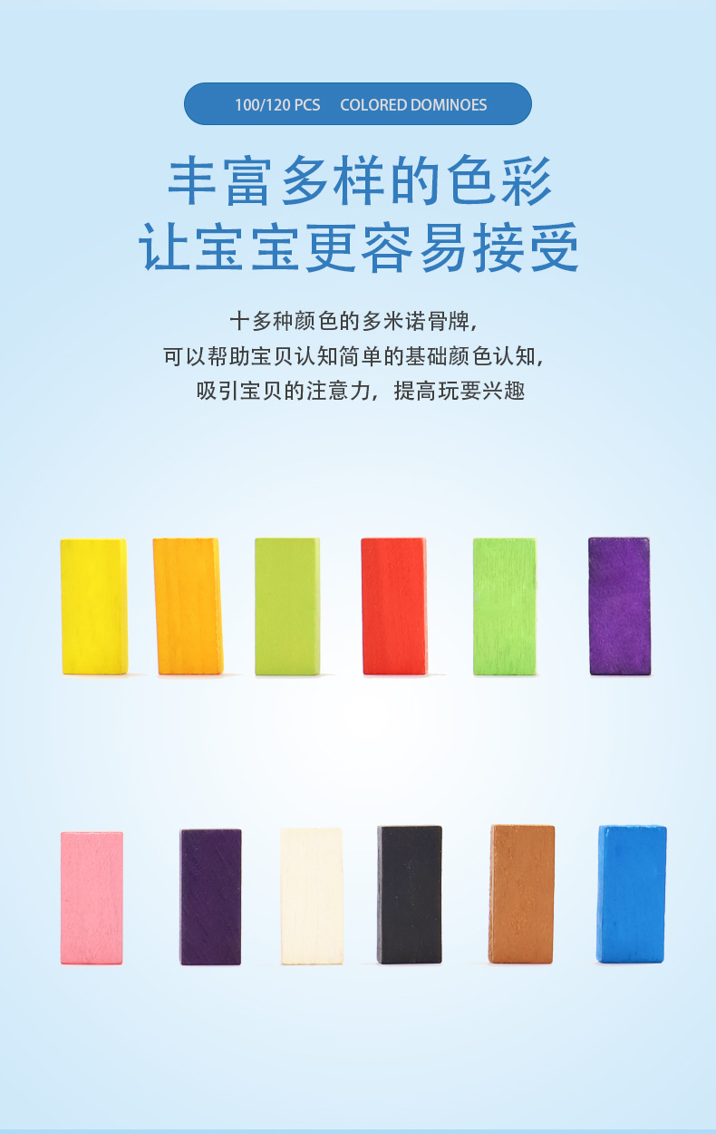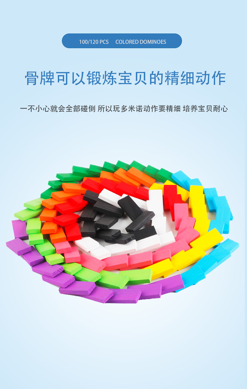 木制儿童120片积木多米诺玩具锻炼思考搭建积木长条百变叠叠高玩