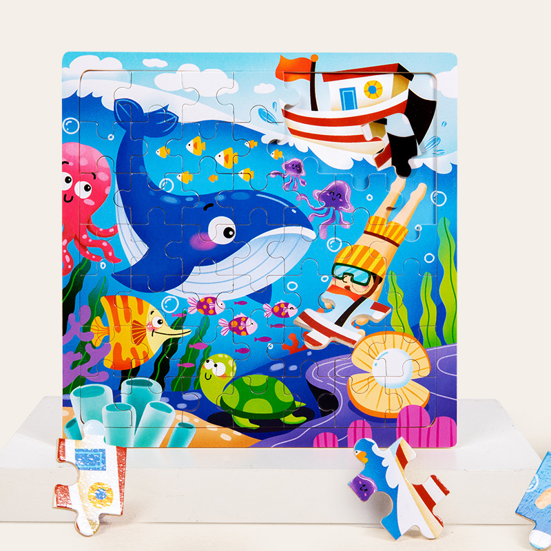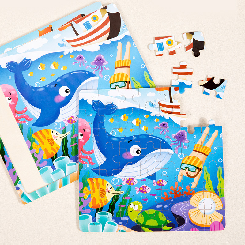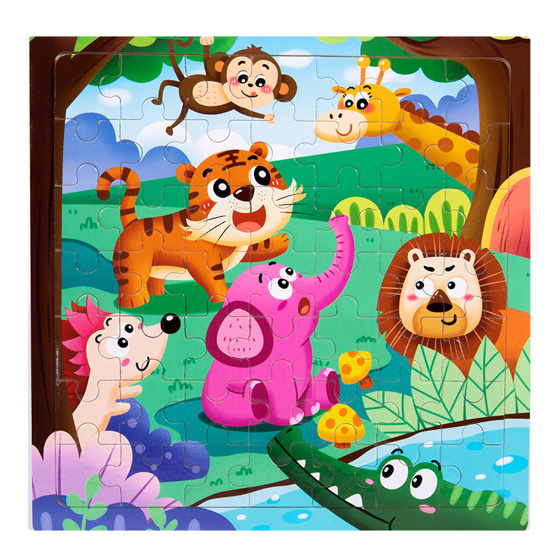 木制49片拼图 儿童动物恐龙卡通木质平面拼图 宝宝早教益智力玩具
