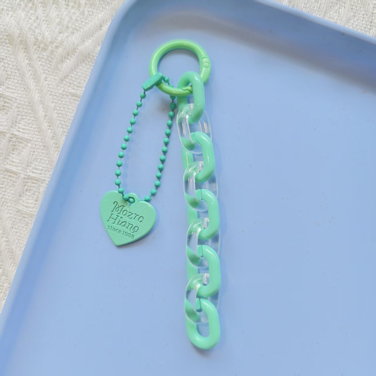 新款手工彩色亚克力爱心钥匙链条小香风手机壳挂件包包钥匙扣挂饰