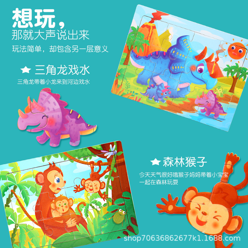 wooden 12-piece puzzle children‘s animal dinosaur cartoon wooded flat puzzle baby early education educational toys