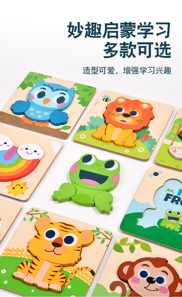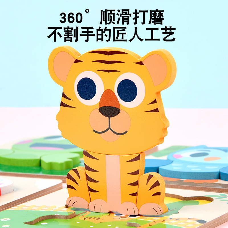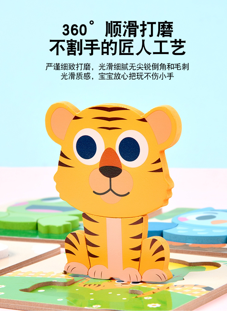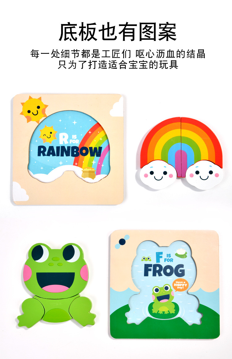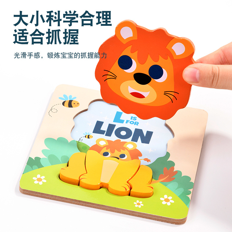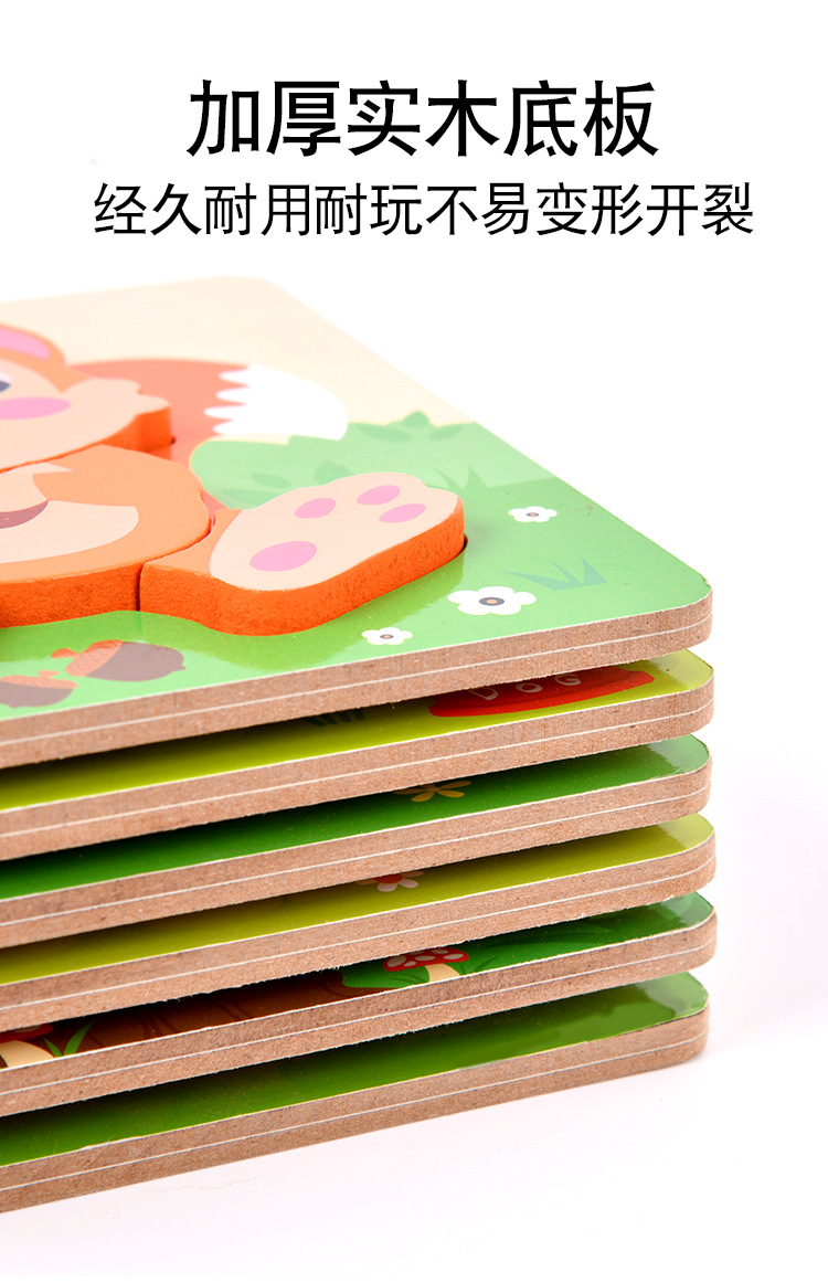 木质早教认知儿童益智玩具积木制动物交通形状配对3d立体拼图批发