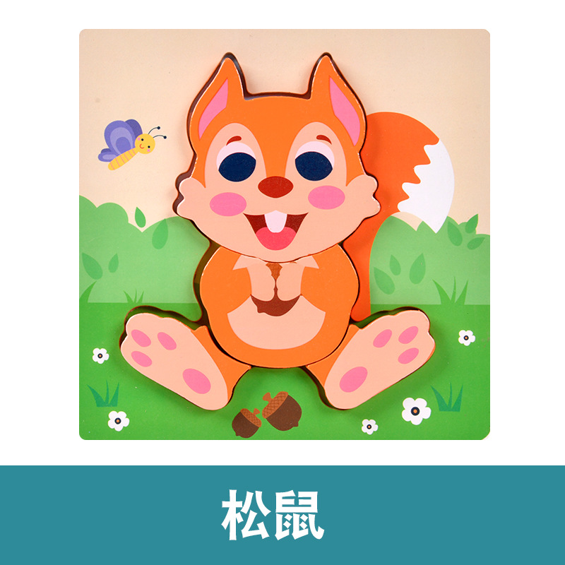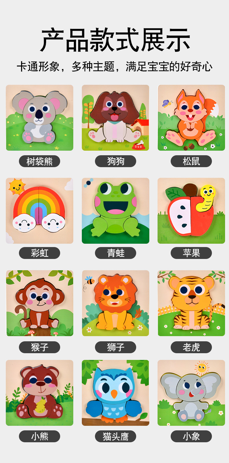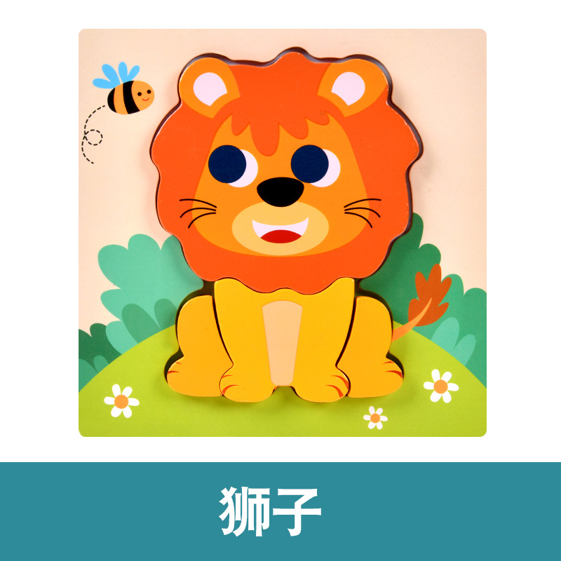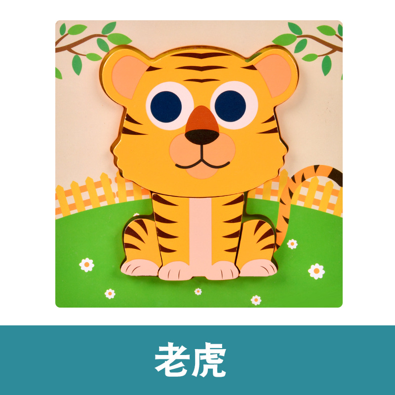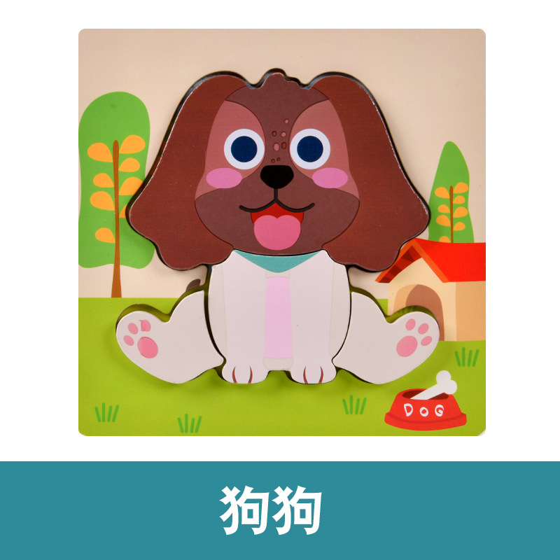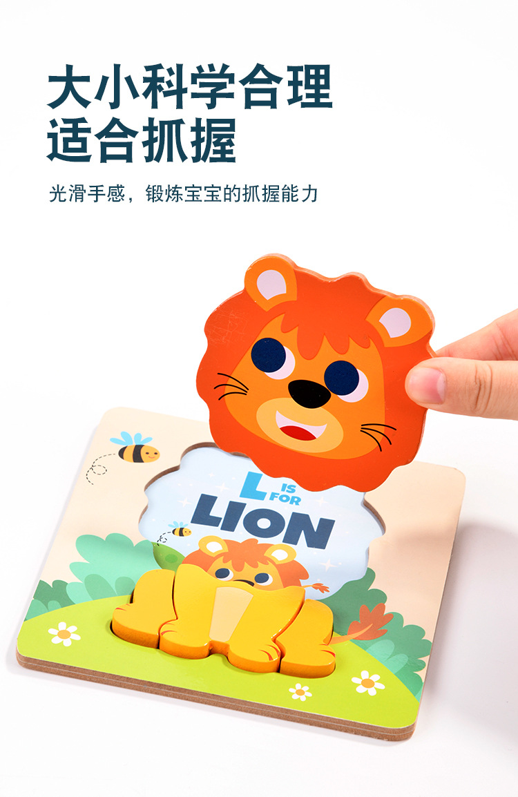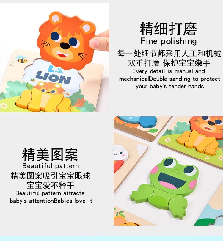 木质早教认知儿童益智玩具积木制动物交通形状配对3d立体拼图批发