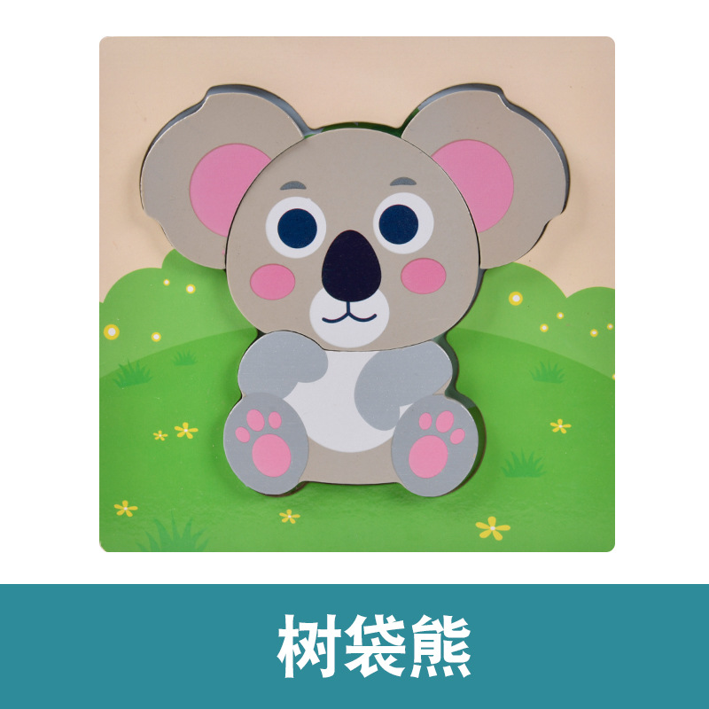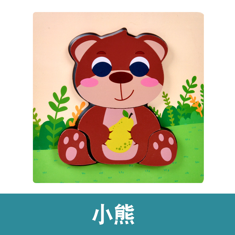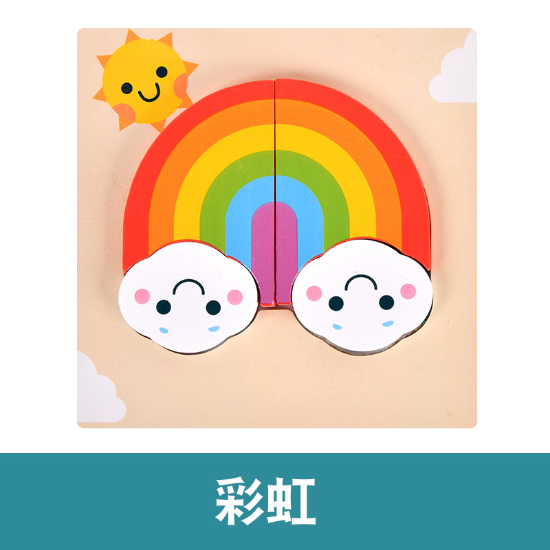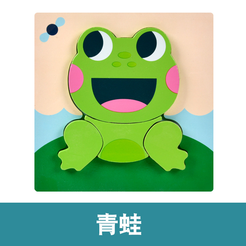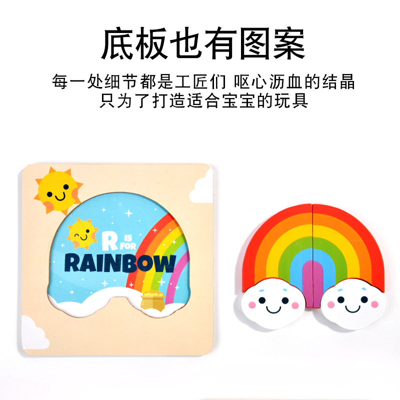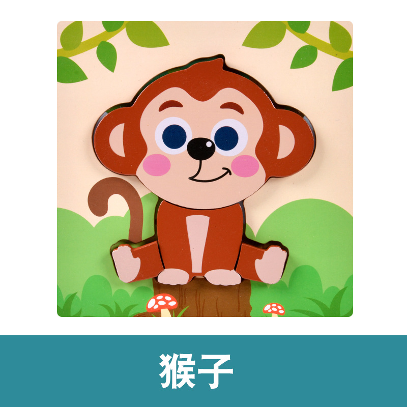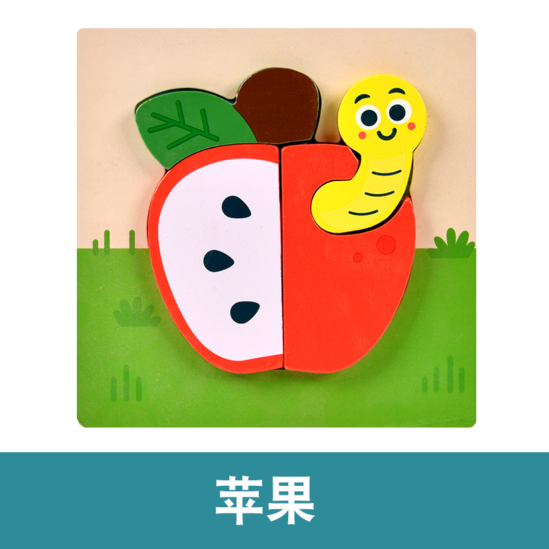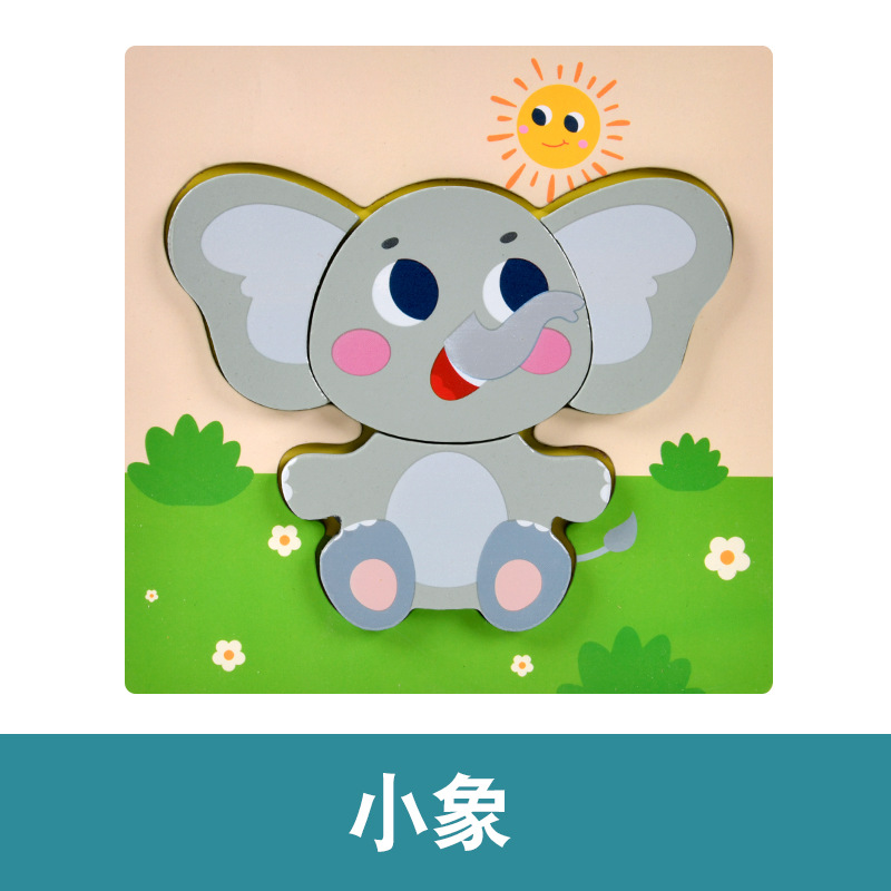 木质早教认知儿童益智玩具积木制动物交通形状配对3d立体拼图批发