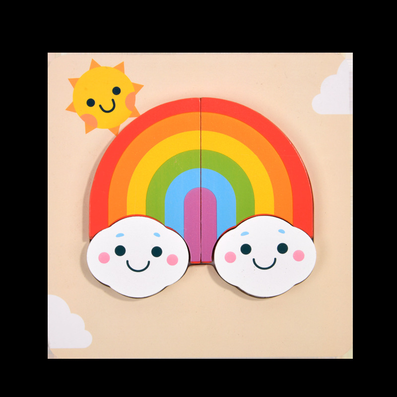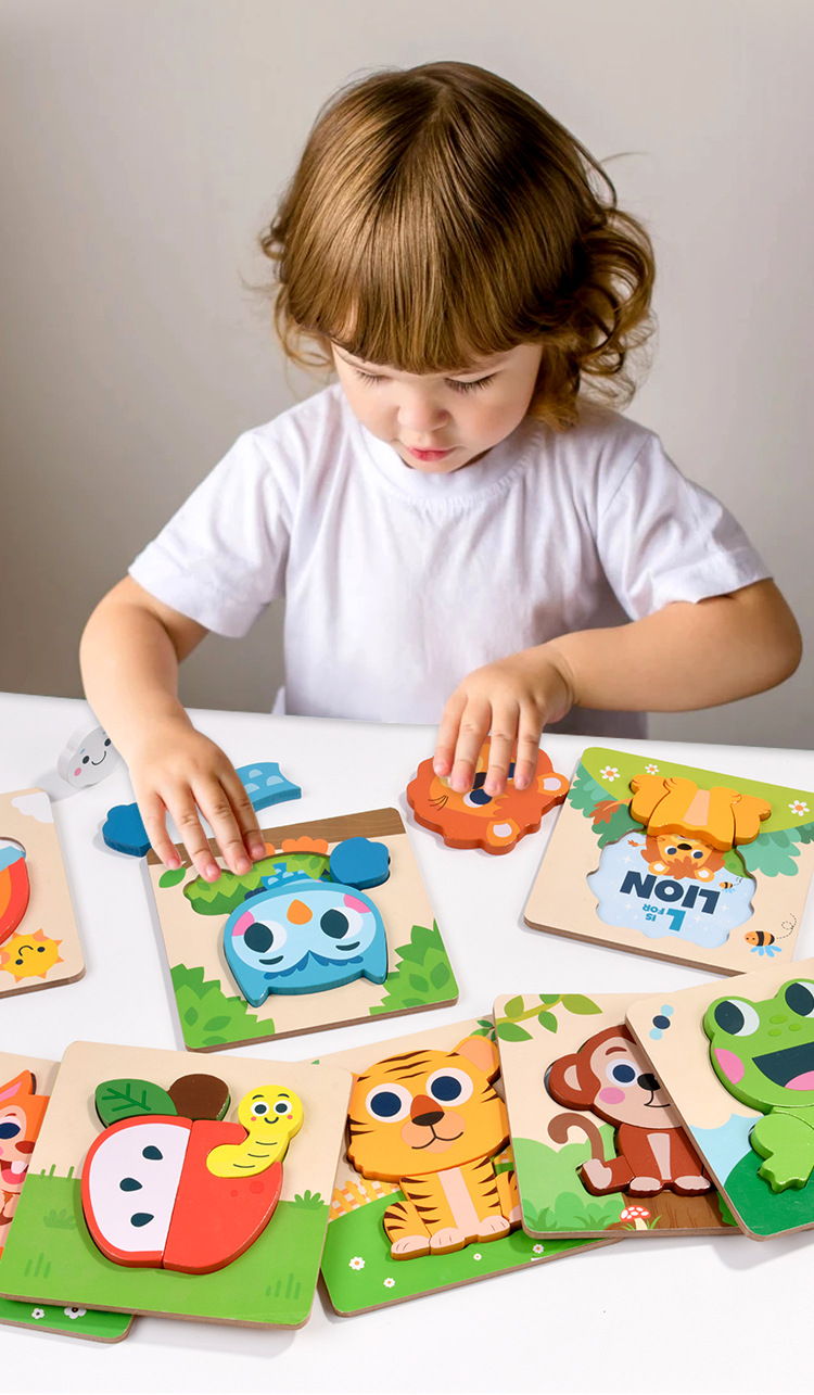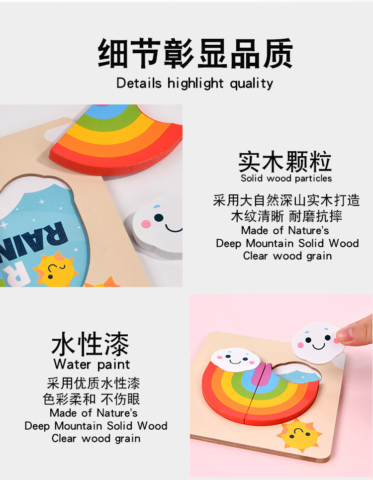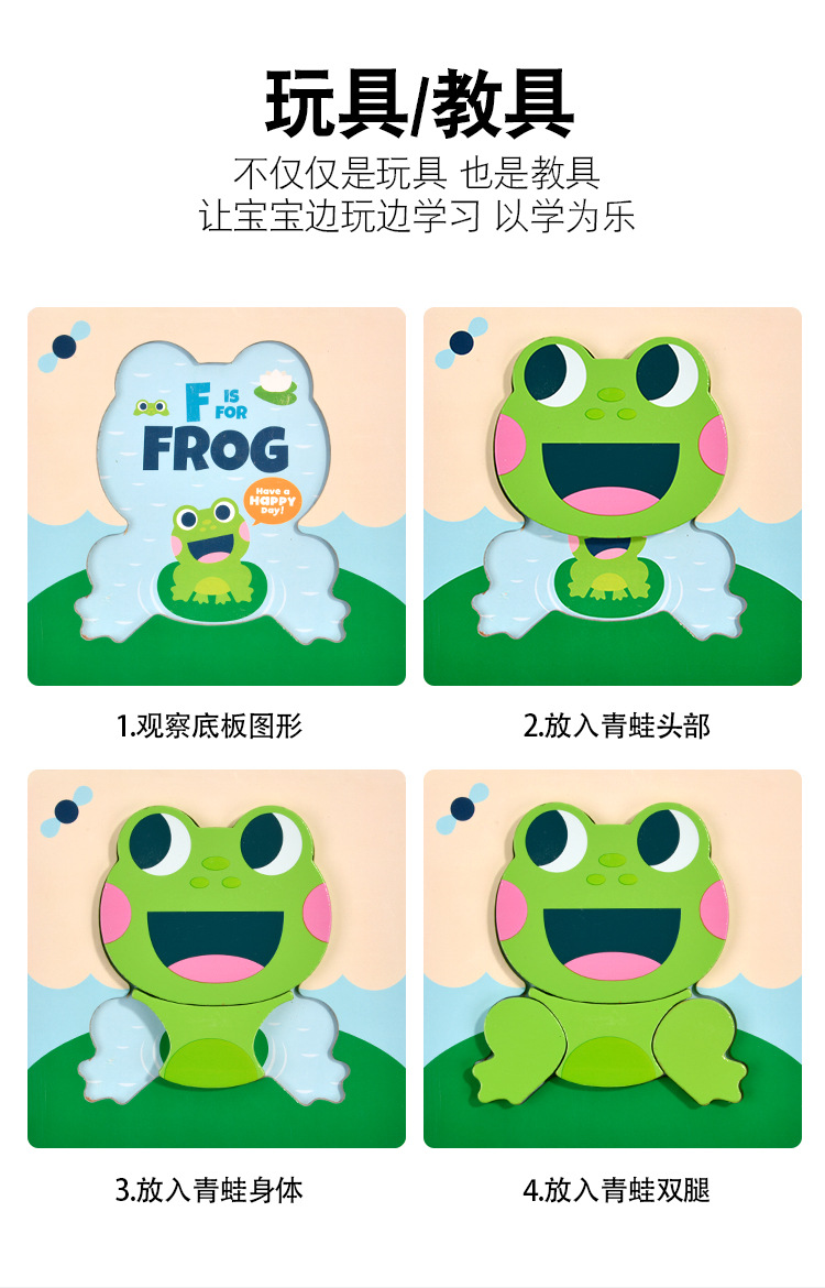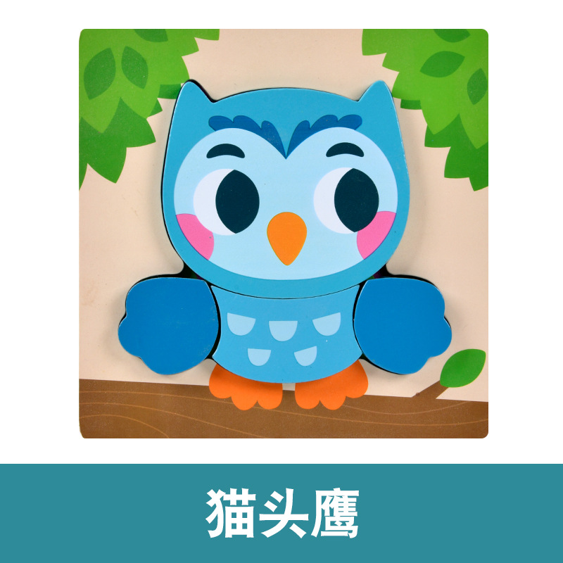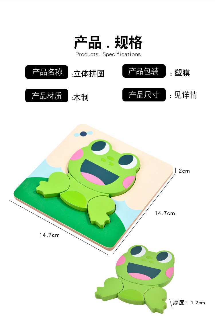 木质早教认知儿童益智玩具积木制动物交通形状配对3d立体拼图批发