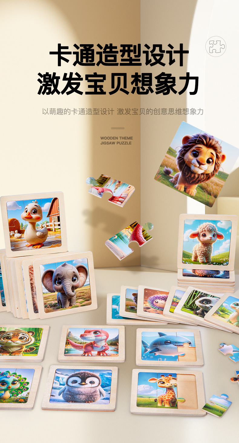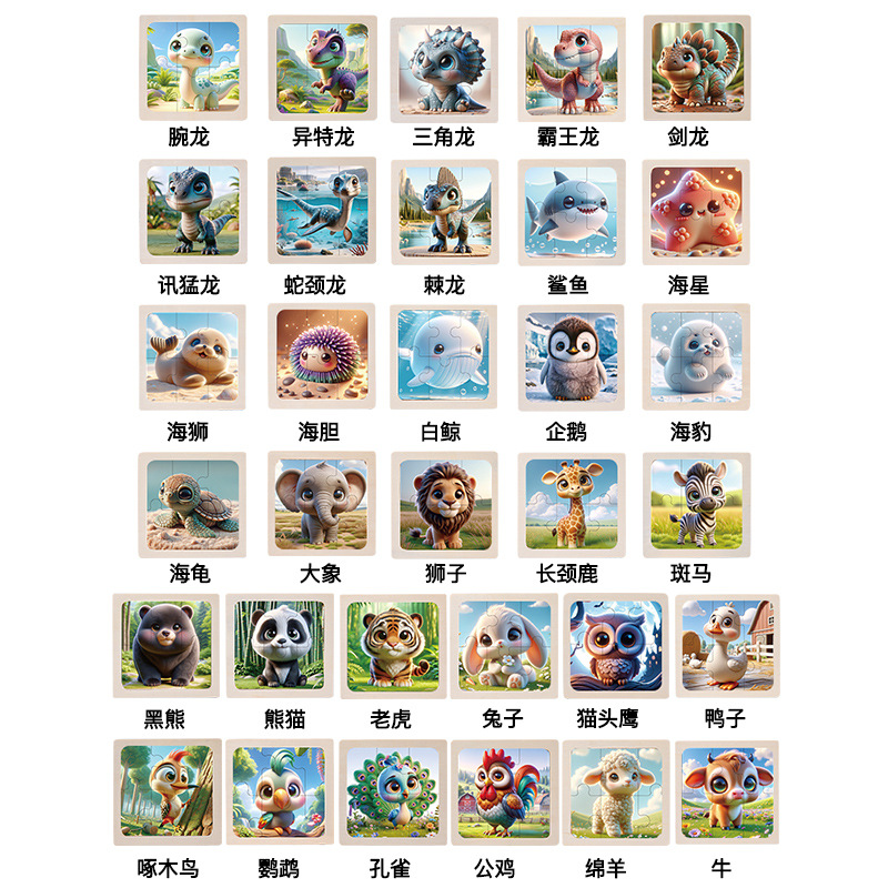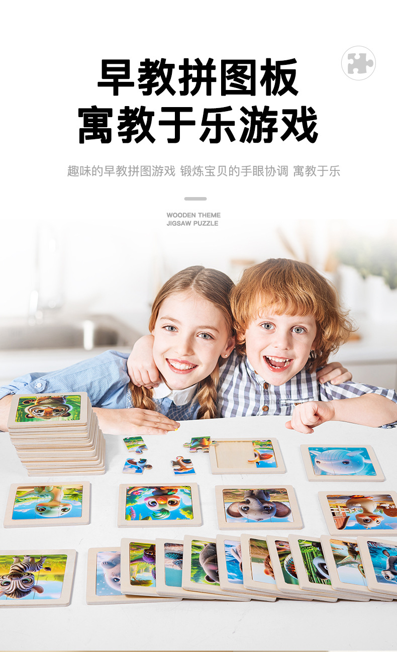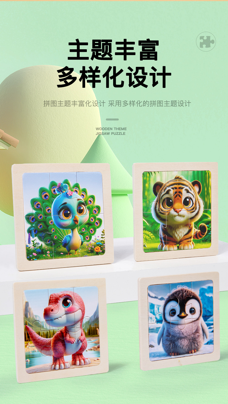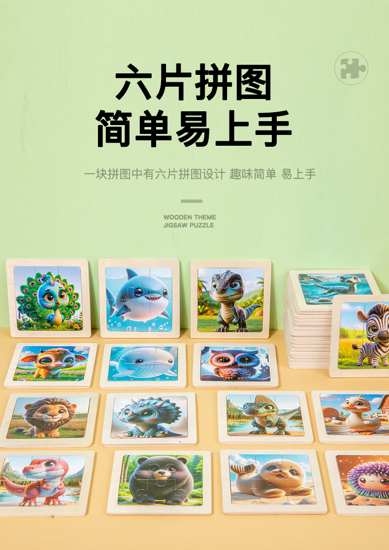 木制6片拼图 儿童动物恐龙卡通木质平面拼图 宝宝早教益智力玩具