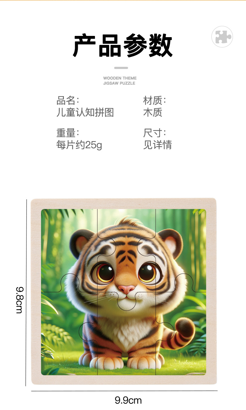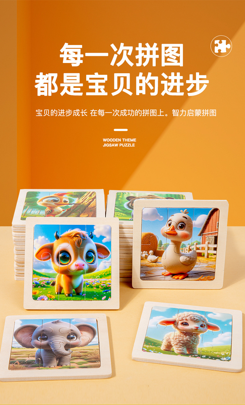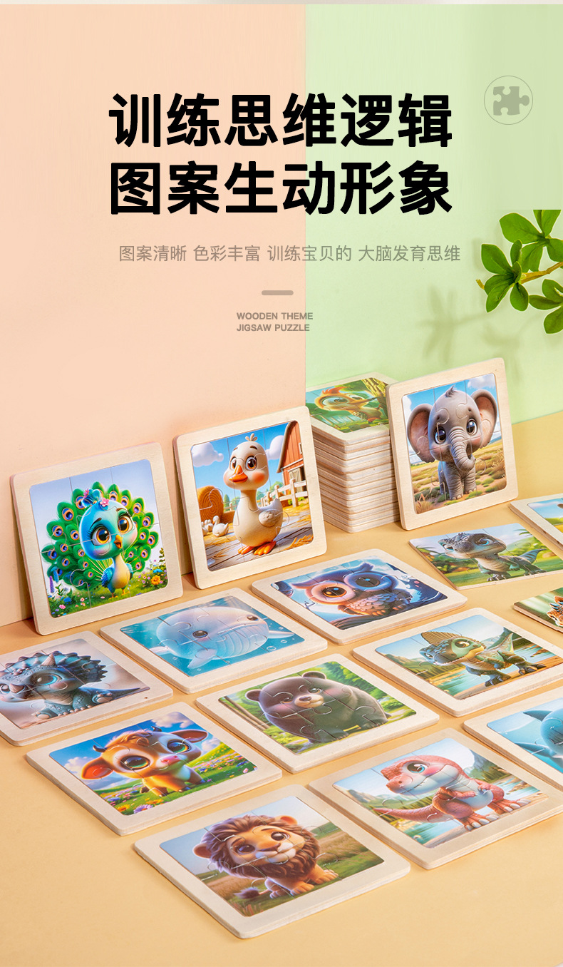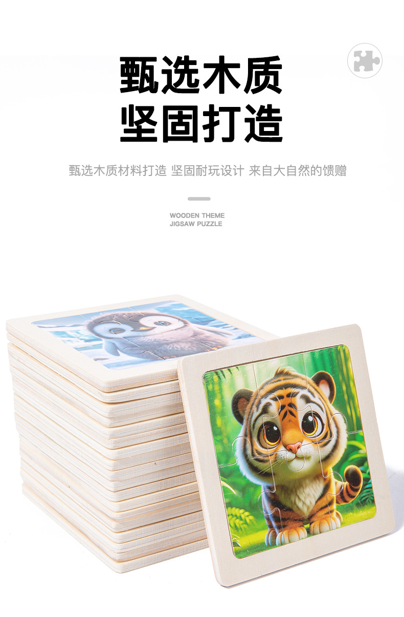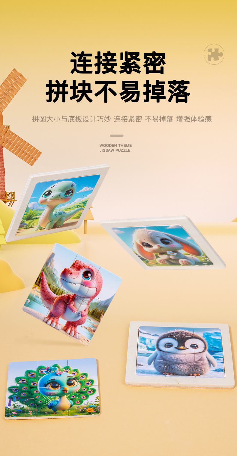 木制6片拼图 儿童动物恐龙卡通木质平面拼图 宝宝早教益智力玩具