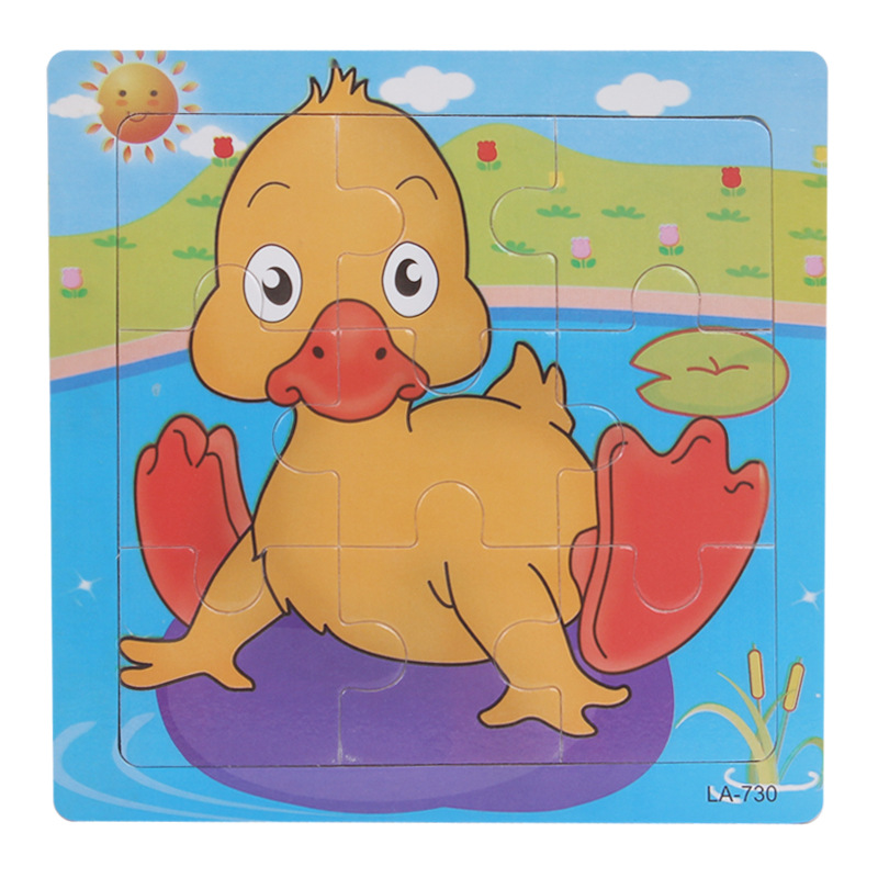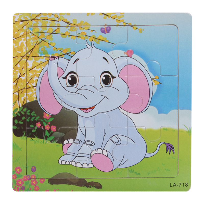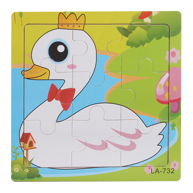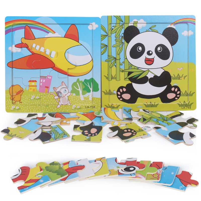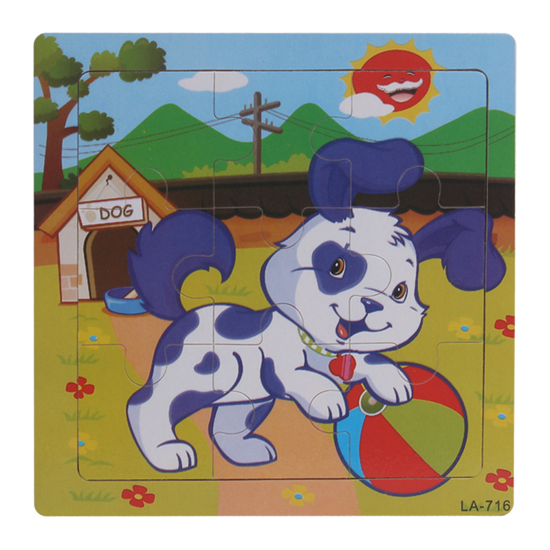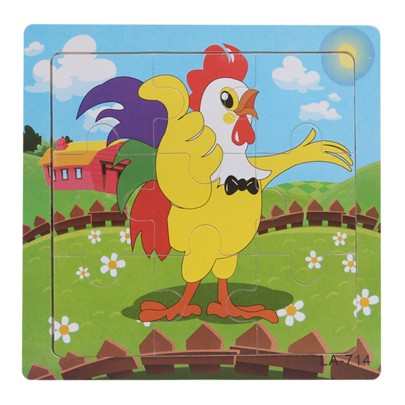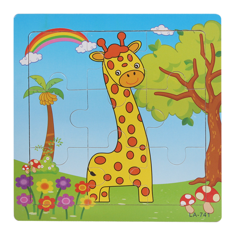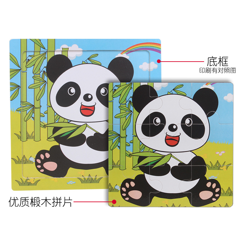 木制9片拼图儿童卡通动物带底图平面拼图 宝宝早教益智力积木玩具
