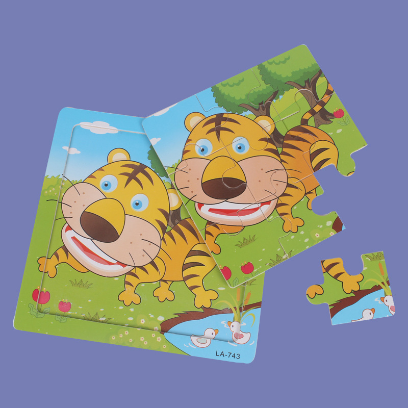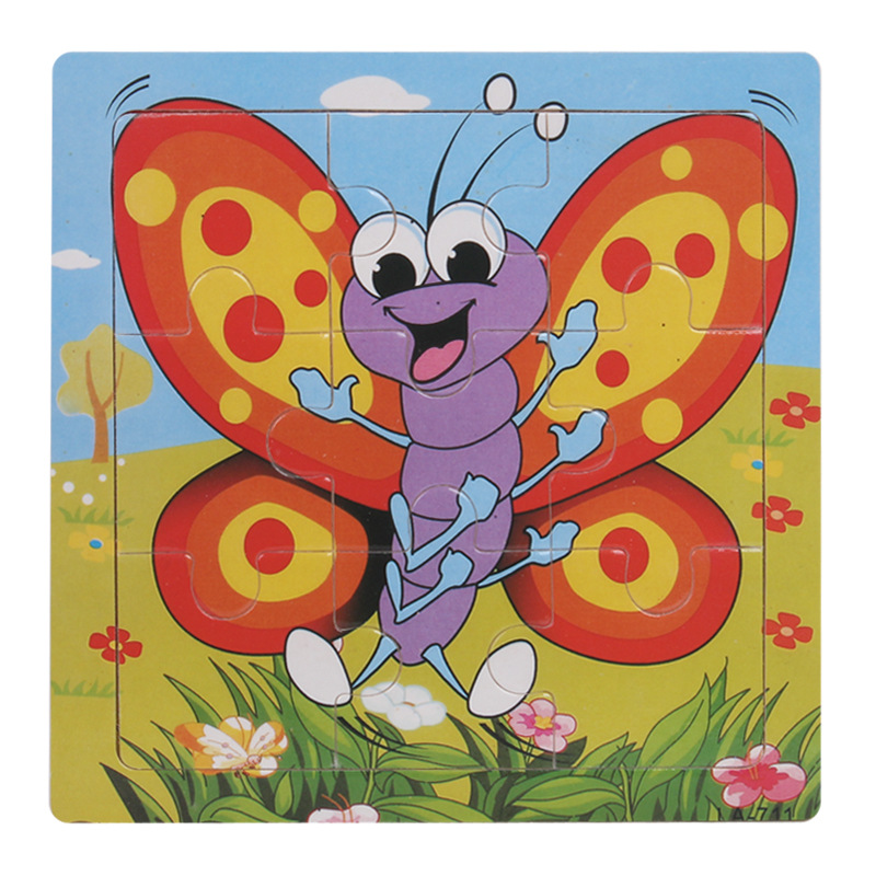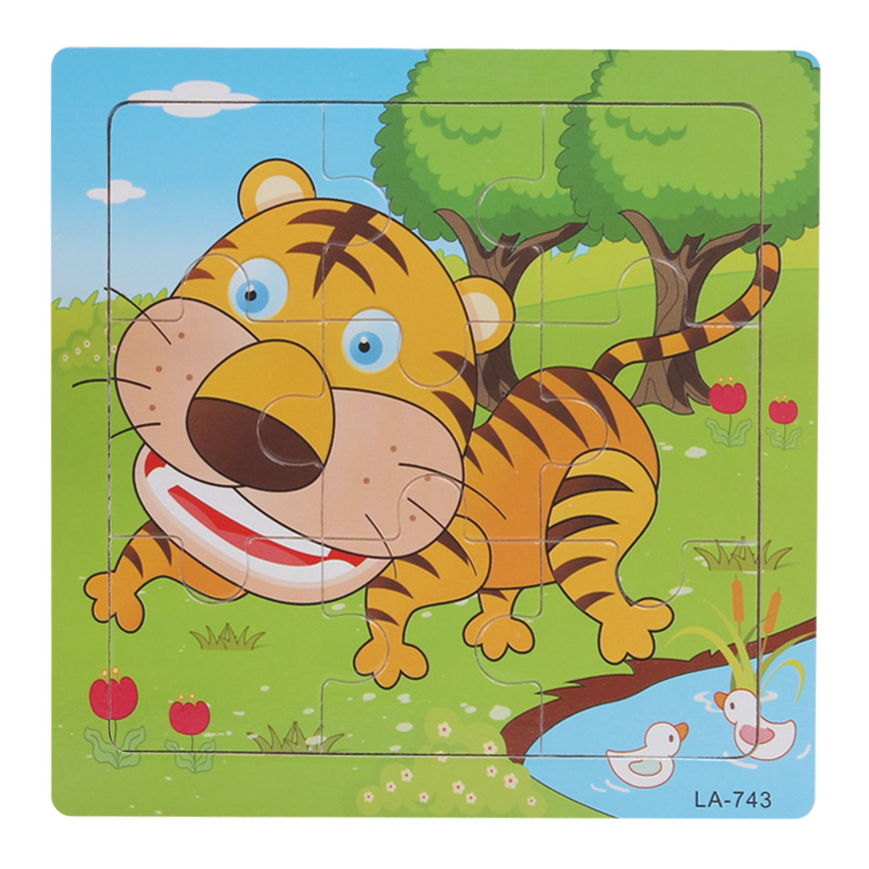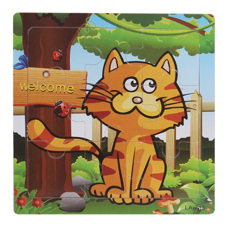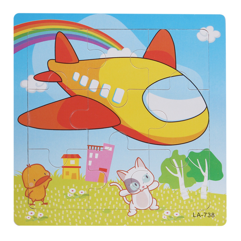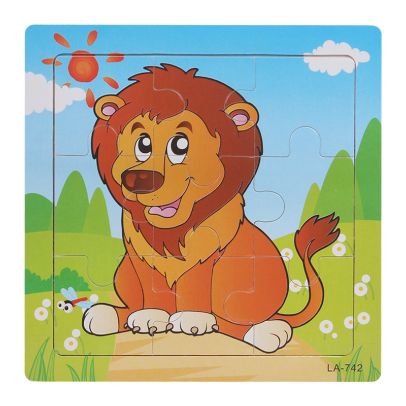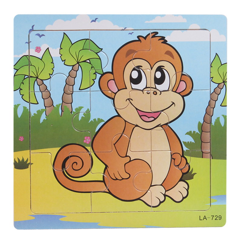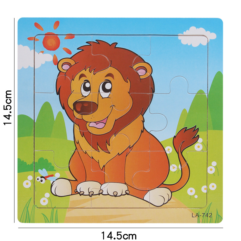 木制9片拼图儿童卡通动物带底图平面拼图 宝宝早教益智力积木玩具