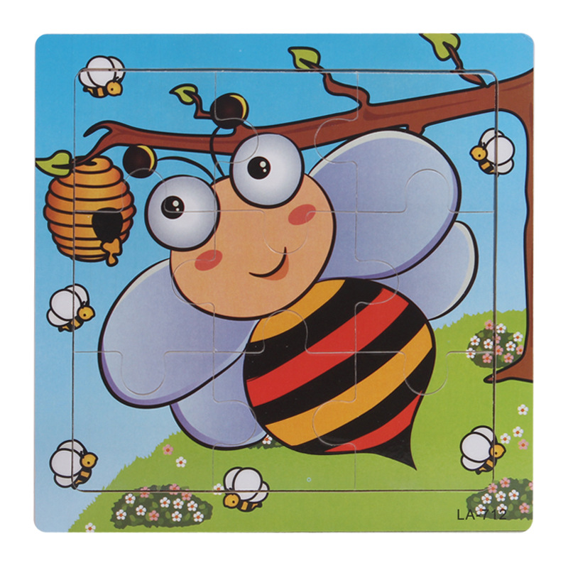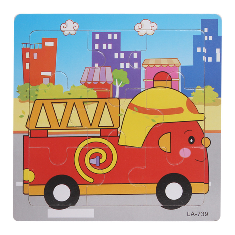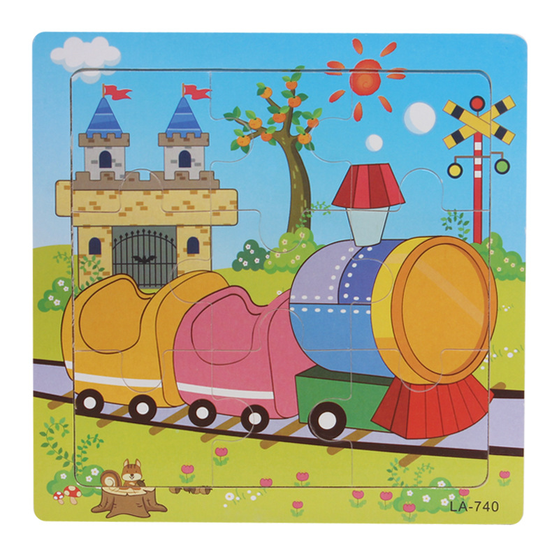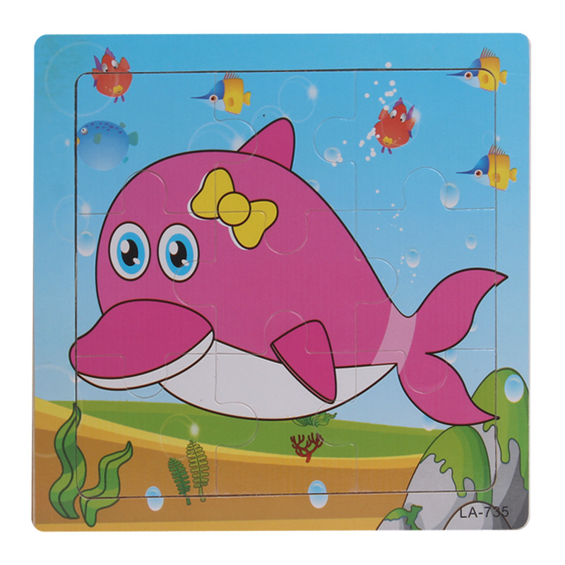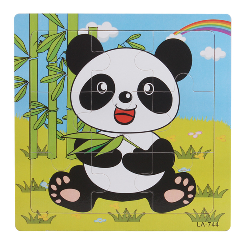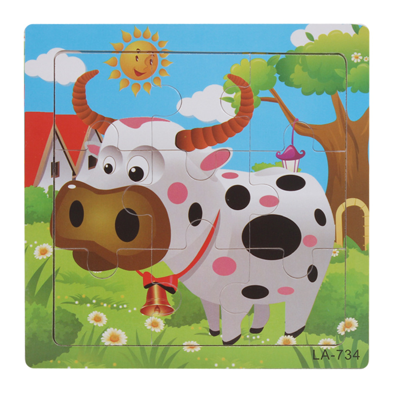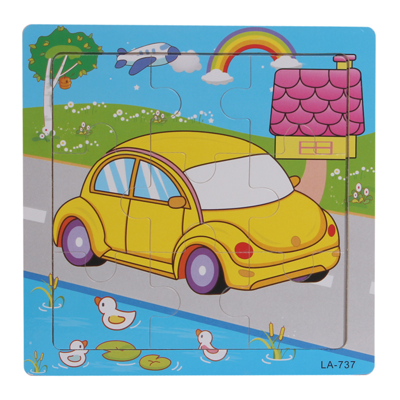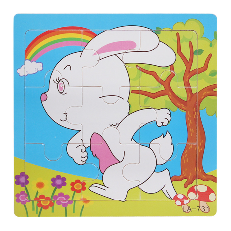 木制9片拼图儿童卡通动物带底图平面拼图 宝宝早教益智力积木玩具