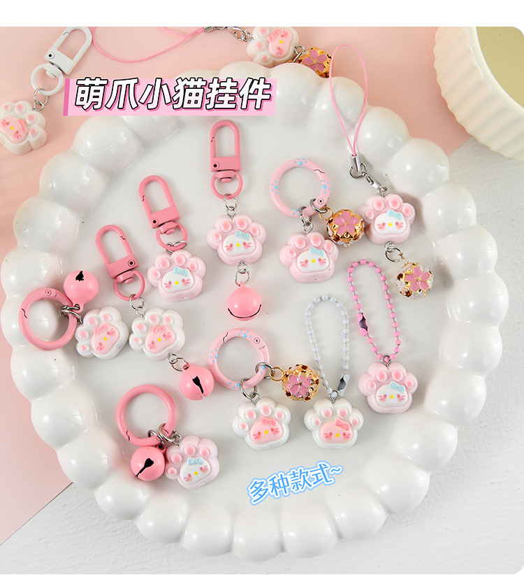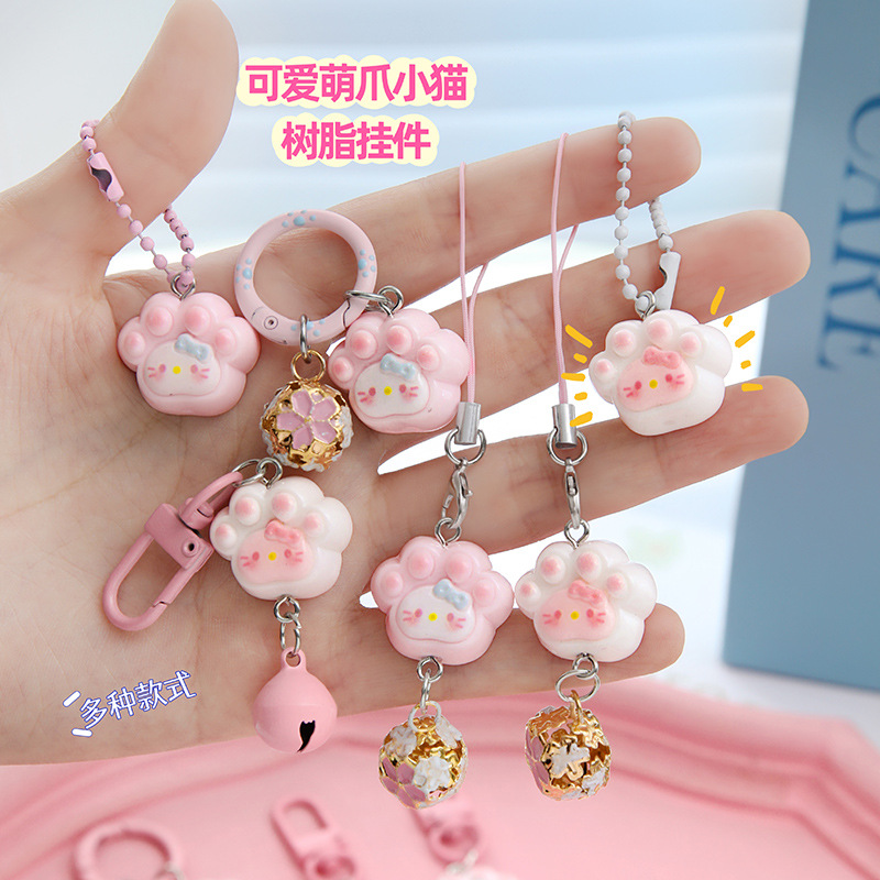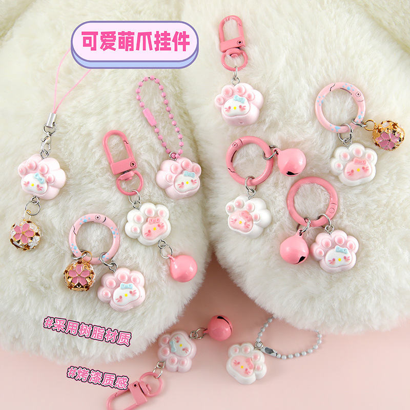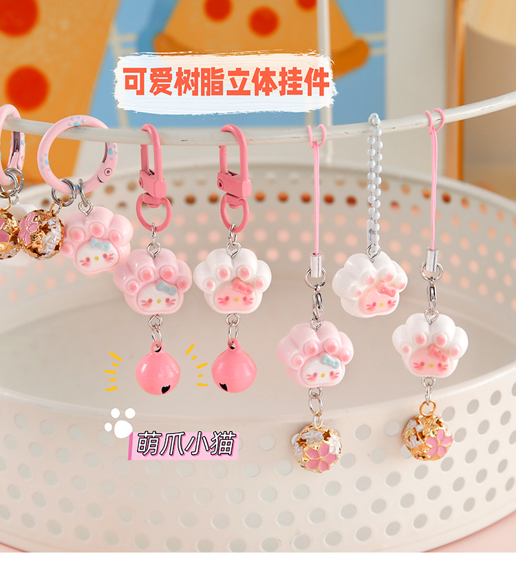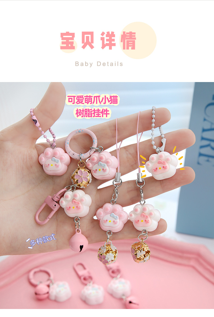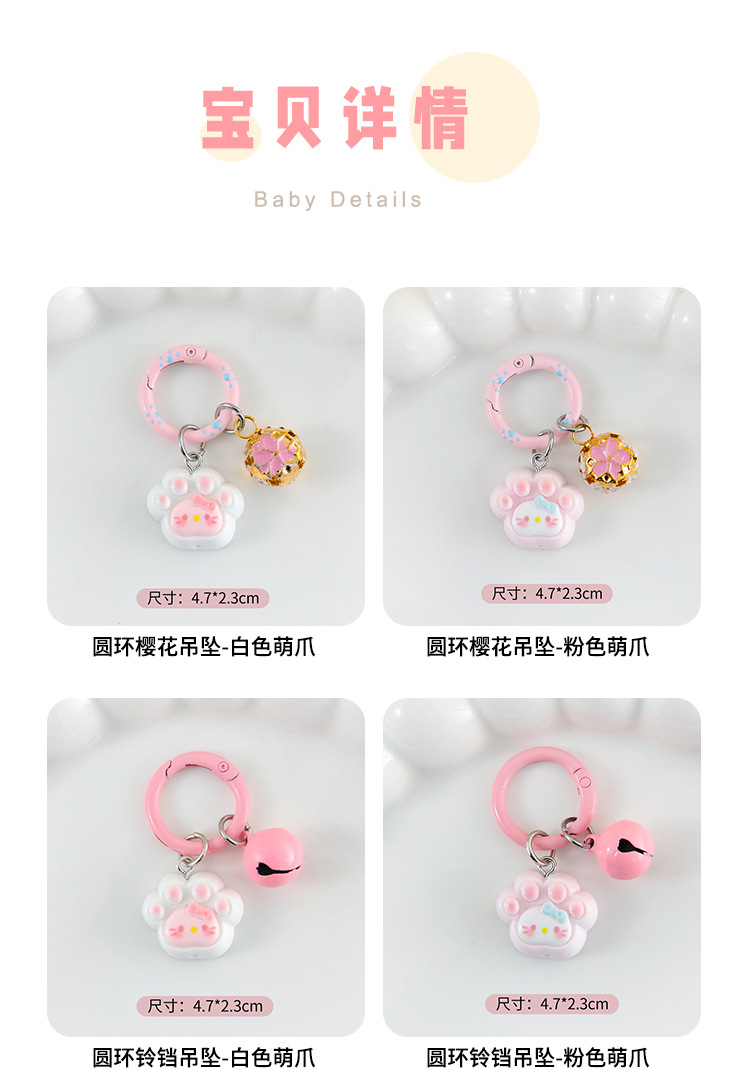 可爱猫爪铃铛圆圈卡扣挂件少女心猫咪书包钥匙扣挂坠闺蜜礼物批发