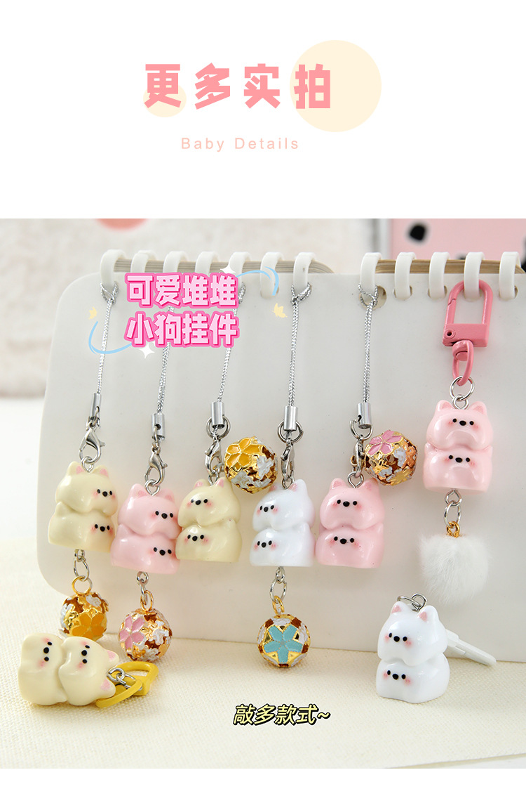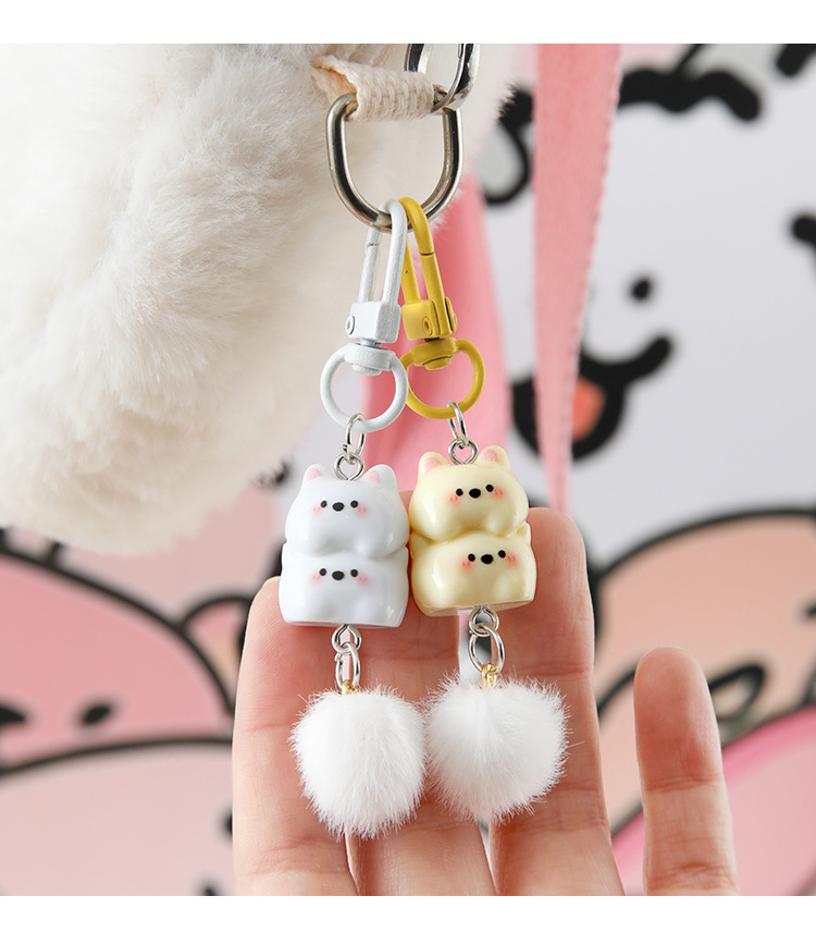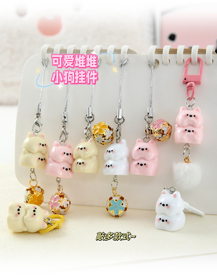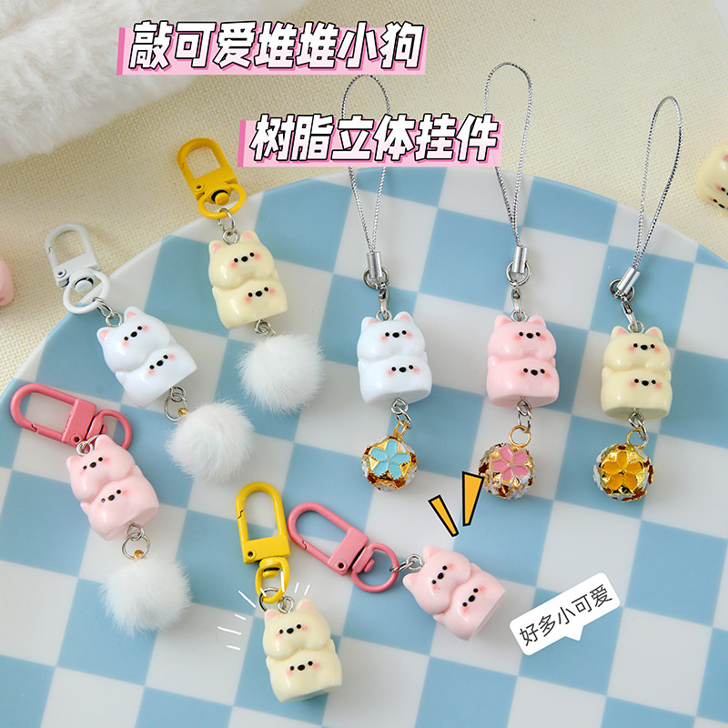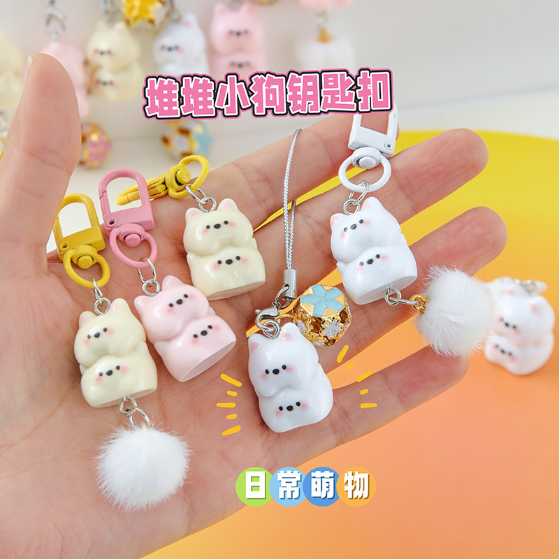 卡通可爱堆堆小狗钥匙扣甜美毛球手机链少女心叠叠小狗狗书包挂件