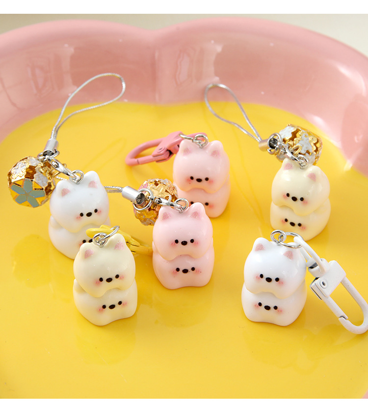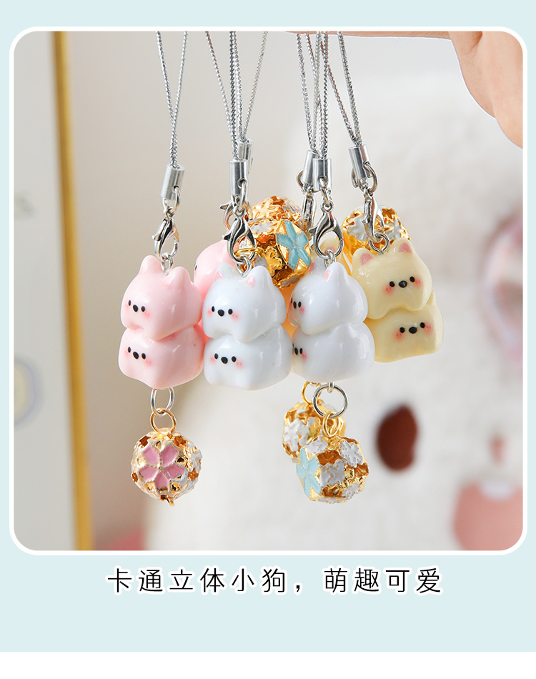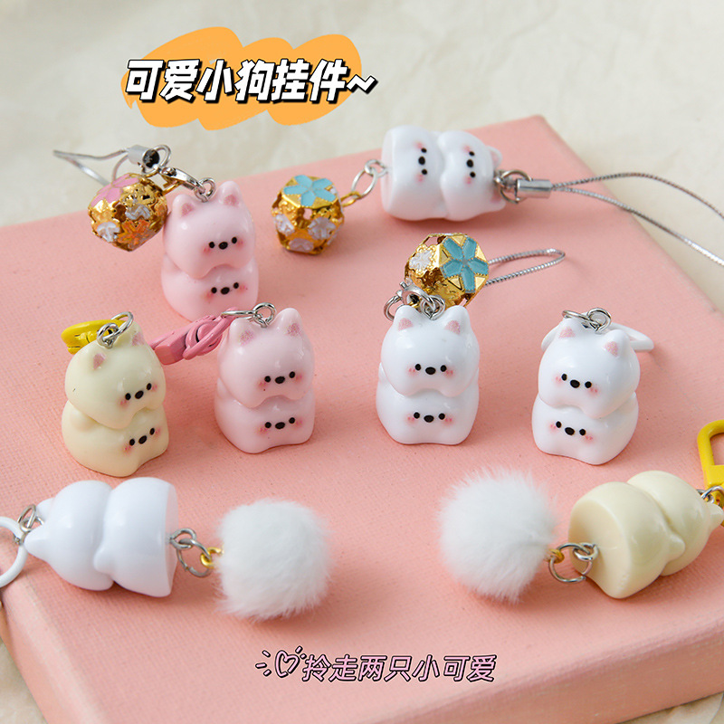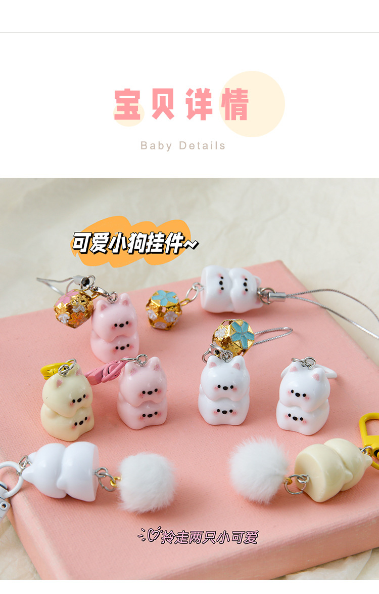 卡通可爱堆堆小狗钥匙扣甜美毛球手机链少女心叠叠小狗狗书包挂件