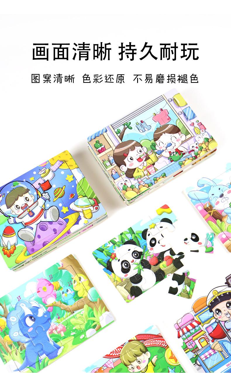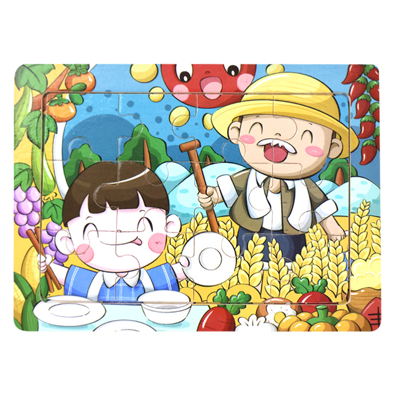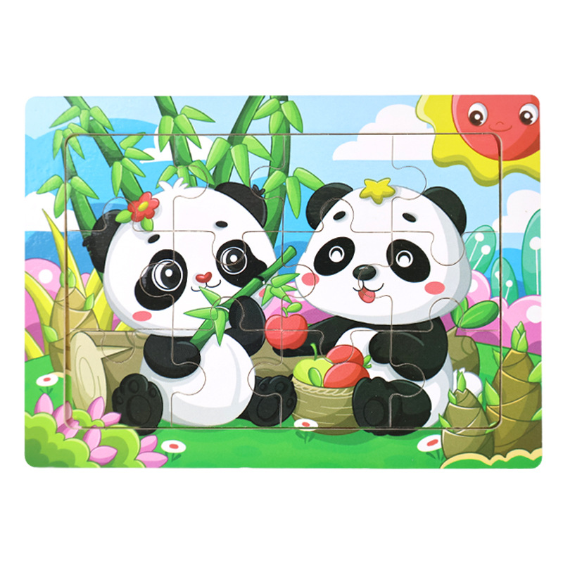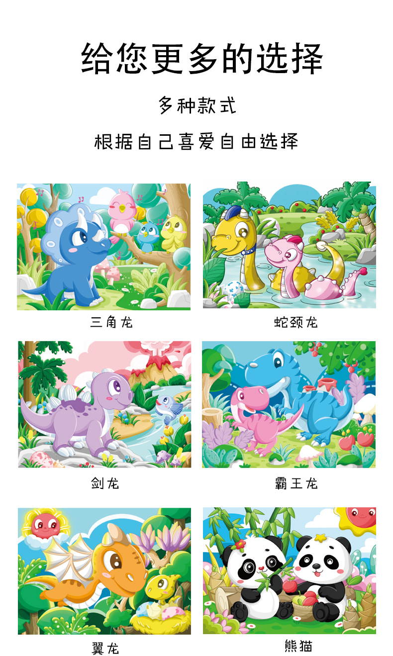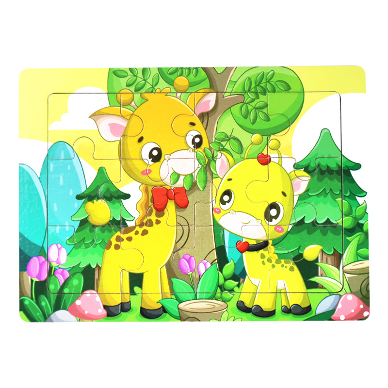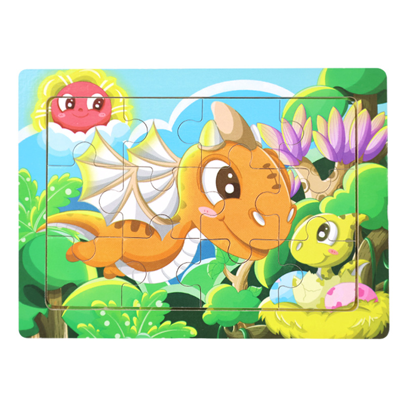 木制12片拼图 儿童动物恐龙卡通木质平面拼图 宝宝早教益智力玩具