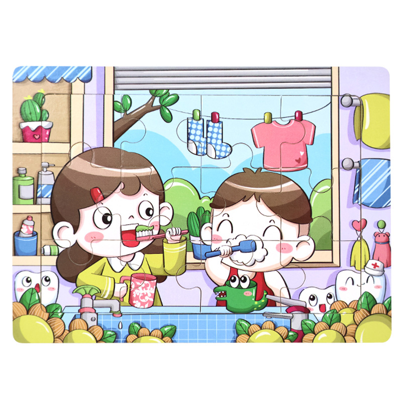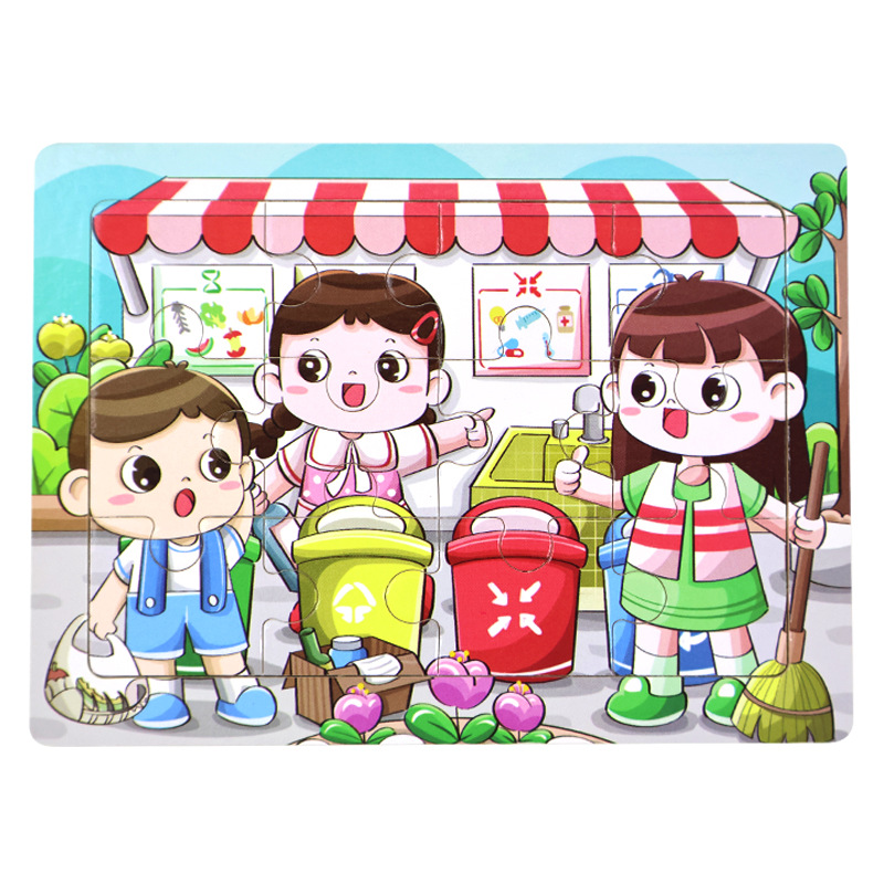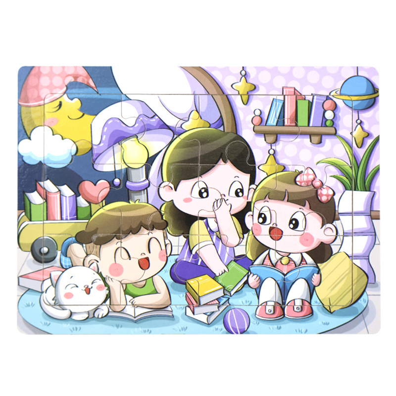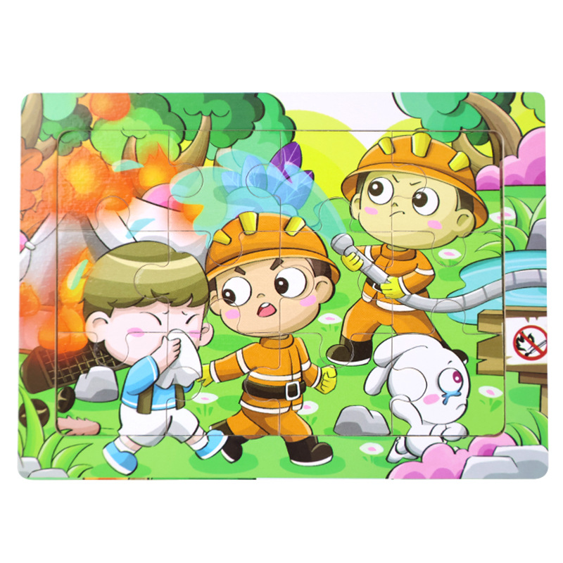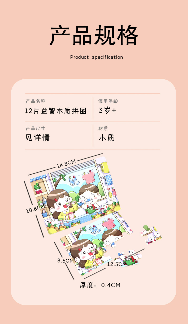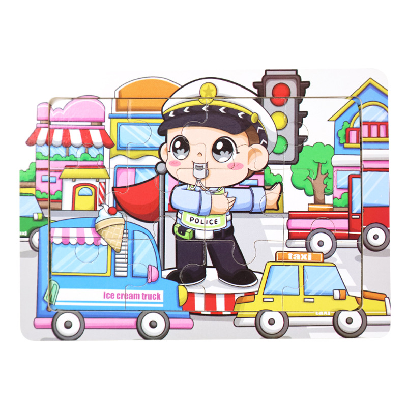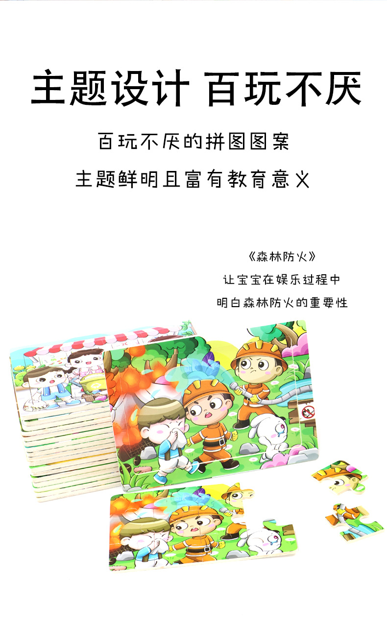 木制12片拼图 儿童动物恐龙卡通木质平面拼图 宝宝早教益智力玩具