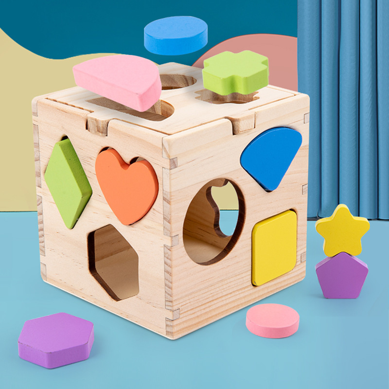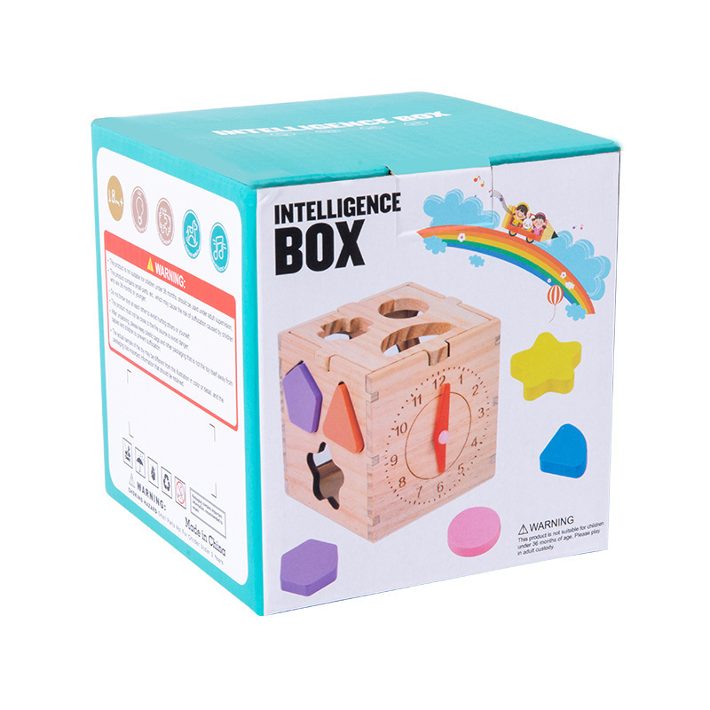 木质几何形状时钟智力盒 幼儿园早教益智配对认知积木儿童玩具