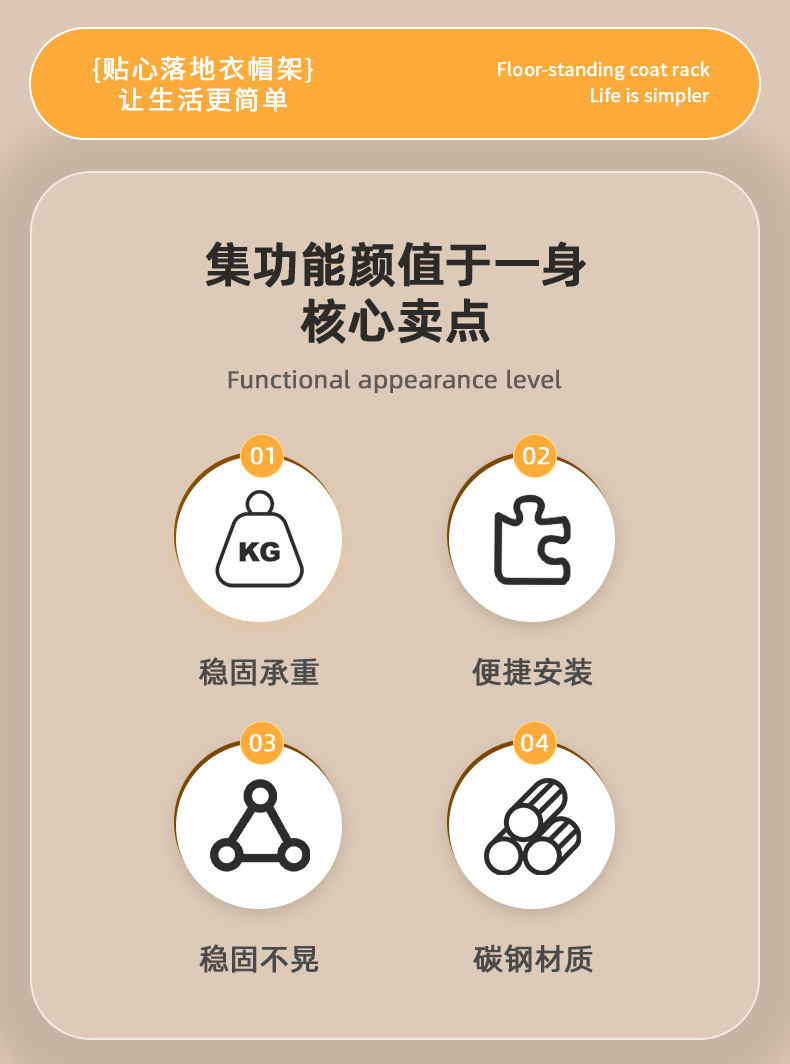 碳钢衣帽架落地卧室挂衣架房间挂衣服家用单杆简易挂包架子批发